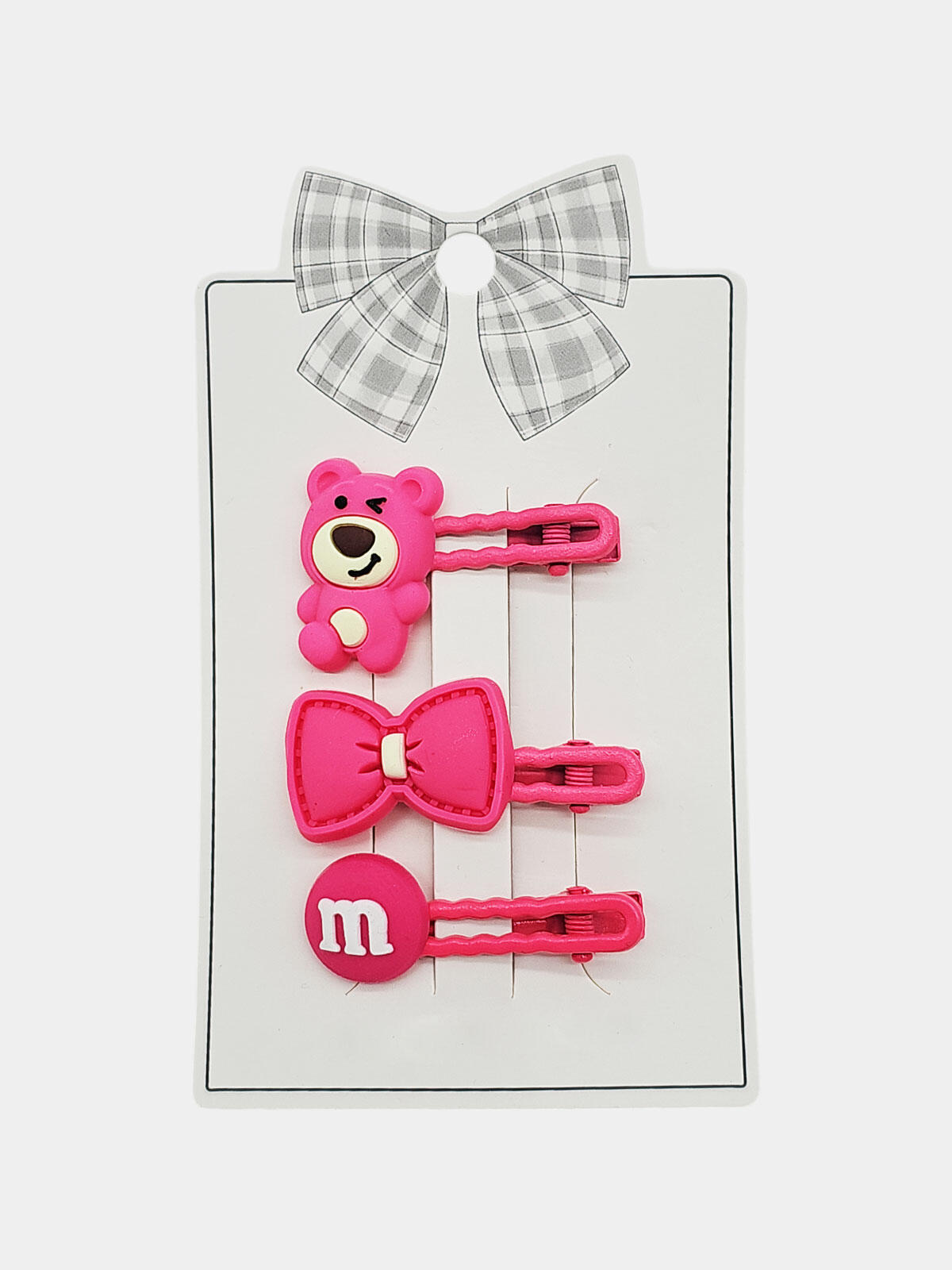 - Urocze kształty – w zestawie znajdziesz trzy różne motywy: misia, serduszko i kółko 🐻❤️⭕. Każda spinka jest inna, a razem tworzą spójną, harmonijną całość, która idealnie pasuje do każdej fryzury! 👧✨