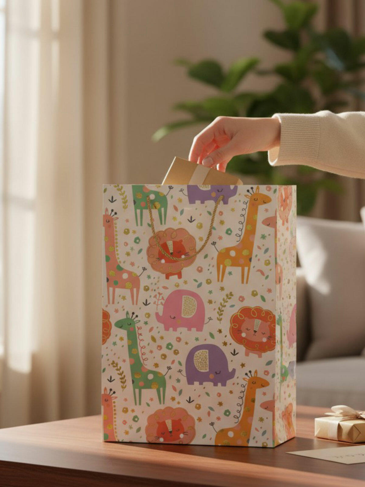 Przygotuj się na wyjątkowe chwile pełne radości z naszą elegancką torbą prezentową! 🐾 Ta urokliwa torba to doskonałe rozwiązanie do pakowania prezentów urodzinowych, świątecznych czy innych wyjątkowych okazji. Dostępna w kilku wzorach, zachwyci nie tylko dzieci, ale także dorosłych! 😊