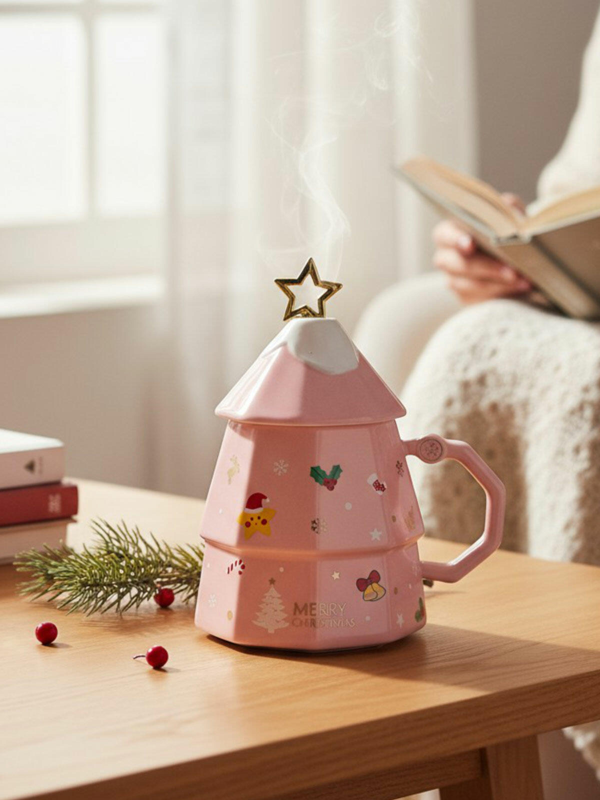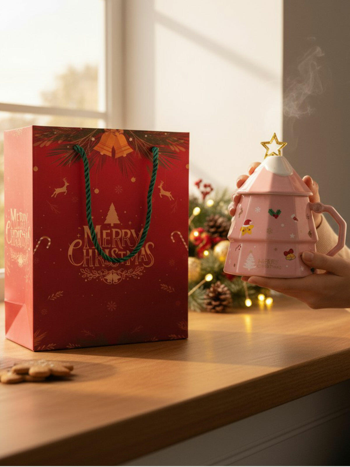 Kubek Choinka z Pokrywką i Mieszadełkiem – Magia Świąt w Twoich Dłoniach! 🎄✨