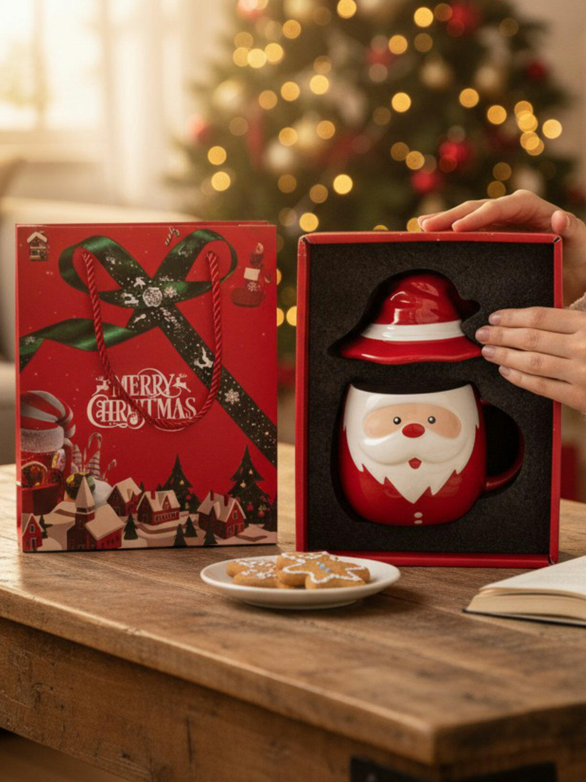 🎅 Kubek Świąteczny z Pokrywką - Idealny na Magiczne Chwile! 🎄