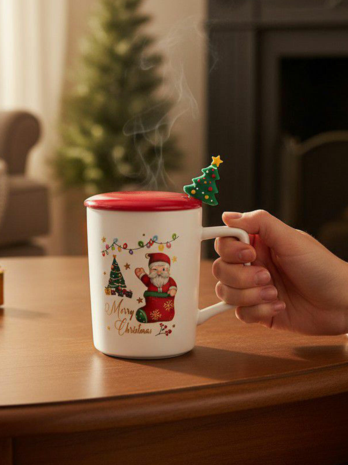 Wprowadź się w świąteczny nastrój z naszym niezwykłym kubkiem ceramicznym z pokrywką i łyżeczką! 🥳 Wyobraź sobie ten wyjątkowy wieczór przy kominku, kiedy trzymasz w dłoni kubek pełen gorącej herbaty 🍵 lub aksamitnego kakao? Ten kubek to nie tylko naczynie – to prawdziwa uczta dla zmysłów! ✨