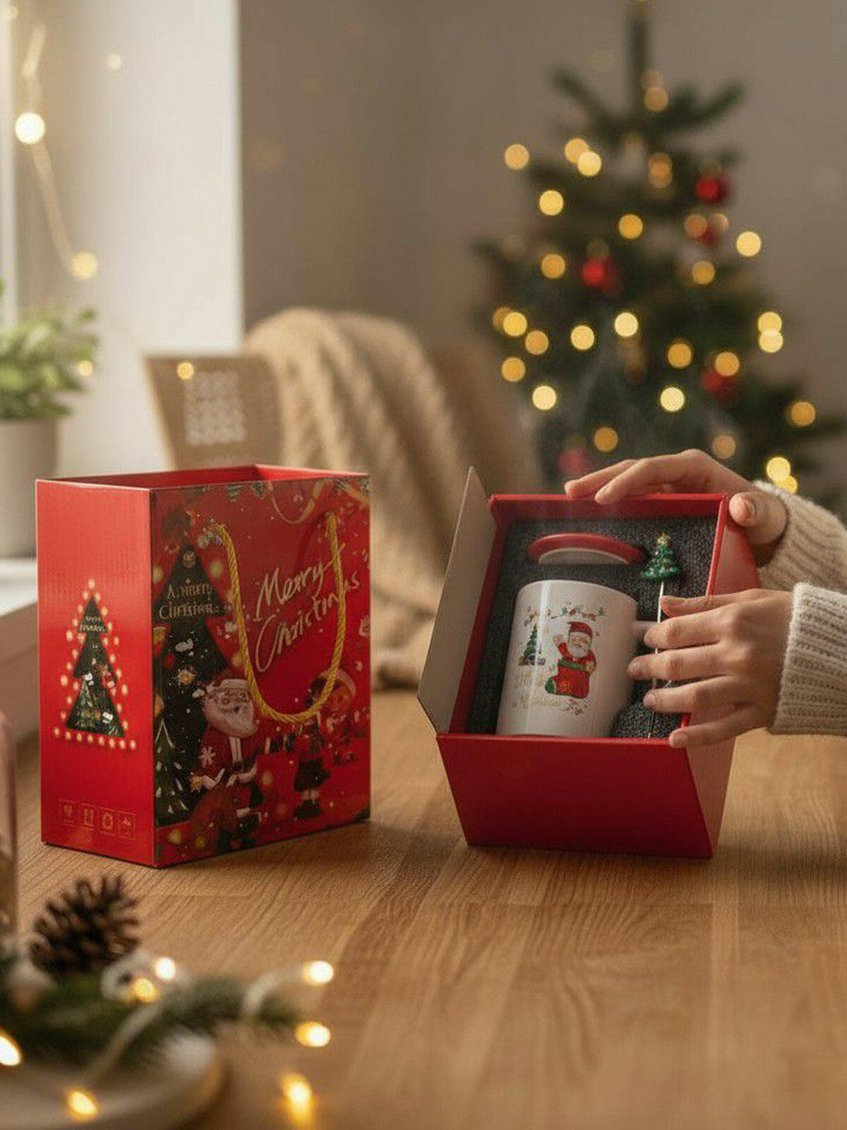 Nasze kubki zapakowane są w piękną, świąteczną torebkę- pudełko, co czyni je idealnym prezentem dla każdego miłośnika napojów! 🎁❤️ Dodatkowo, dzięki swojej estetyce, kubek stanie się uroczą dekoracją w Twojej kuchni, jadalni, a nawet w biurze! 🌟