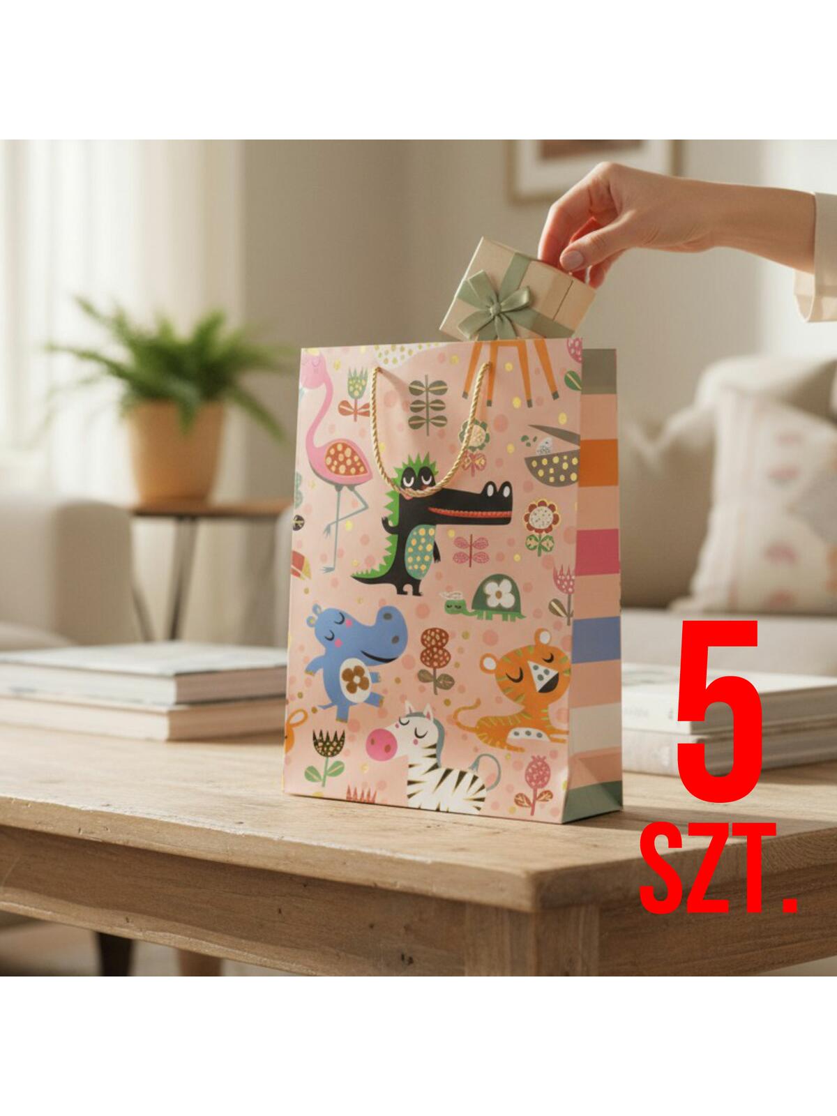 Przygotuj się na wyjątkowe chwile pełne radości z naszym 5-cio pakietem eleganckich toreb prezentowych! 🐾 Ten uroczy zestaw to świetne rozwiązanie do pakowania prezentów urodzinowych, świątecznych czy innych wyjątkowych okazji. Wzory zwierzątek sprawią, że torby zachwycą zarówno dzieci, jak i dorosłych! 😊