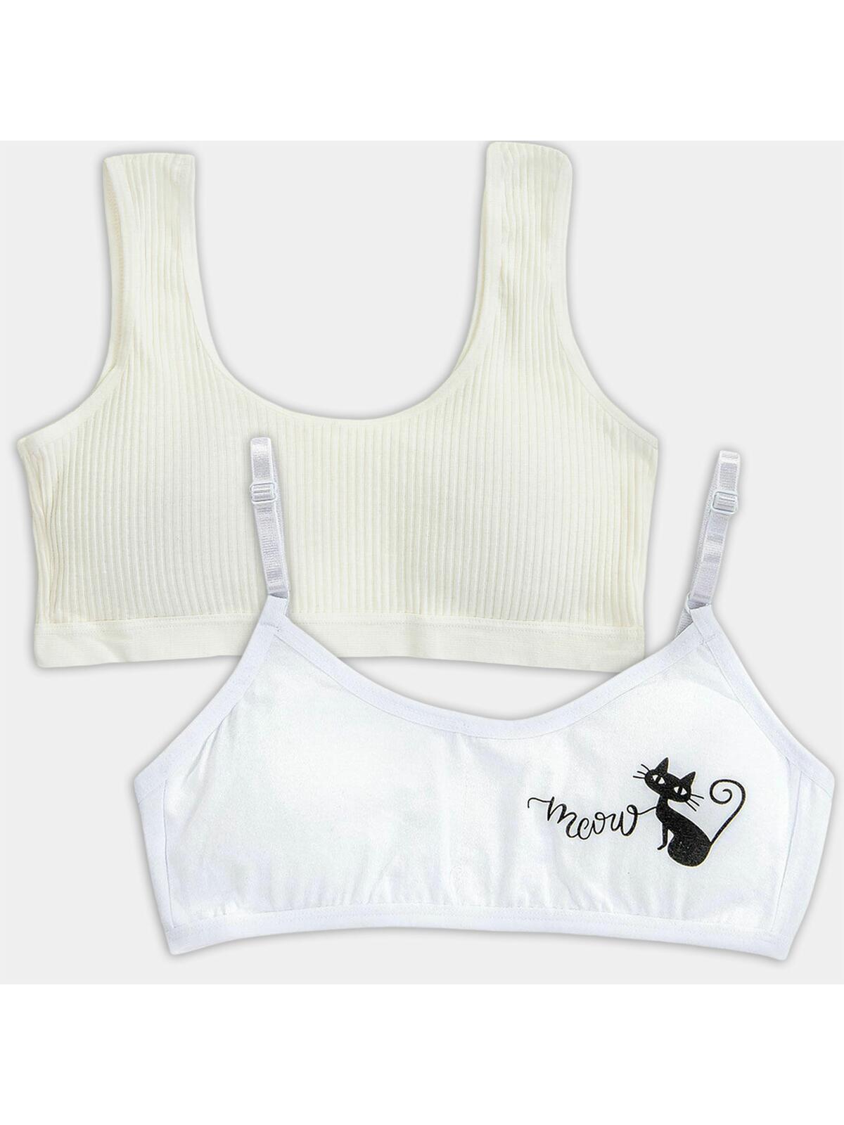 Te urocze biustonosze będą idealnym wyborem zarówno pod codzienne stylizacje, jak i sportowe outfity. Świetnie sprawdzą się w szkole, podczas aktywności fizycznej czy w domowym zaciszu. Pierwszy model- klasyczny z nadrukiem, regulowanymi ramiączkami i zapięciem na haftki oraz drugi-top, wkładany przez głowę, z prążkowaną fakturą, z pewnością zachwycą każdą nastolatkę! 🐱