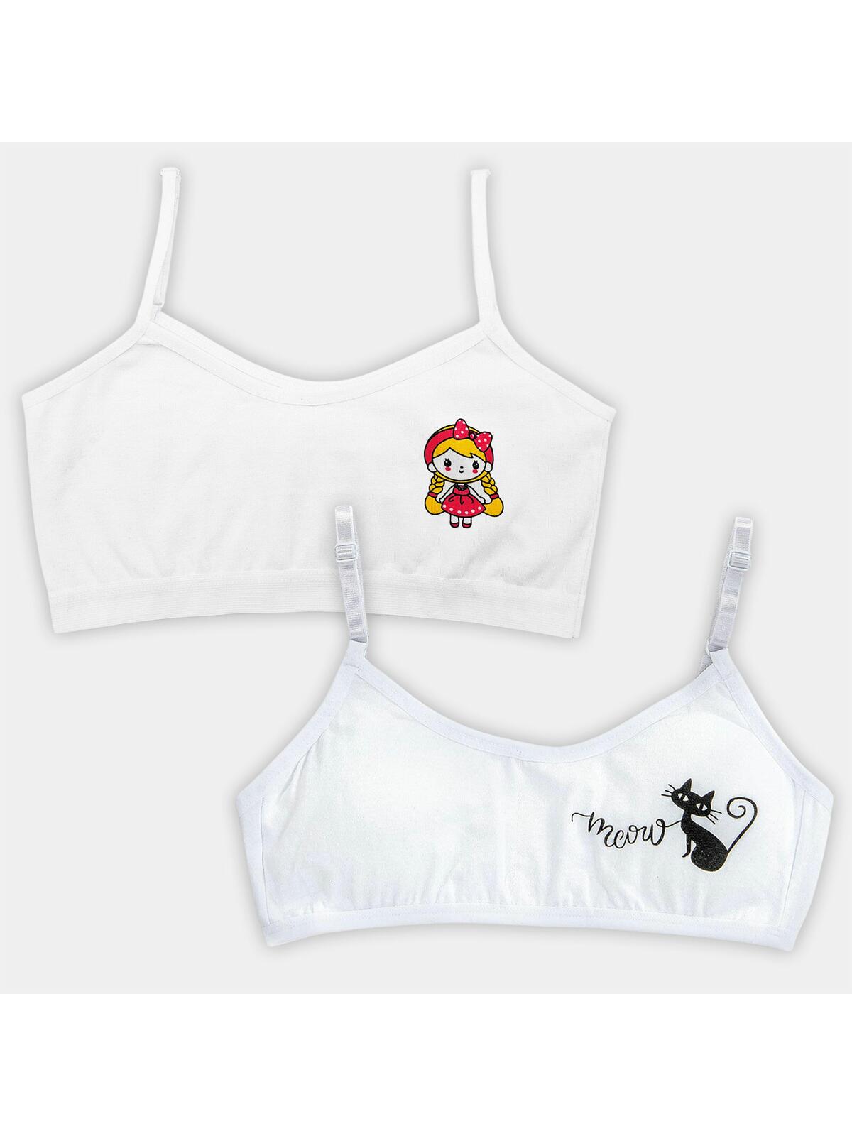 Te urocze biustonosze będą idealnym wyborem zarówno pod codzienne stylizacje, jak i sportowe outfity. Świetnie sprawdzą się w szkole, podczas aktywności fizycznej czy w domowym zaciszu. Model z kotem🐱 posiada miękkie wkładki, regulowane ramiączka i zapięcie na haftki, zaś model z nadrukiem laleczki jest wkładany przez głowę i również posiada regulowane ramiączka.