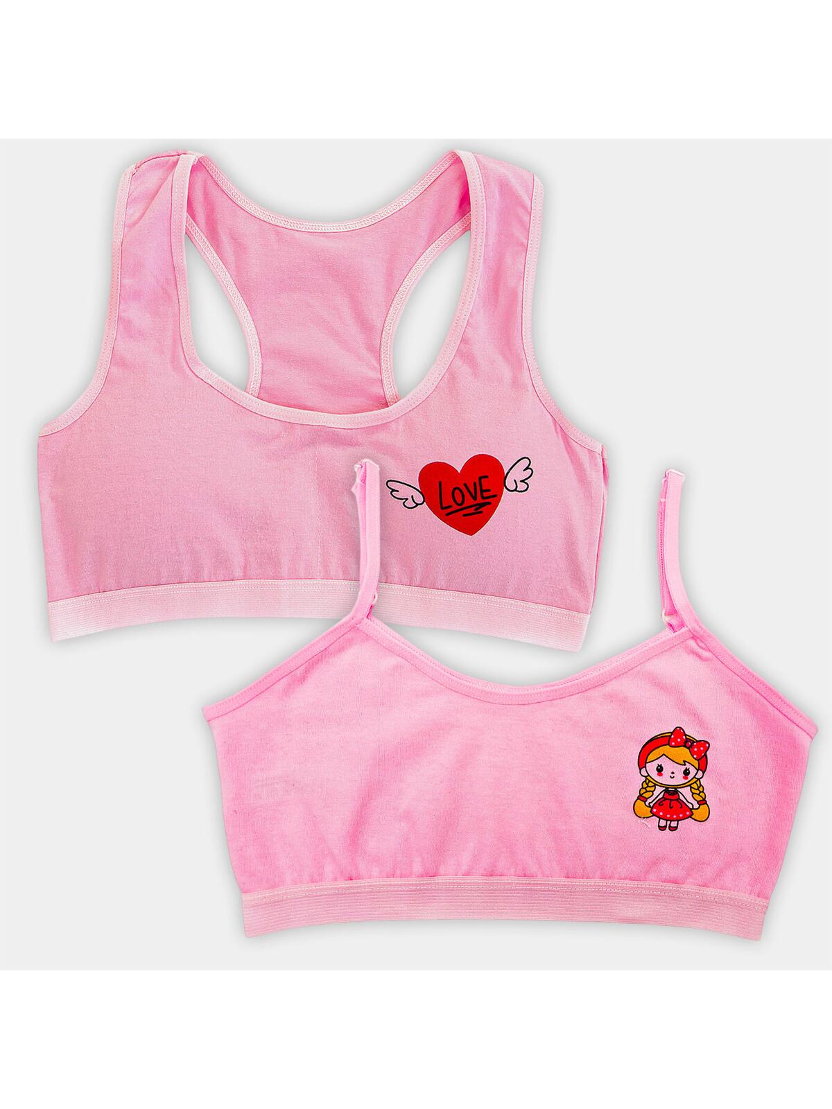 Te urocze biustonosze będą idealnym wyborem zarówno pod codzienne stylizacje, jak i sportowe outfity. Świetnie sprawdzą się w szkole, podczas aktywności fizycznej czy w domowym zaciszu. Jeden z modeli posiada wąskie, regulowane ramiączka, drugi-sportowy na szerokich ramiączkach z miękkimi wkładkami. Zestaw w pięknym różowym kolorze.
