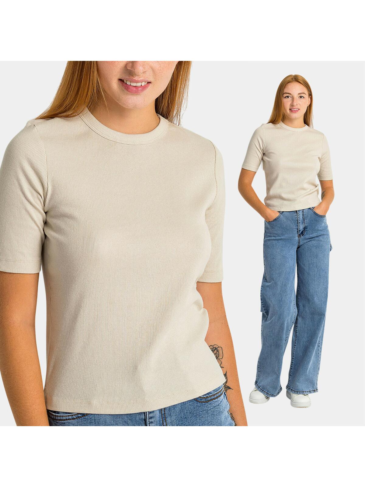 Oto nasza bawełniana bluzka prążkowana – idealna baza pod Twoje ulubione stylizacje! Wykonana z miękkiej, przyjemnej dla skóry bawełny, zapewnia maksymalny komfort noszenia przez cały dzień. Jej jednolity beżowy kolor wpasuje się w każdą garderobę, a okrągły dekolt i krótki rękaw dodają jej lekkości i świeżości. Dzięki elastycznym włóknom bluzka perfekcyjnie dopasowuje się do sylwetki, co zapewnia pełną swobodę ruchów. Nie tylko wygląda świetnie, ale również podkreśla Twoją naturalną urodę! ✨