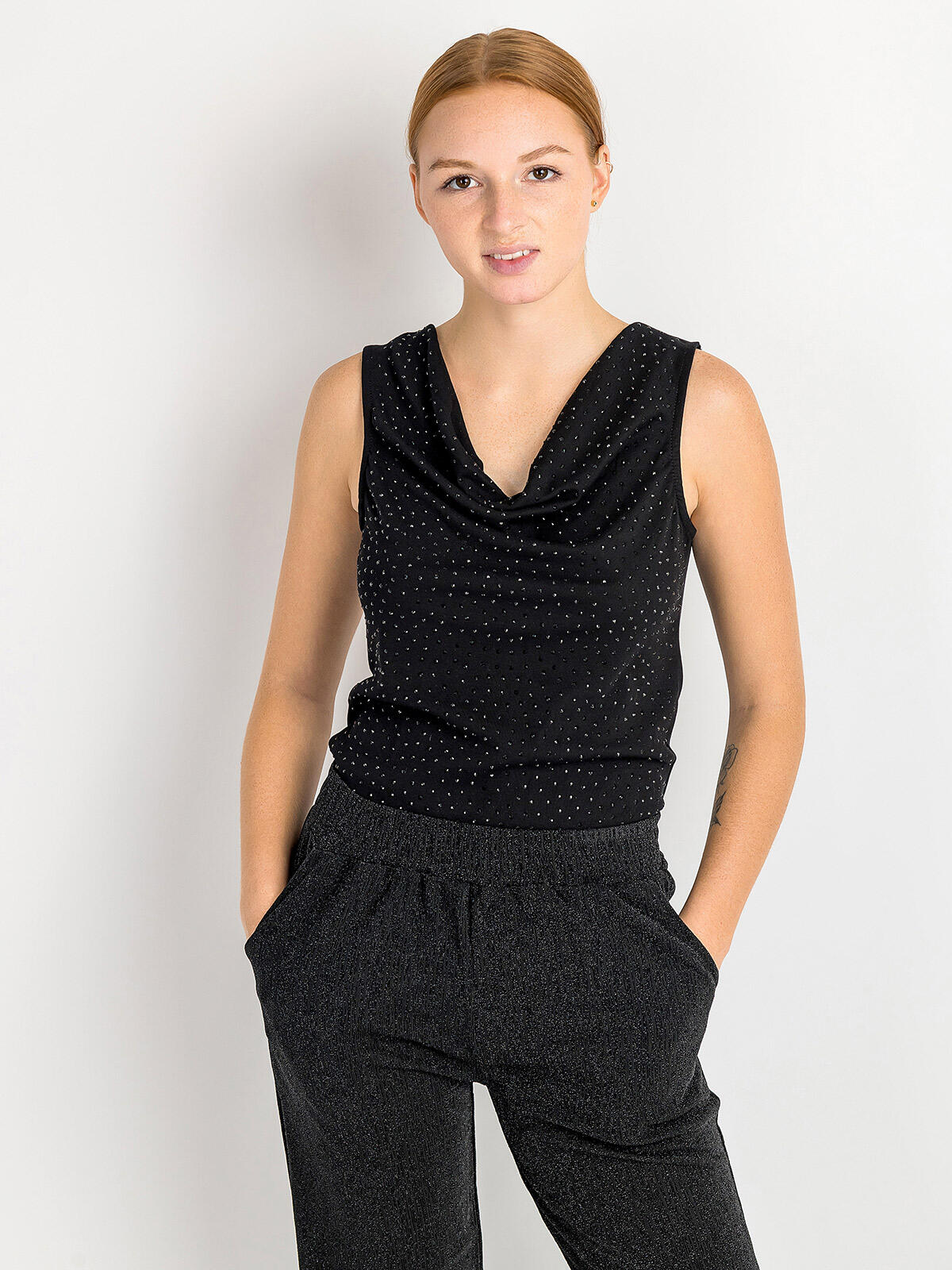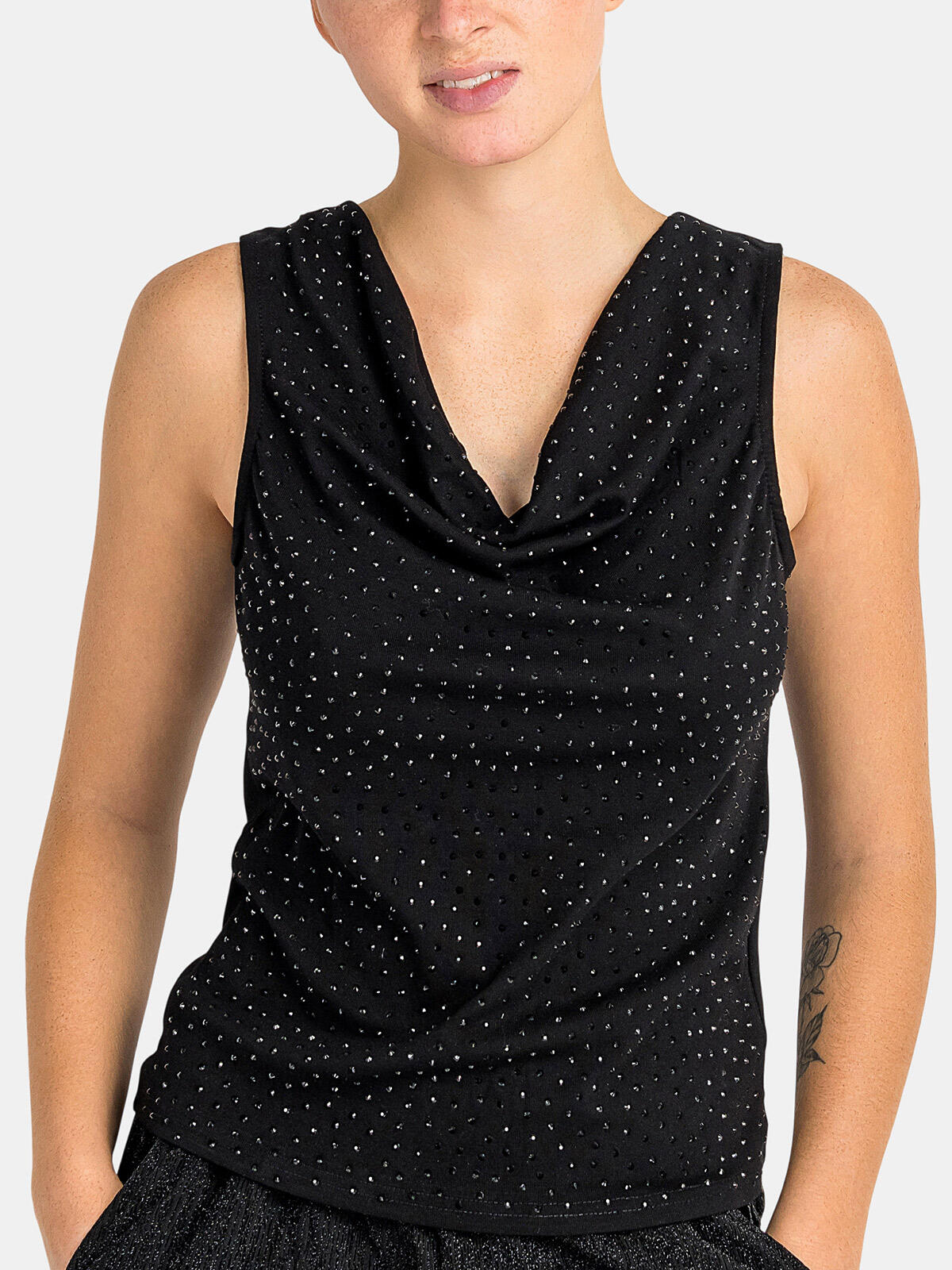 Odkryj naszą niezwykle stylową bawełnianą bluzkę z kryształkami, która doda blasku każdej Twojej stylizacji! W kolorze eleganckiej czerni, ta bluzka wyróżnia się nie tylko ponadczasowym designem, ale także dużą zawartością wysokiej jakości bawełny, co zapewnia komfort noszenia przez cały dzień. Luźny dekolt oraz grube ramiączka sprawiają, że jest idealna na specjalne okazje, takie jak wieczorne wyjścia czy imprezy!