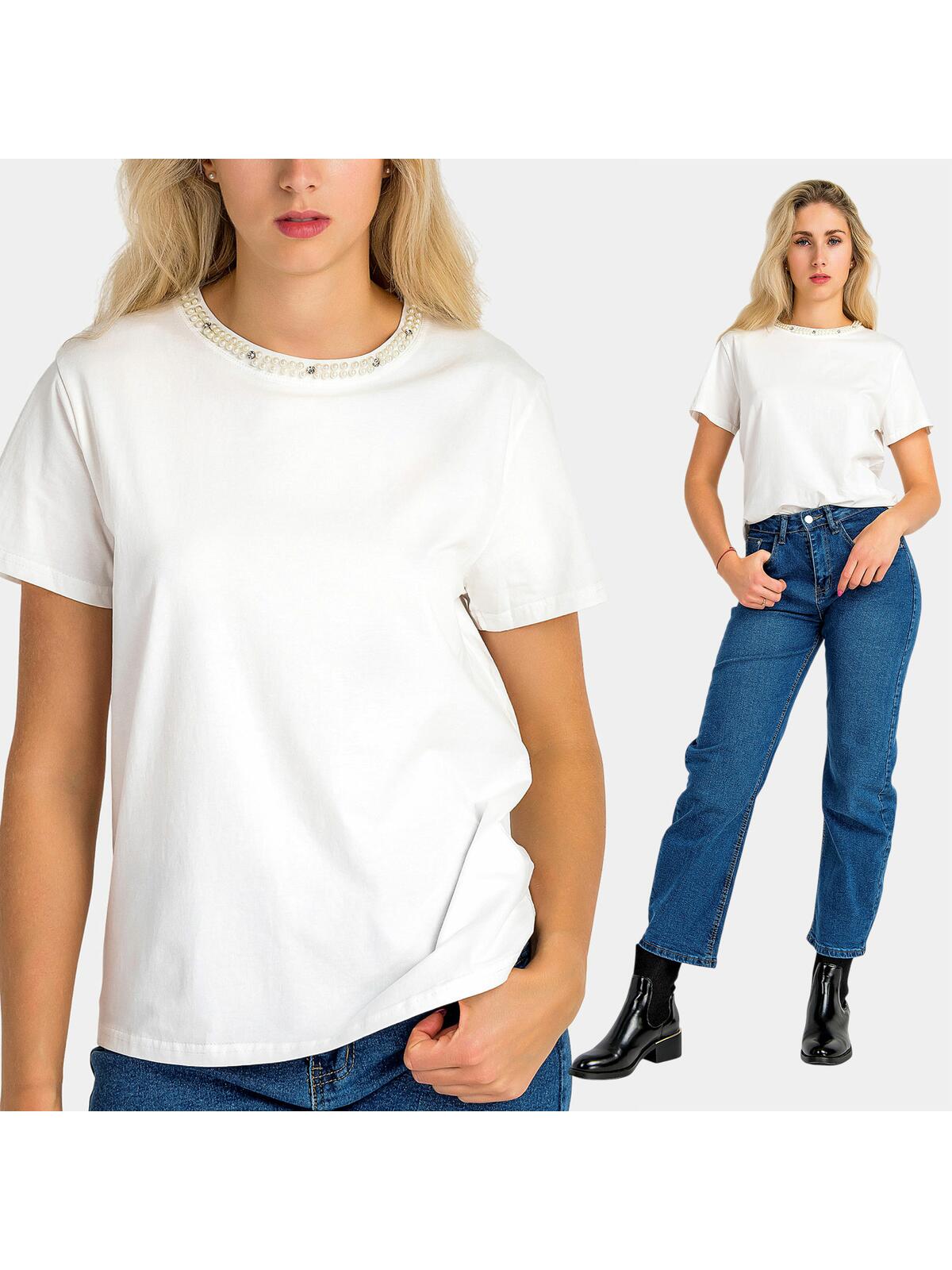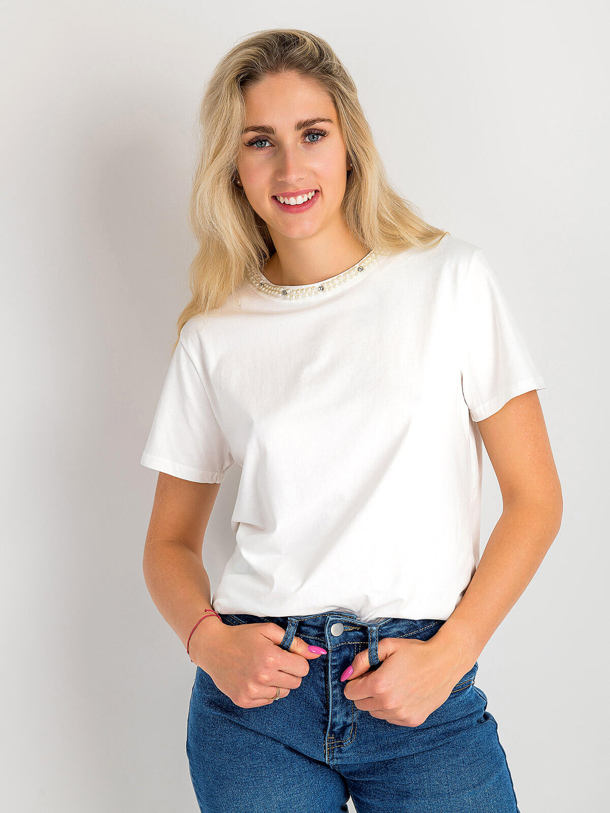 Nasza bluzka wyróżnia się ozdobnie wykończonym dekoltem koralikami, co dodaje jej wyjątkowego charakteru i sprawi, że poczujesz się naprawdę wyjątkowo. Została wykonana z wysokiej jakości bawełny, co zapewnia komfort noszenia przez cały dzień. 🌿