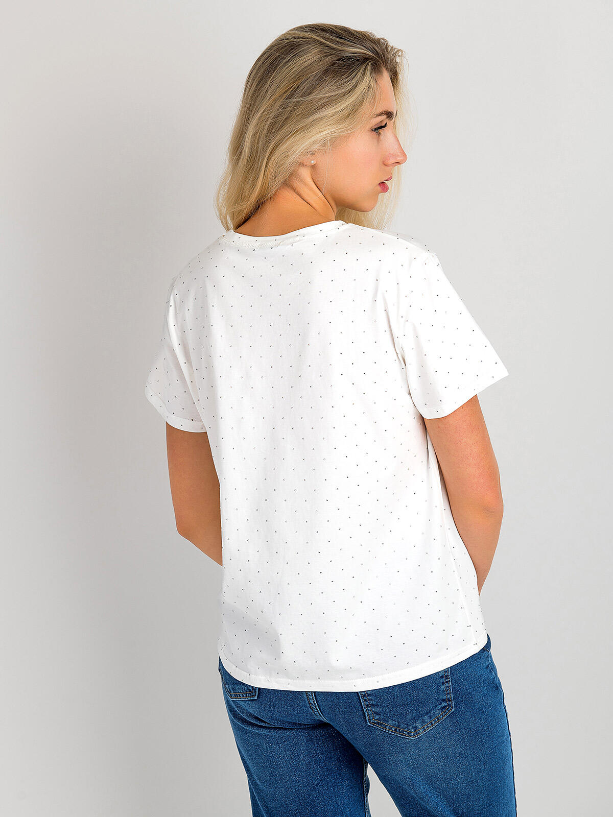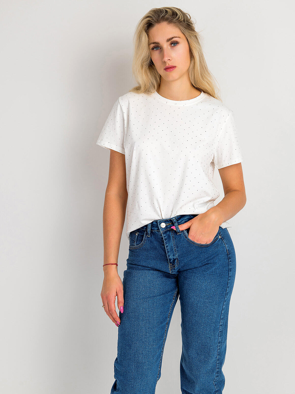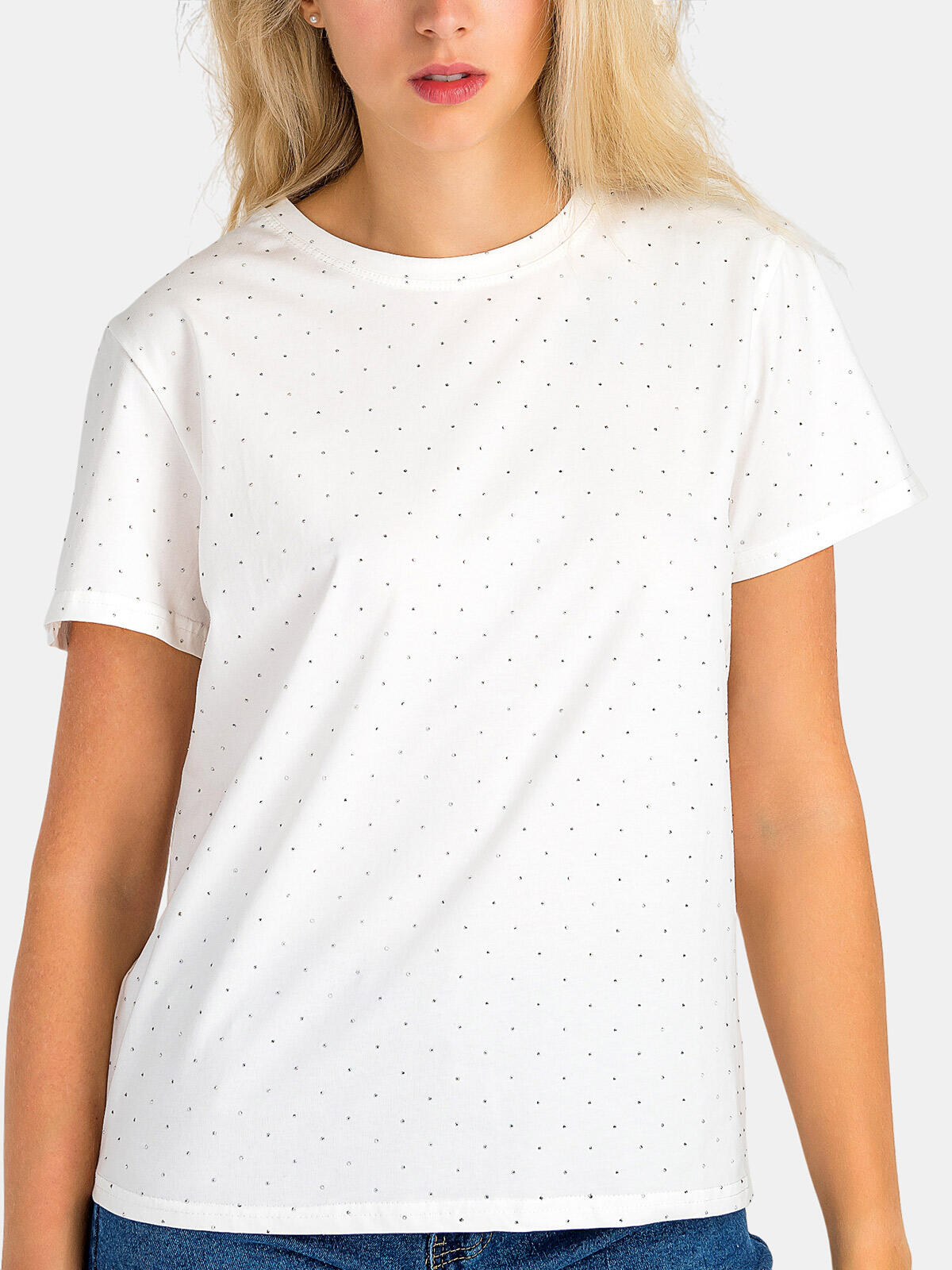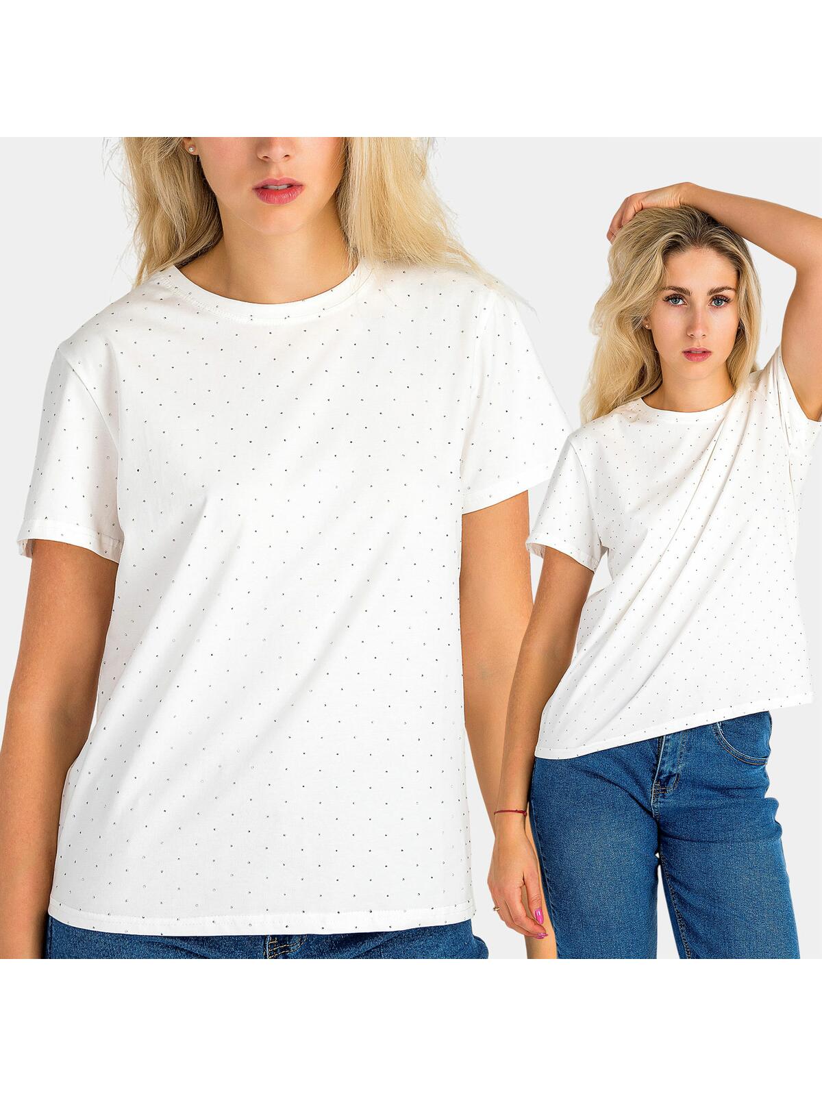 Wprowadź do swojej garderoby odrobinę blasku dzięki naszemu wyjątkowemu produktowi - bluzce bawełnianej z cyrkoniami! W kolorze białym, z krótkim rękawem, ta bluzka to idealne połączenie stylu i wygody. Bardzo duża zawartość bawełny sprawia, że jest niezwykle przyjemna dla skóry, a luźny krój dodaje jeszcze większej swobody w ruchach. Ozdobiona migoczącymi cyrkoniami, bluzka przyciąga wzrok i sprawia, że poczujesz się wyjątkowo w każdej sytuacji! 🌟