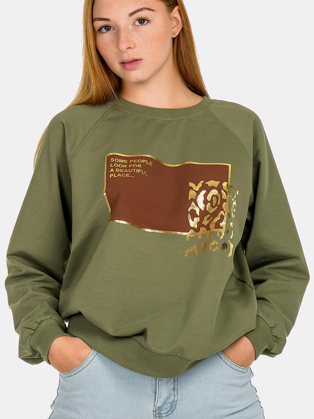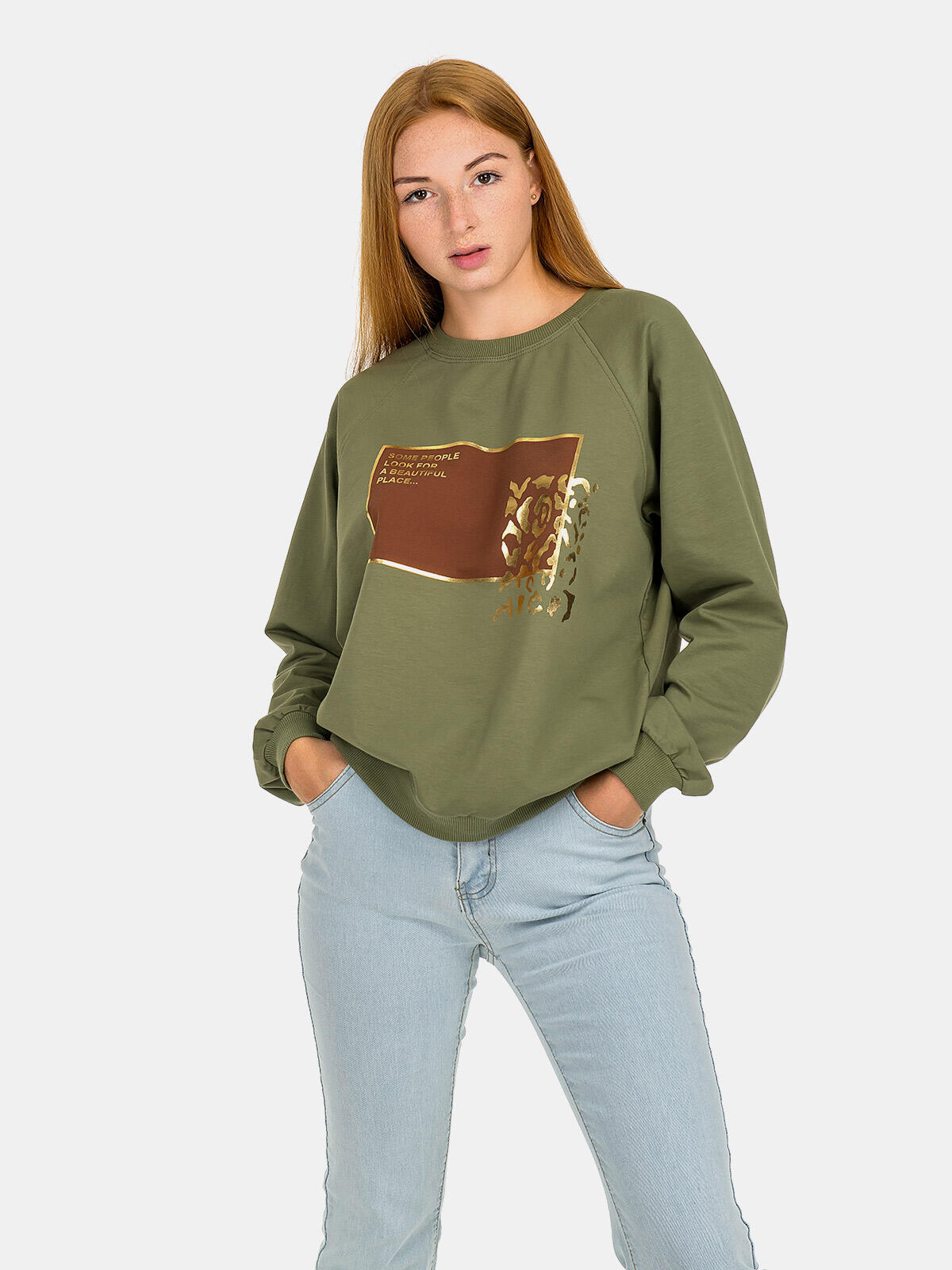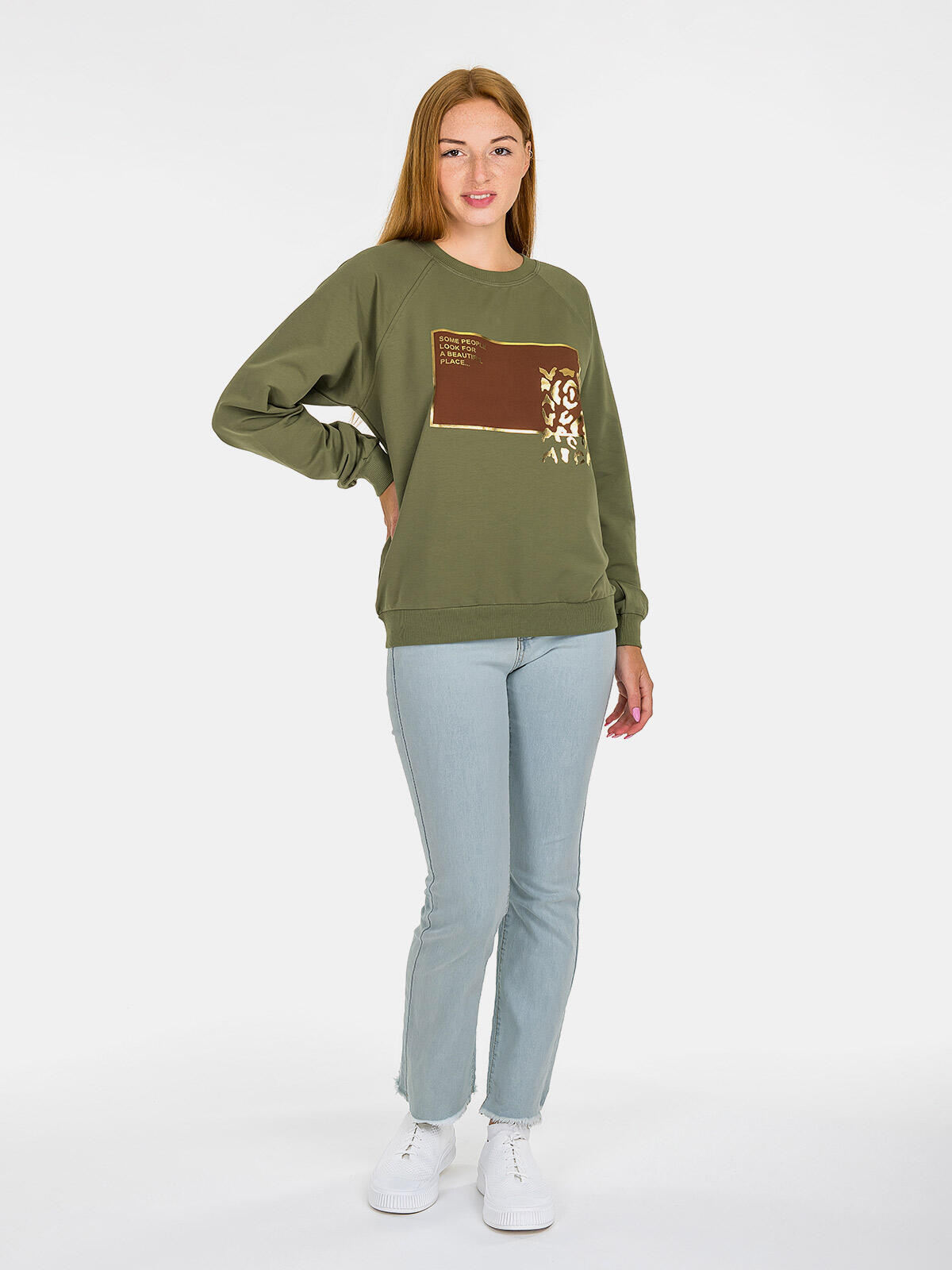 - luźny fason bluzy idealnie pasuje do dresów i jeansów