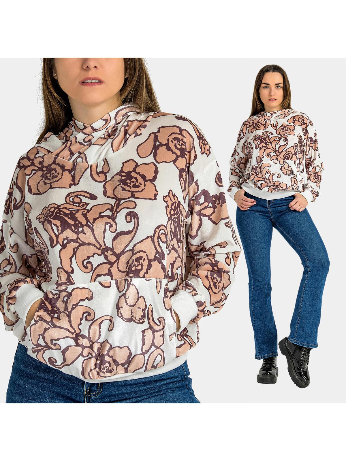 Przygotuj się na chłodniejsze dni w naprawdę stylowy sposób! Nasza bluza z kapturem to idealne połączenie komfortu i modnego designu. Jej wzór przyciąga spojrzenia i nadaje każdej stylizacji wyjątkowego charakteru. Luźny krój oraz długie rękawy zakończone ściągaczami zapewniają wygodę i swobodę ruchów, a eleganckie detale, takie jak kieszenie z przodu czy ściągacz na dole, dodają funkcjonalności. Ta bluza to must-have na jesień! 🍁✨