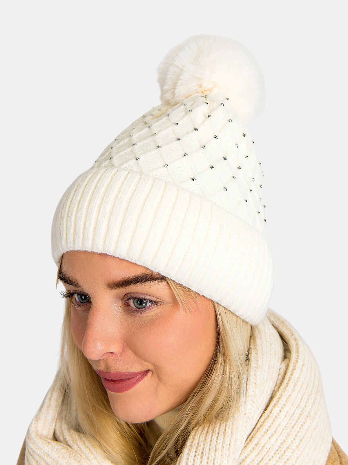 Przygotuj się na zimowe przygody z naszą niezwykłą dziewczęcą czapką z pomponem w kolorze białym! Ta wyjątkowa czapka to nie tylko modny dodatek, ale także doskonała ochrona przed zimnym wiatrem. Ozdobiona ciekawym wzorem i cyrkoniami, przyciągnie uwagę i doda blasku każdej stylizacji. Jej wywinięty prążkowany brzeg zapewnia nie tylko komfort noszenia, ale także sprawia, że czapka idealnie przylega do głowy, zapewniając ciepło i wygodę! 😊
