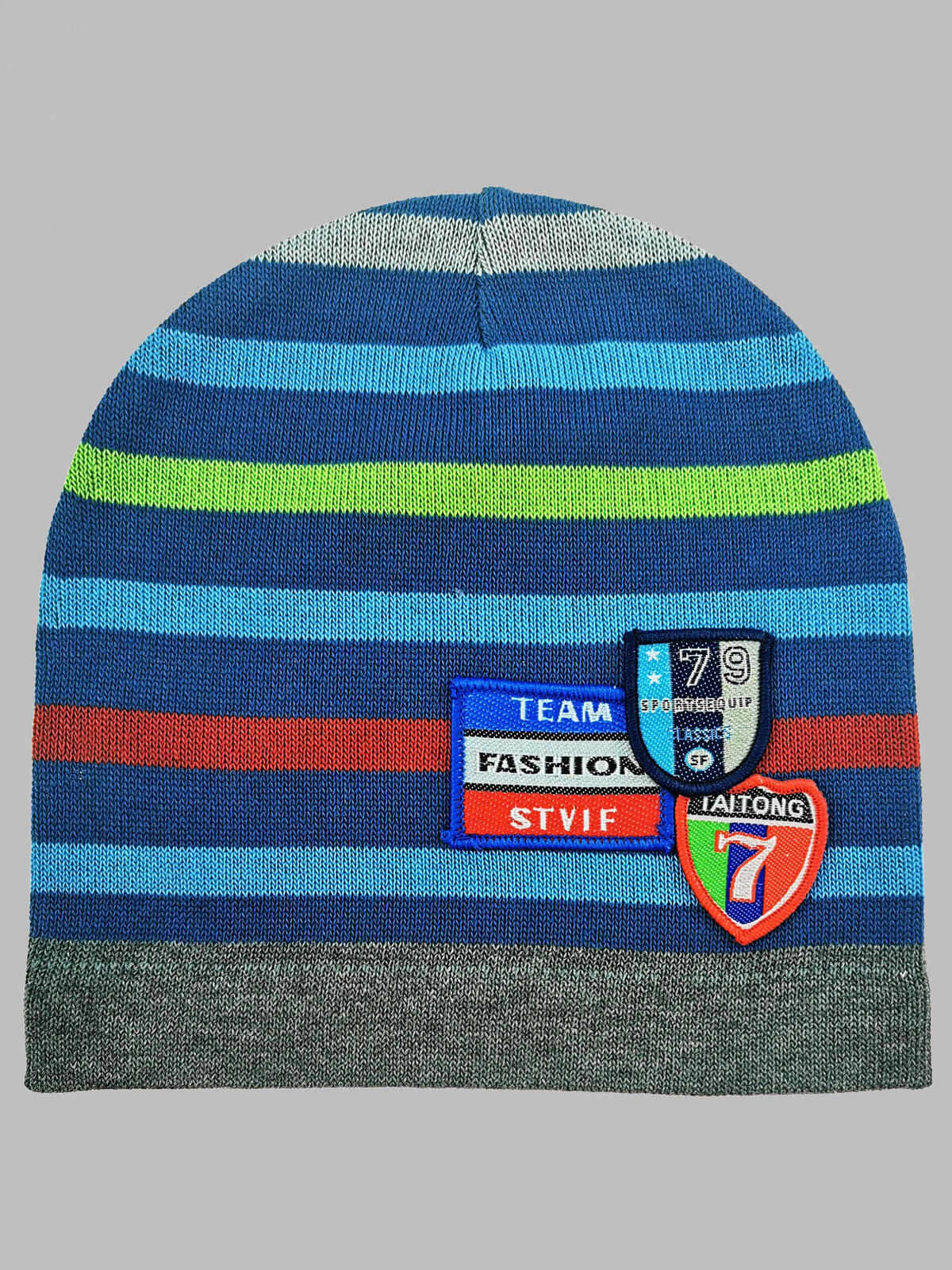 Czapka bawełniana w paski z naszywkami