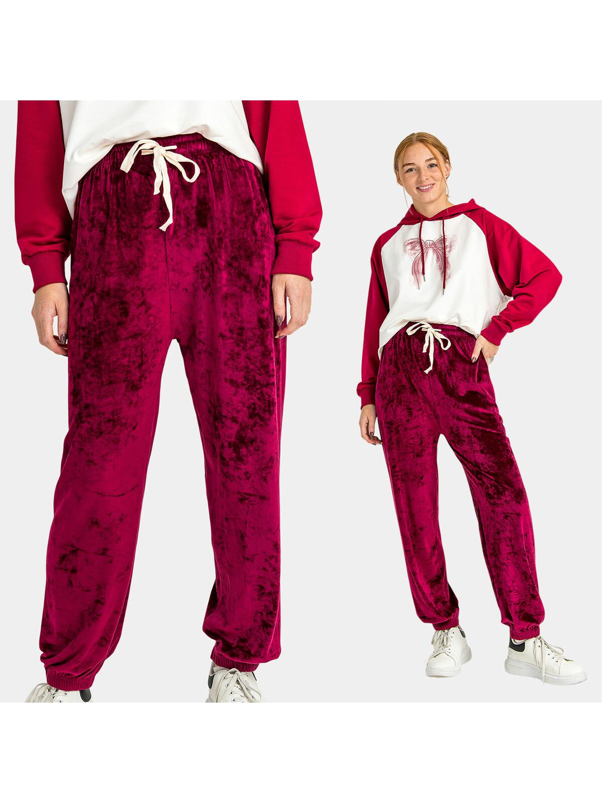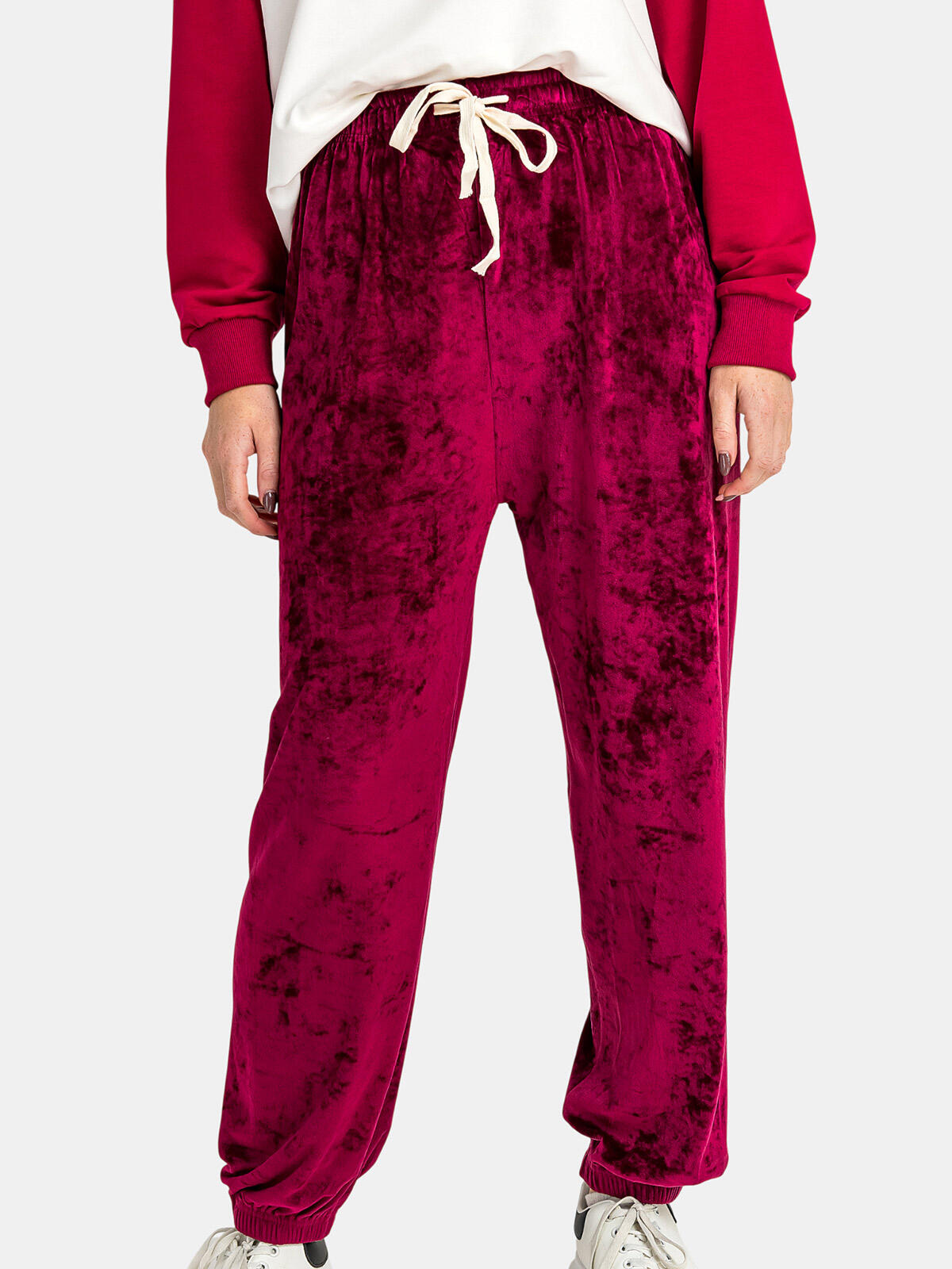 Spodnie Welurowe w Kolorze Bordowym - Styl i Wygoda! 😊