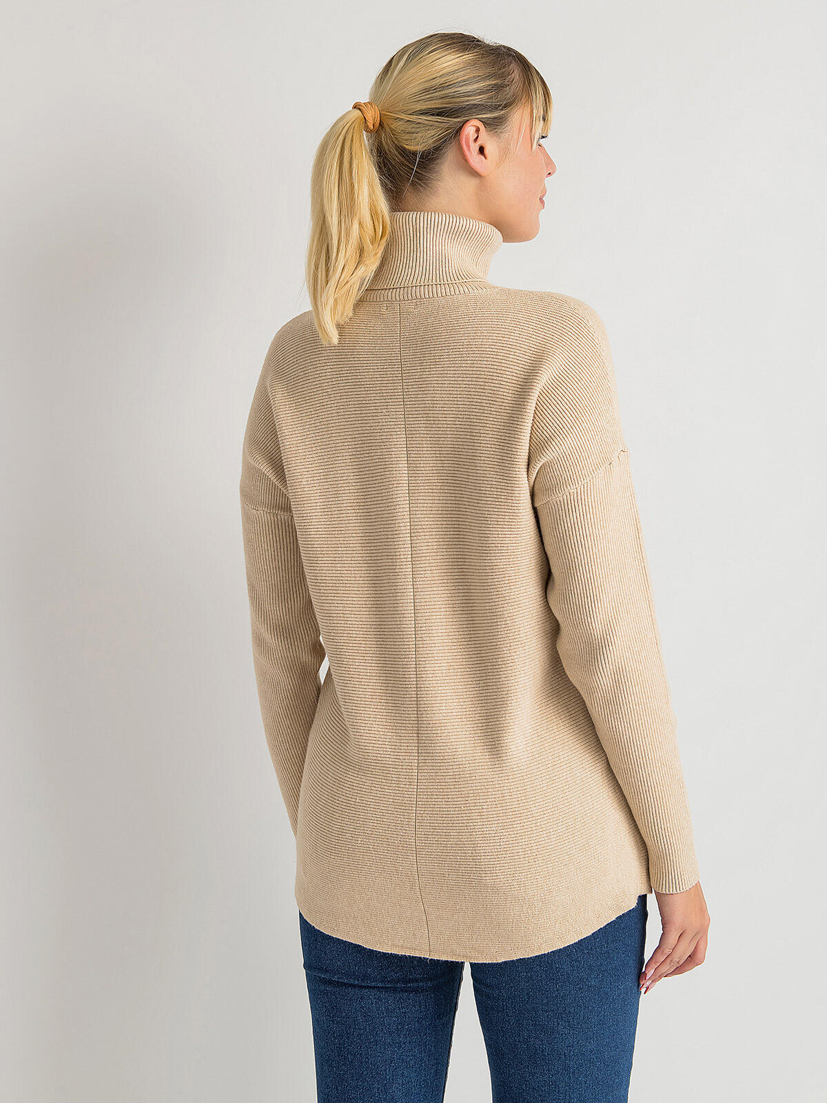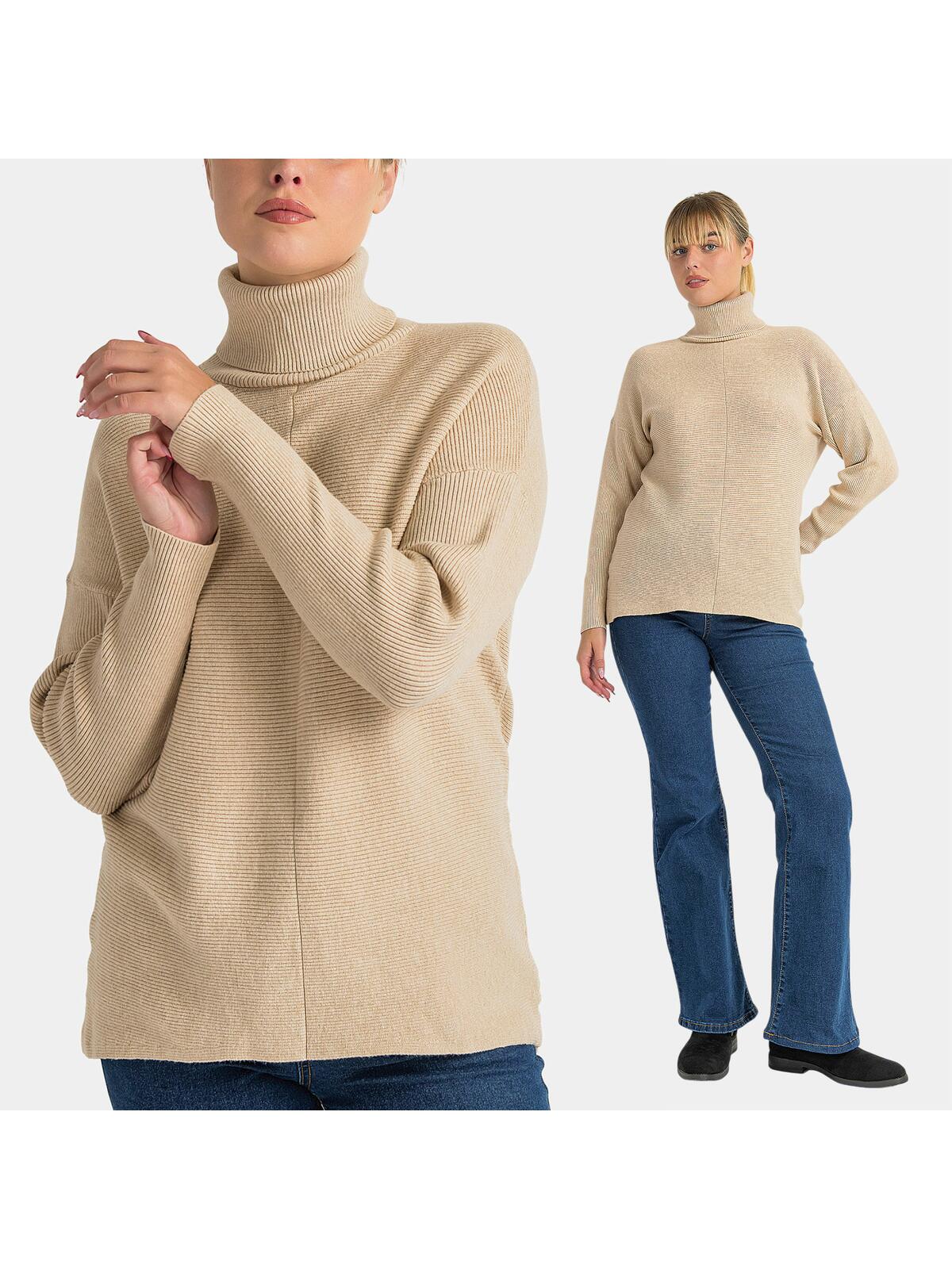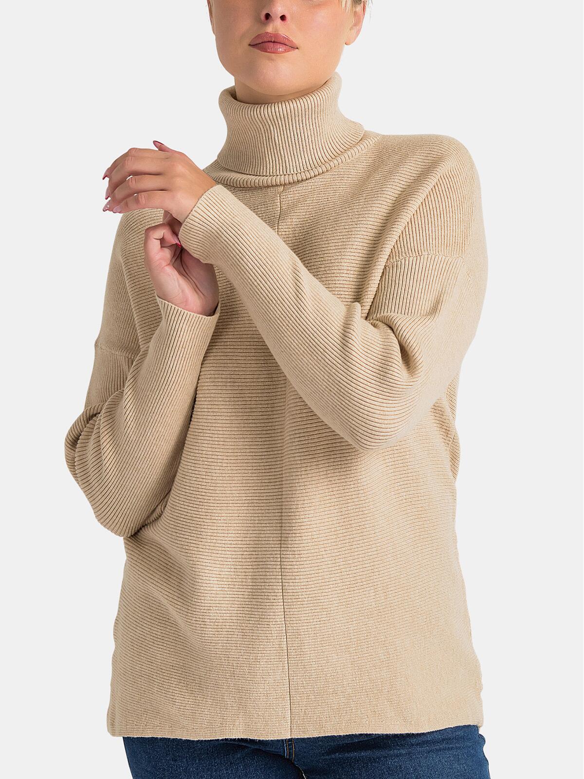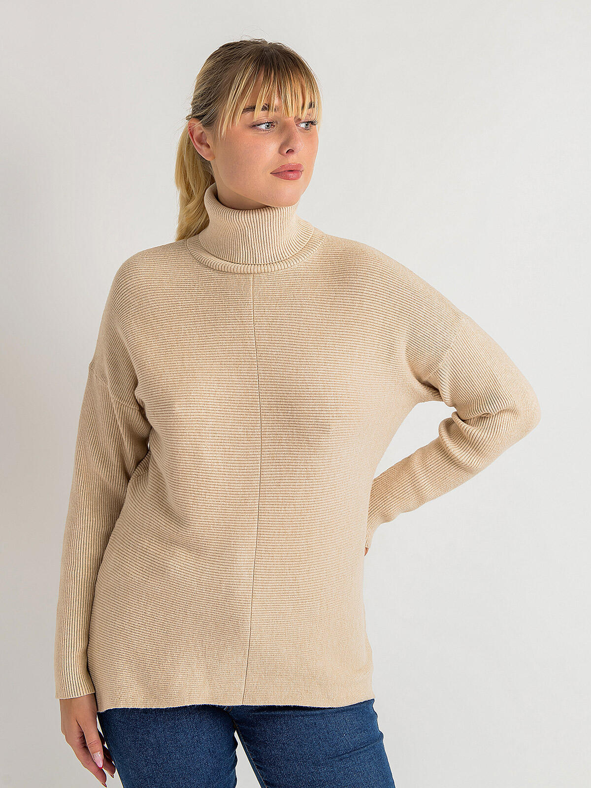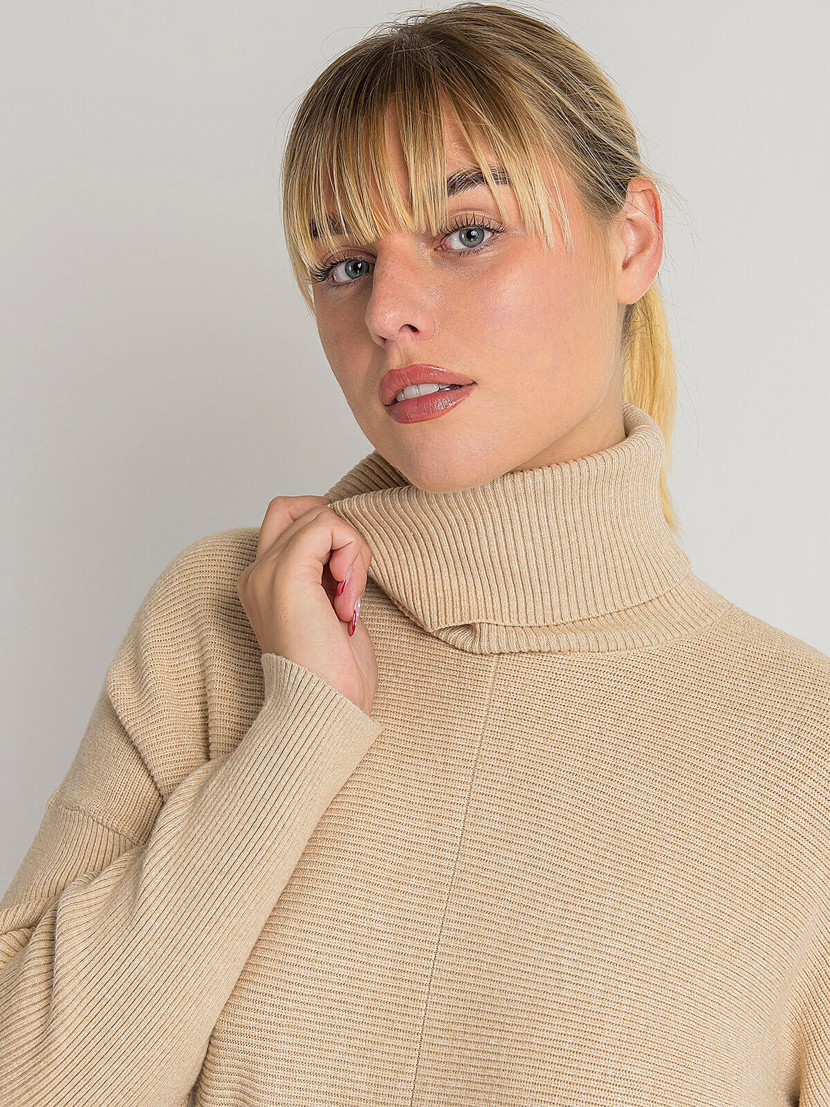 Odkryj wyjątkowy golf w kolorze beżowym, który łączy w sobie komfort noszenia z eleganckim stylem! Ten lekko oversize'owy model z opuszczoną linią ramion to idealny wybór na każdą okazję. Dzięki wysokiej stójce, zapewnia nie tylko ciepło, ale także modny wygląd, który przyciągnie spojrzenia!