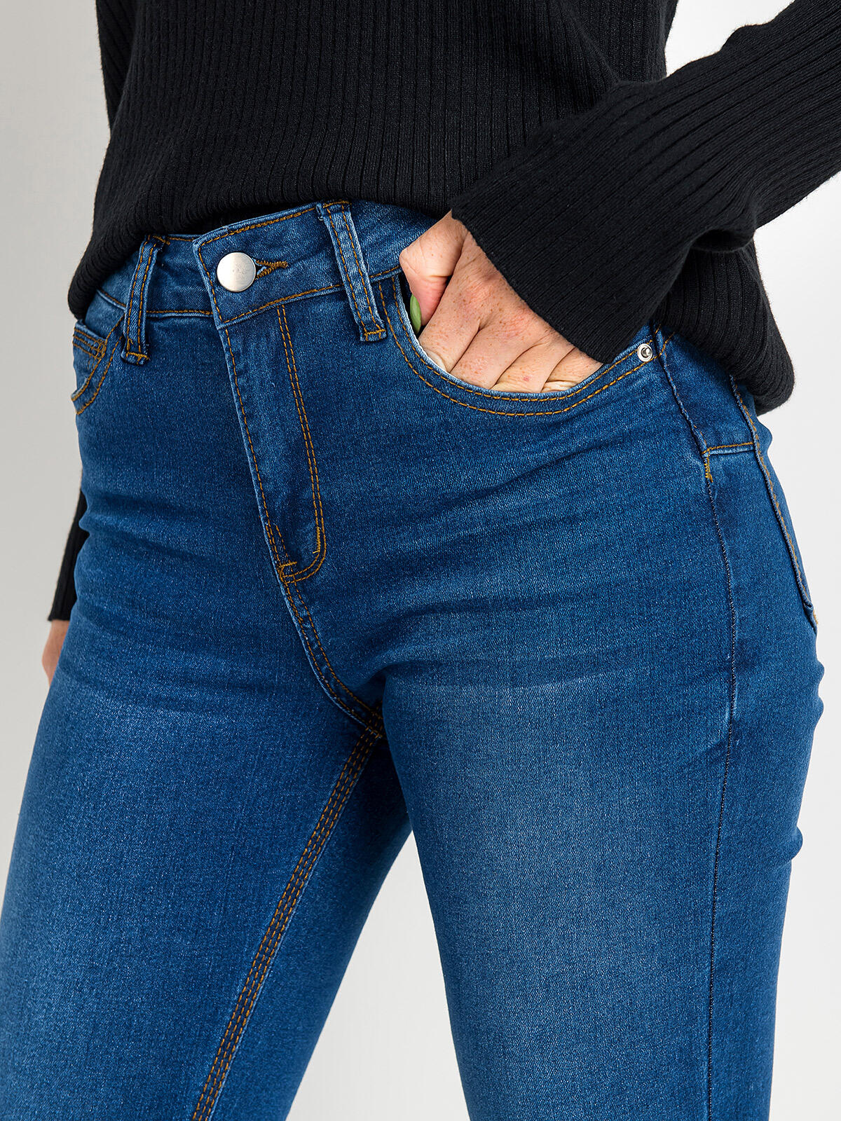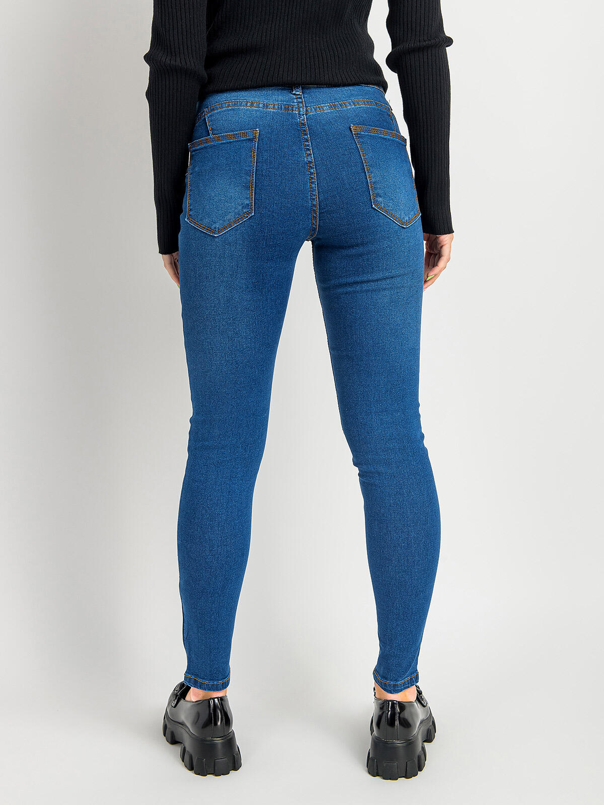 - Materiał: elastyczny denim, który świetnie dopasowuje się do ciała.