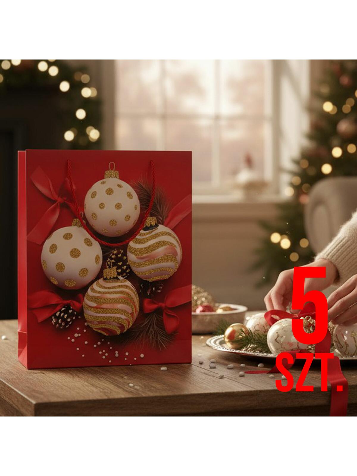 Przygotuj się na magiczne chwile pełne radości! Nasz zestaw 5-ciu ozdobnych toreb prezentowych z przepięknymi świątecznymi wzorami to idealny sposób, aby wyróżnić swoje upominki i sprawić, że będą one jeszcze bardziej wyjątkowe. Wykonane z wysokiej jakości papieru, z efektownymi detalami, nie tylko przyciągną wzrok, ale także świetnie wpisują się w bożonarodzeniowy klimat. ✨