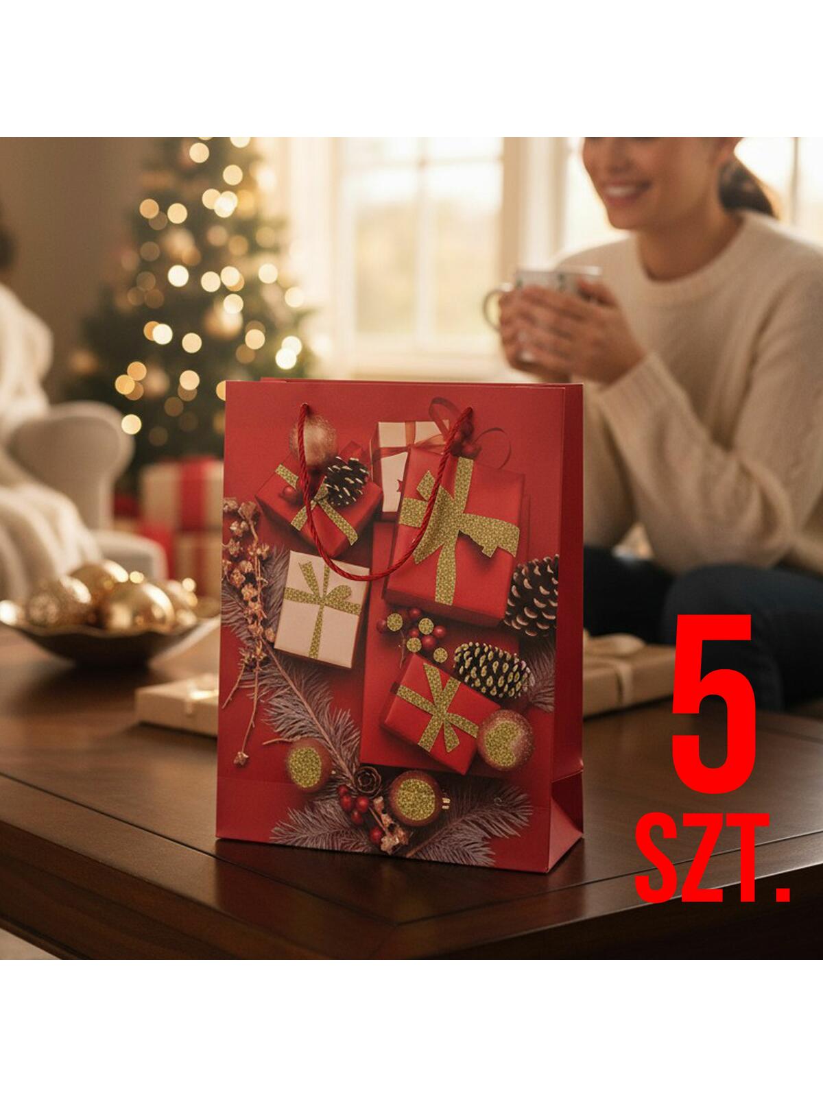 Przygotuj się na magiczne chwile pełne radości! Nasz zestaw 5-ciu ozdobnych toreb prezentowych z przepięknymi świątecznymi wzorami to idealny sposób, aby wyróżnić swoje upominki i sprawić, że będą one jeszcze bardziej wyjątkowe. Wykonane z wysokiej jakości papieru, z efektownymi detalami, nie tylko przyciągną wzrok, ale także świetnie wpisują się w bożonarodzeniowy klimat. ✨