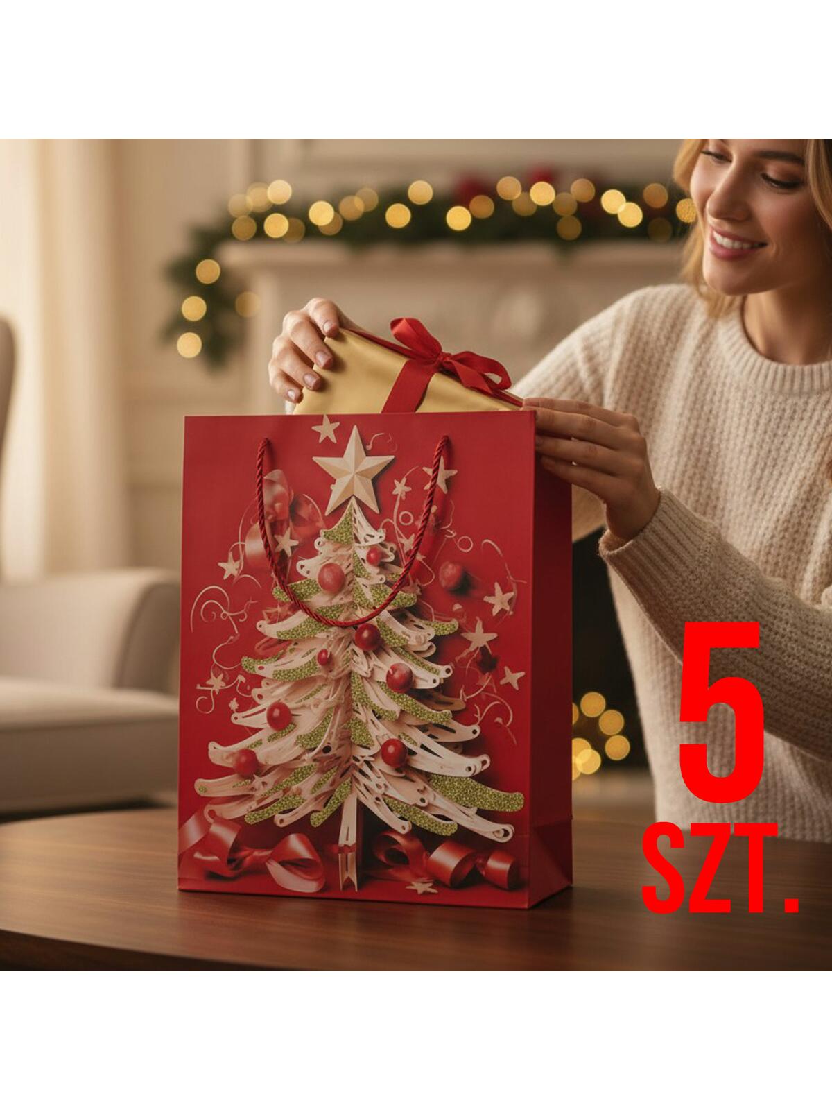 Przygotuj się na magiczne chwile pełne radości! Nasz zestaw 5-ciu ozdobnych toreb prezentowych z przepięknymi świątecznymi wzorami to idealny sposób, aby wyróżnić swoje upominki i sprawić, że będą one jeszcze bardziej wyjątkowe. Wykonane z wysokiej jakości papieru, z efektownymi detalami, nie tylko przyciągną wzrok, ale także świetnie wpisują się w bożonarodzeniowy klimat. ✨