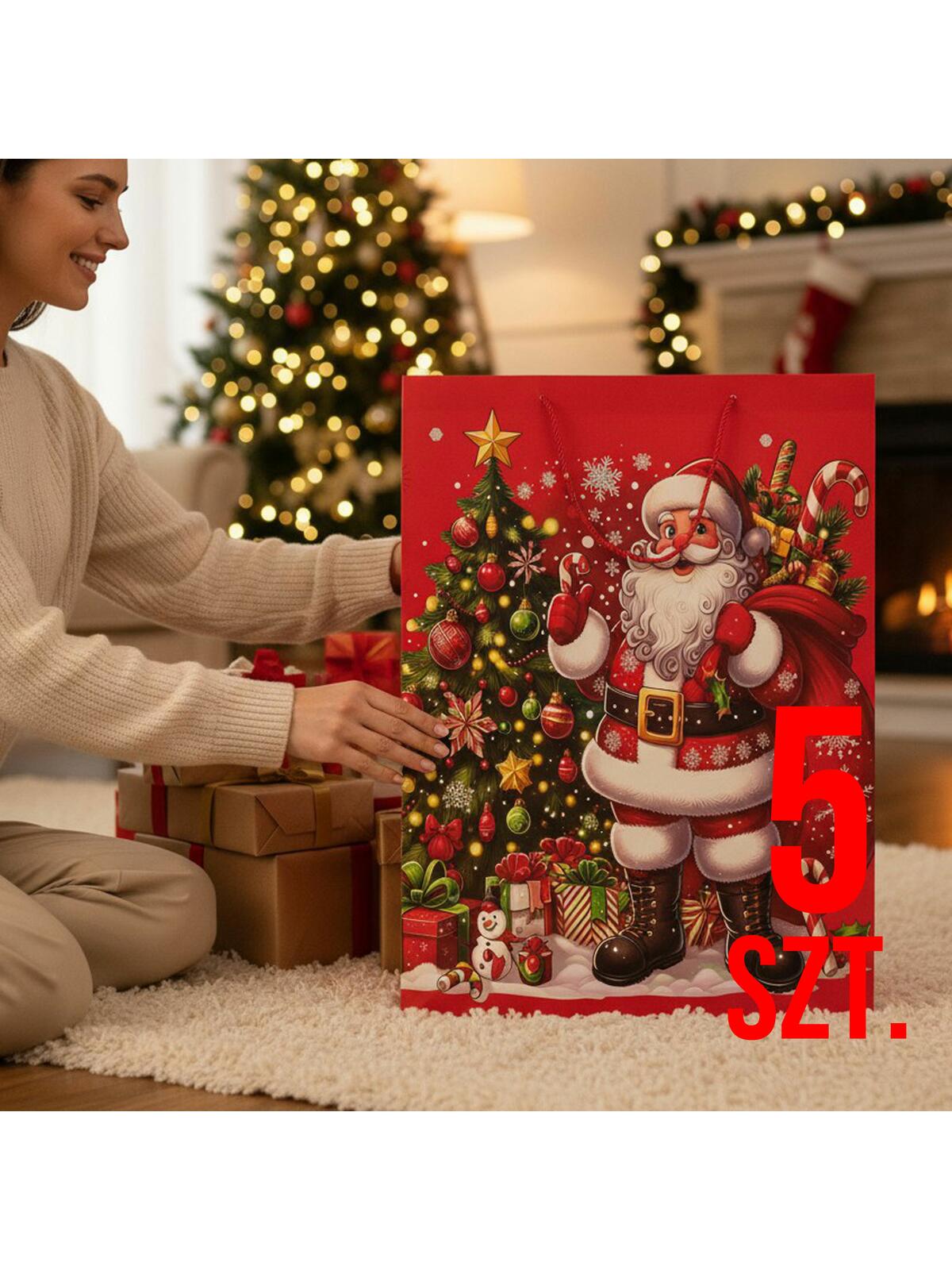 Przygotuj się na magiczne chwilę pełne radości! Nasz zestaw 5-ciu sztuk ozdobnych toreb prezentowych z motywem Świętego Mikołaja to idealny sposób, aby wyróżnić swoje upominki i sprawić, że będą one jeszcze bardziej wyjątkowe. 🌟 Wykonane z wysokiej jakości papieru, nie tylko przyciągają wzrok, ale także świetnie wpisują się w bożonarodzeniowy klimat. 🎁