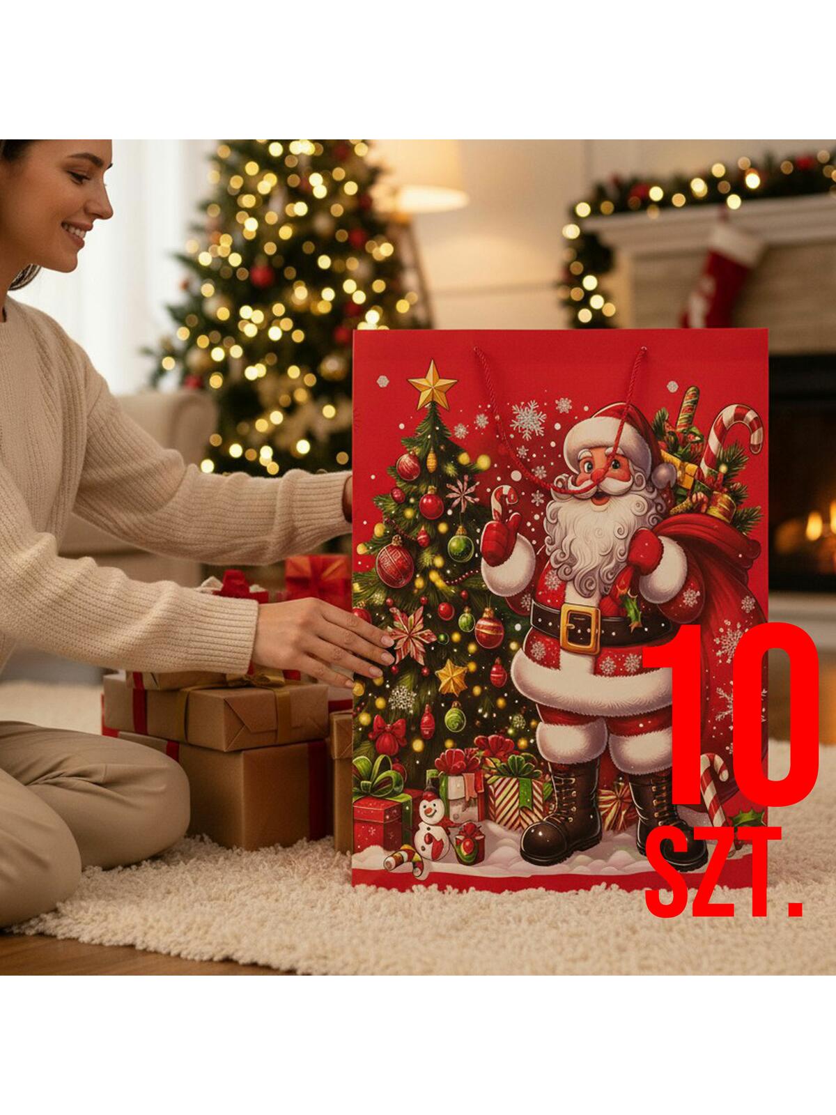 Przygotuj się na magiczne chwilę pełne radości! Nasz zestaw 10-ciu sztuk ozdobnych toreb prezentowych z motywem Świętego Mikołaja to idealny sposób, aby wyróżnić swoje upominki i sprawić, że będą one jeszcze bardziej wyjątkowe. 🌟 Wykonane z wysokiej jakości papieru, nie tylko przyciągają wzrok, ale także świetnie wpisują się w bożonarodzeniowy klimat. 🎁