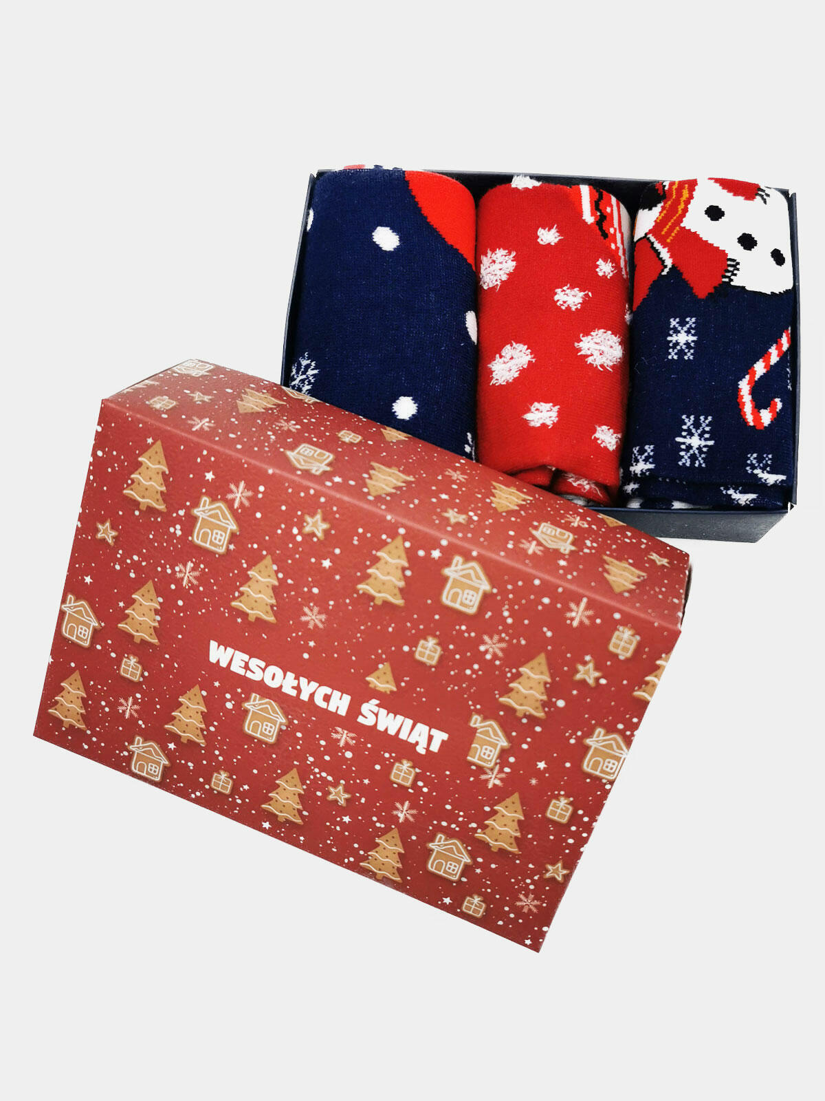- prezentowy zestaw 3 pary świątecznych skarpet damskich w eleganckim pudełku
