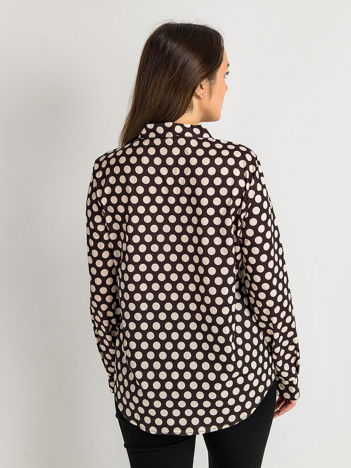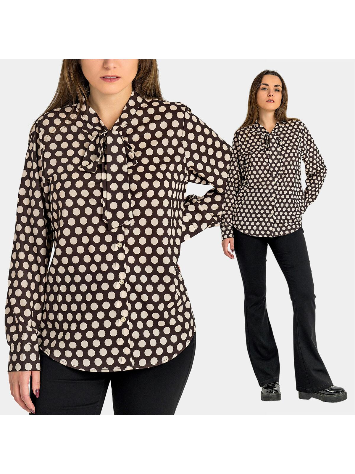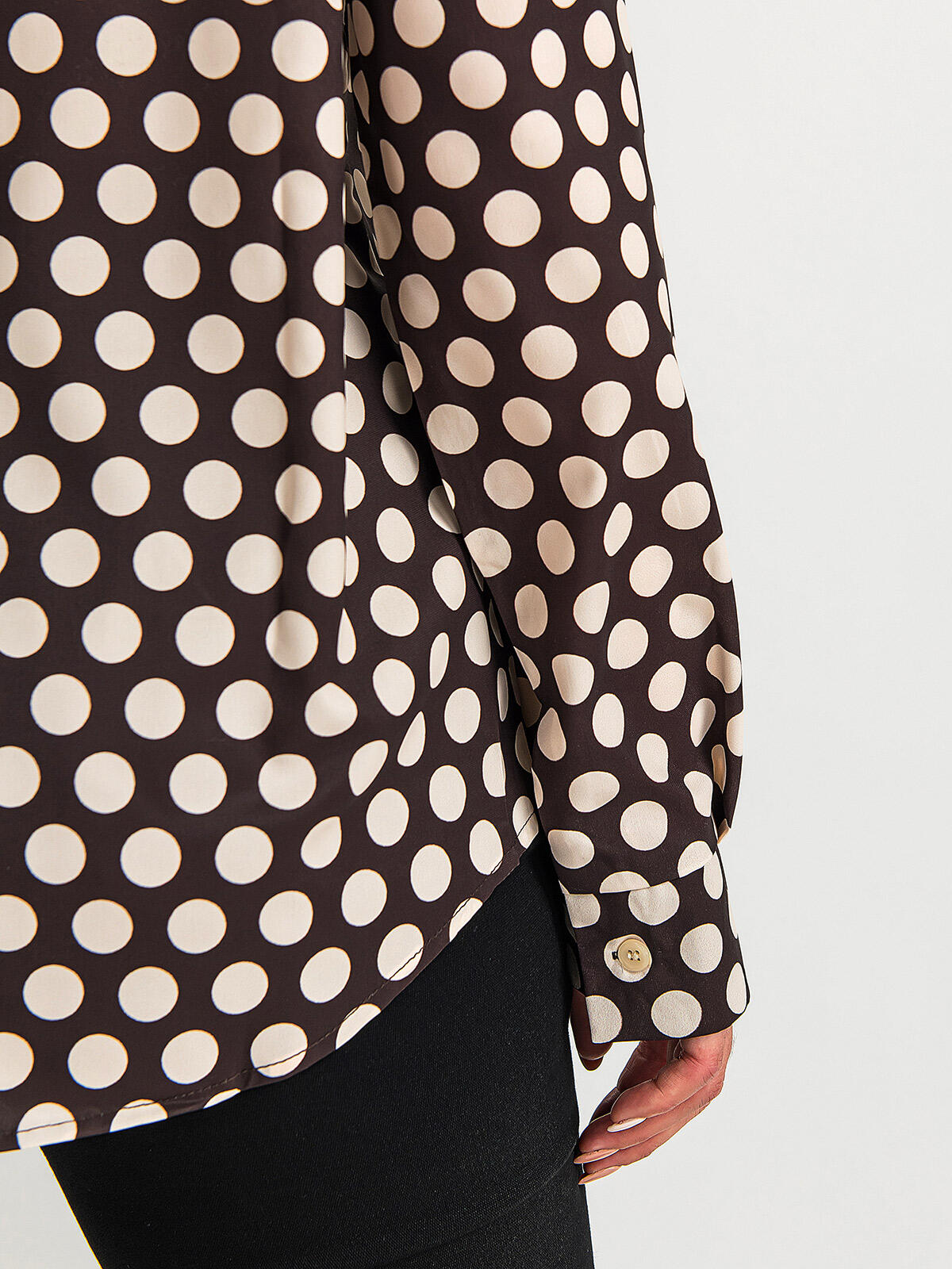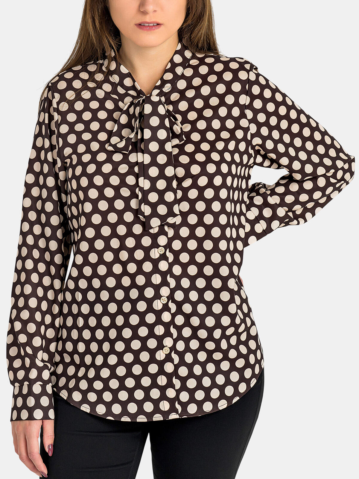 Wprowadź do swojej garderoby nutę wyrafinowania z naszą czarną koszulą damską, która zachwyca eleganckim wiązaniem pod szyją oraz unikalnym wzorem w kropki! 😊 To idealny wybór zarówno na codzienne wyjścia, jak i na bardziej formalne okazje, które wymagają odrobiny klasy. Długie rękawy zakończone mankietami zapinanymi na guzik dodają całości szyku, a subtelny design przyciąga spojrzenia wszystkich wokół. ✨ Koszula jest zapinana na guziki, co zapewnia komfort noszenia i łatwość w stylizacji.