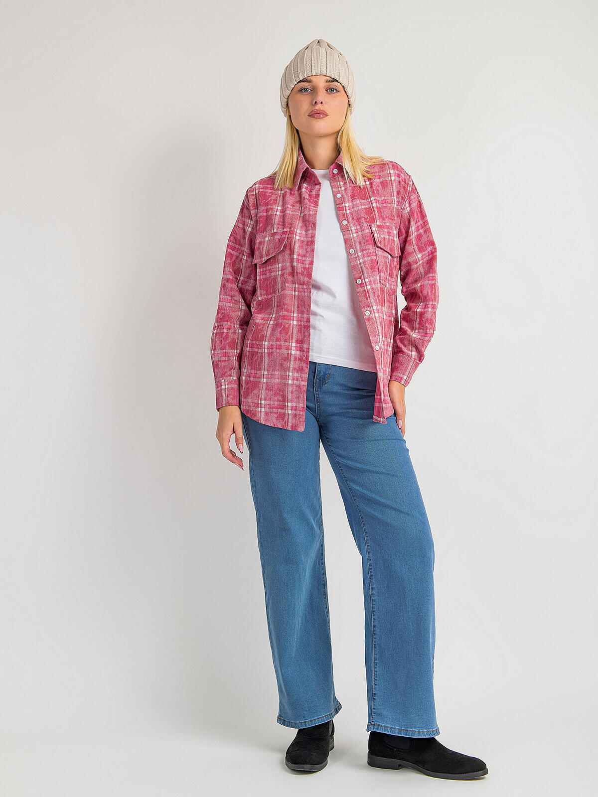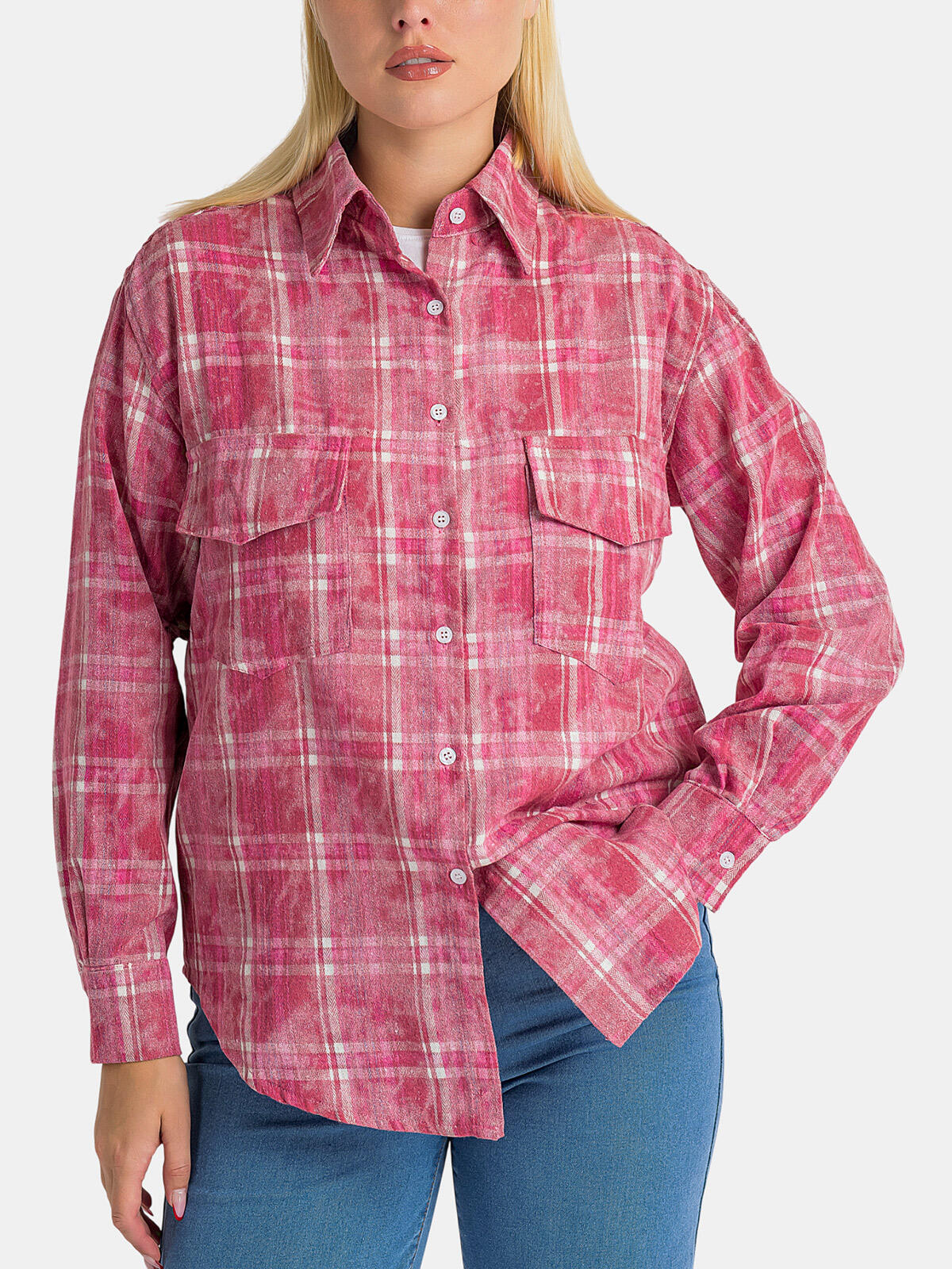 Wprowadź odrobinę koloru do swojej garderoby z naszą piękną, różową koszulą w kratkę! Ta uniwersalna koszula nie tylko doskonale się prezentuje, ale także zapewnia wygodę przez cały dzień. Zapinana na guziki, z eleganckim kołnierzem, jest idealnym wyborem na formalne spotkania i casualowe wyjścia. Posiada dwie praktyczne kieszonki, które dodają jej stylowego charakteru, a długie rękawy zakończone mankietem zapinanym na guzik pozwalają na łatwe dostosowanie do każdej sylwetki. 😊