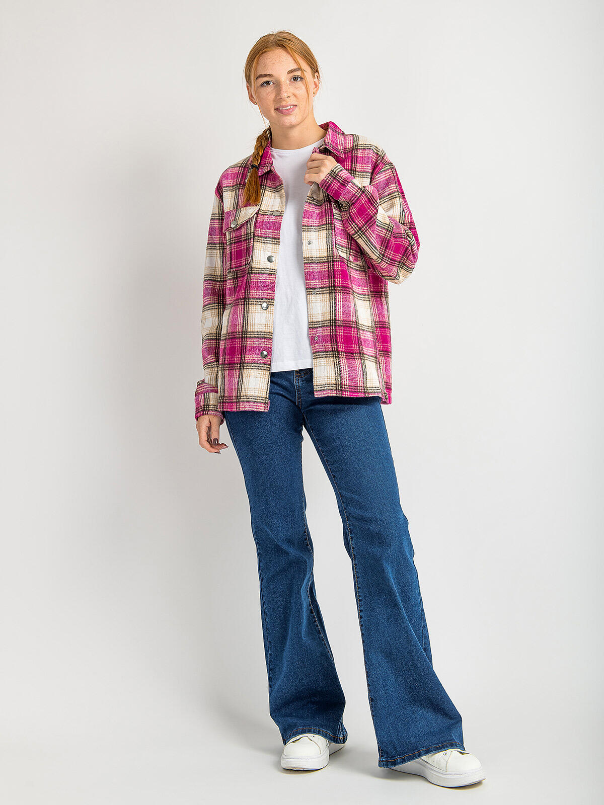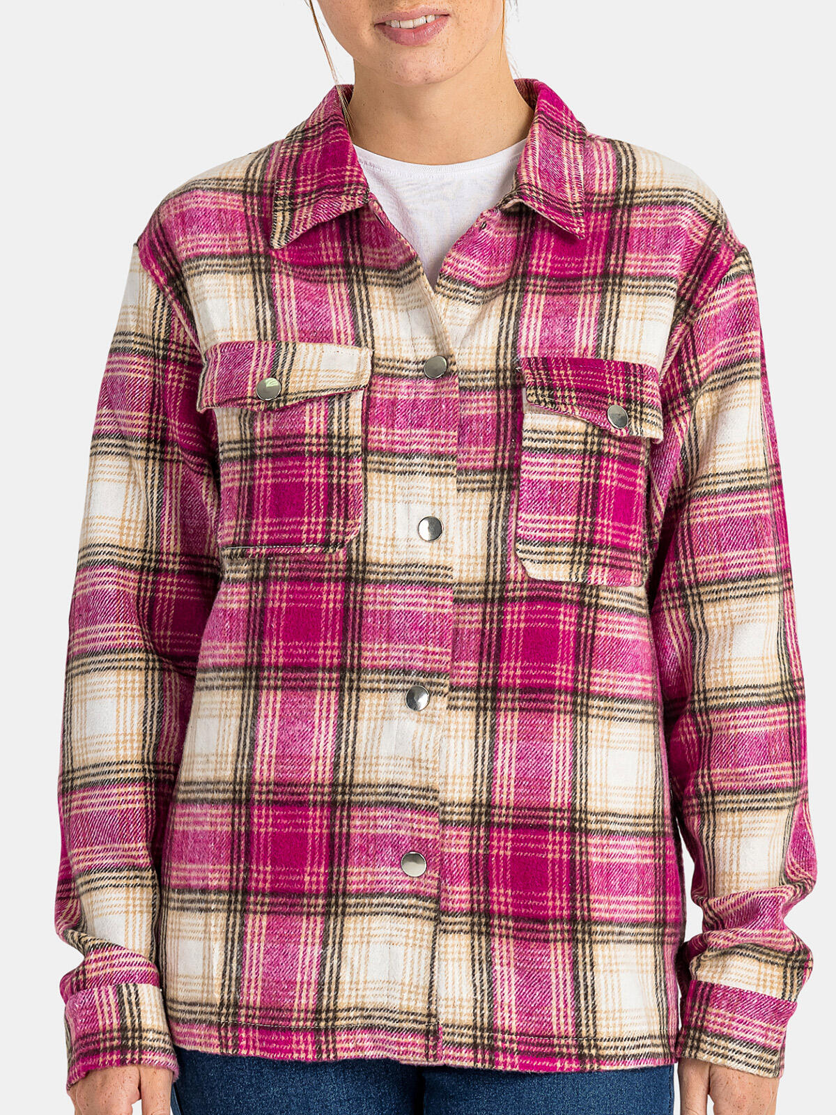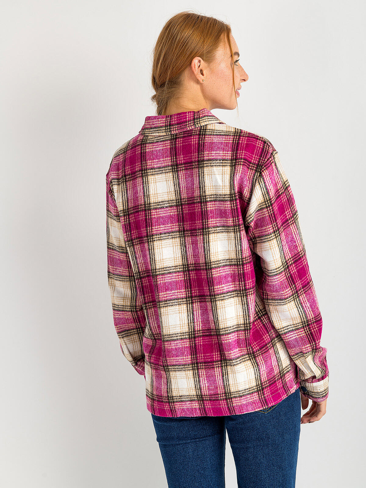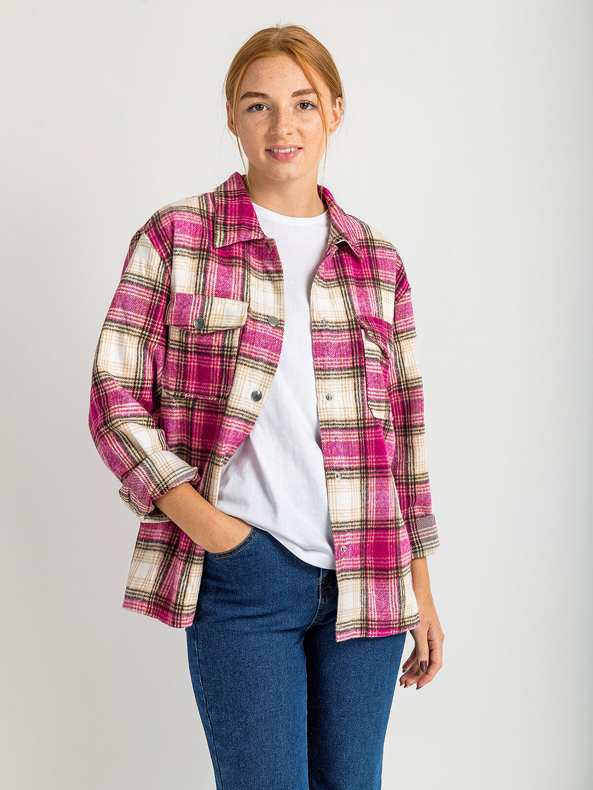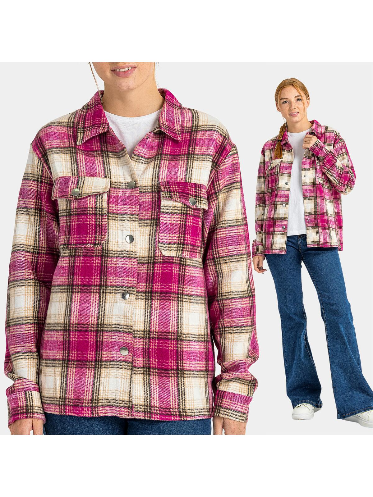 Niech Twoja garderoba nabierze nowego blasku! Nasza damska koszula w ponadczasowy wzór w kratę to must-have każdej modnej kobiety. Zapinana na praktyczne zatrzaski, z eleganckim kołnierzykiem, łączy w sobie styl i wygodę. Dwie zapinane kieszenie z przodu dodają jej charakteru, a luźny fason z długimi rękawami sprawia, że jest idealna na różne okazje. 🌆