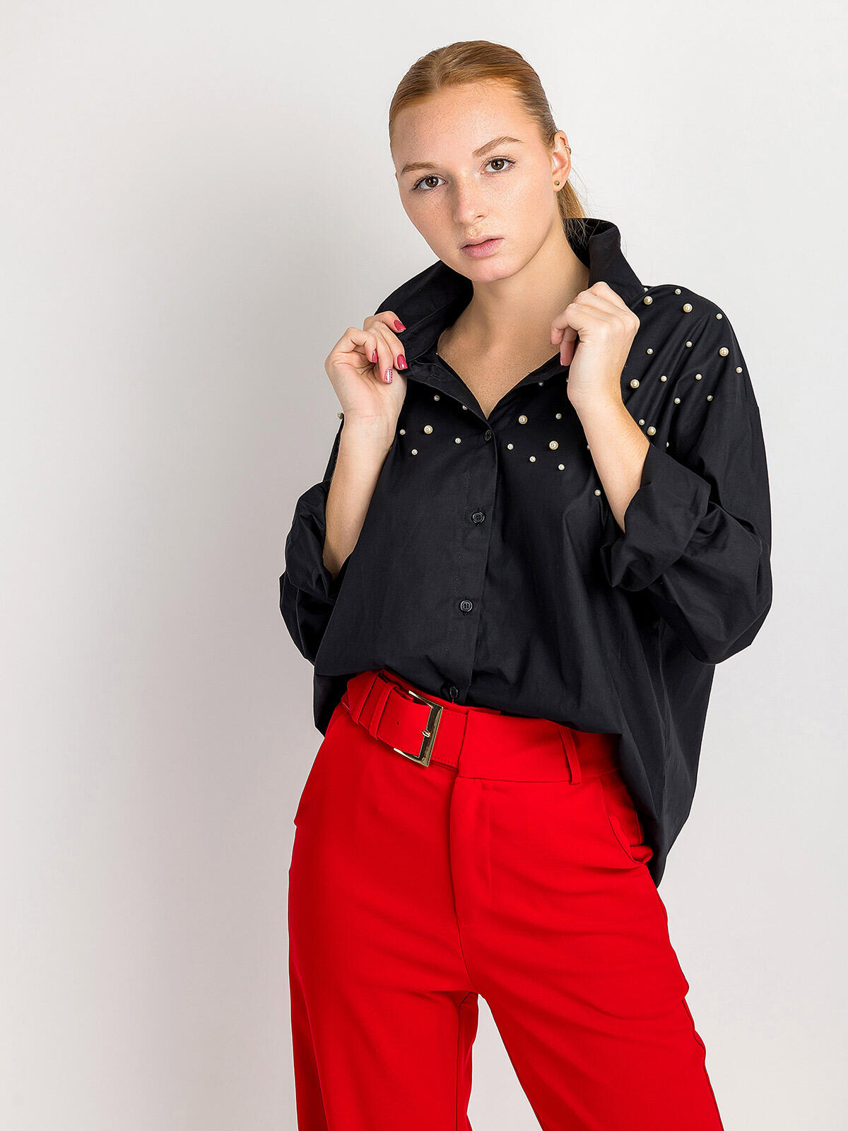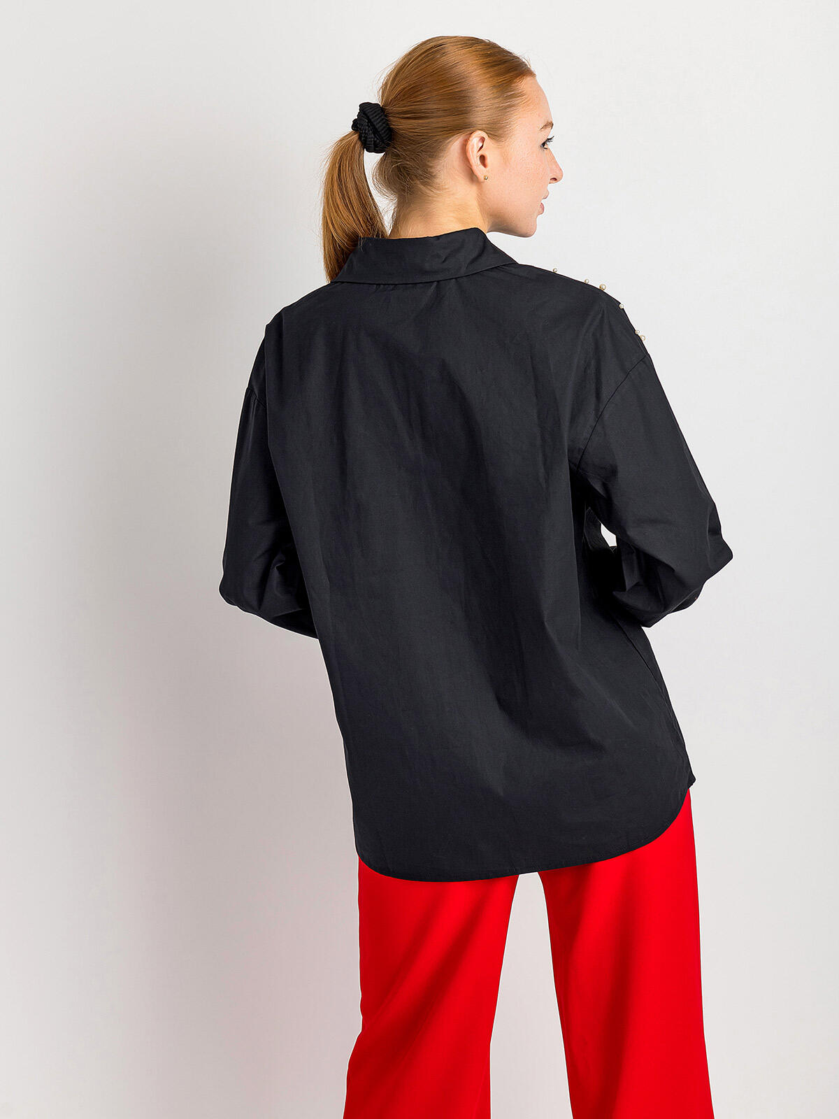 Ozdobne akcenty w postaci koralików przy kołnierzu dodają jej subtelnego blasku, sprawiając, że wyróżnisz się z tłumu. Długie, luźne rękawy zapewniają swobodę ruchów, a luźny krój podkreśla kobiecą sylwetkę, oferując jednocześnie maksymalny komfort. Model posiada klasyczne zapięcie na guziki.✨