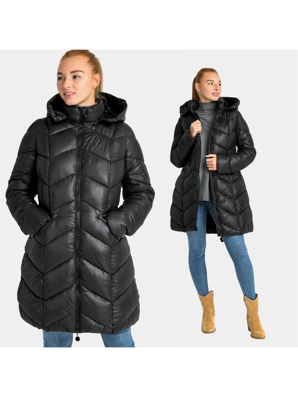 Wprowadź odrobinę luksusu do swojej zimowej garderoby dzięki naszej kurtce damskiej z obszernym kapturem. Jej klasyczny czarny kolor idealnie komponuje się z każdą stylizacją, a lekko taliowany fason podkreśla kobiece kształty. Dzięki futerkowemu ociepleniu wewnątrz kurtki i w kapturze poczujesz się komfortowo nawet podczas najzimniejszych dni. Odpinany kaptur pozwala na różne stylizacje, a wysoki kołnierz dodatkowo chroni przed chłodem. Dwie zapinane na zamek kieszenie pomogą bezpiecznie przechować Twoje drobiazgi. Co więcej, ozdobne zawieszki przy zamkach dodają całości wyjątkowego charakteru. 🖤❄️😊
