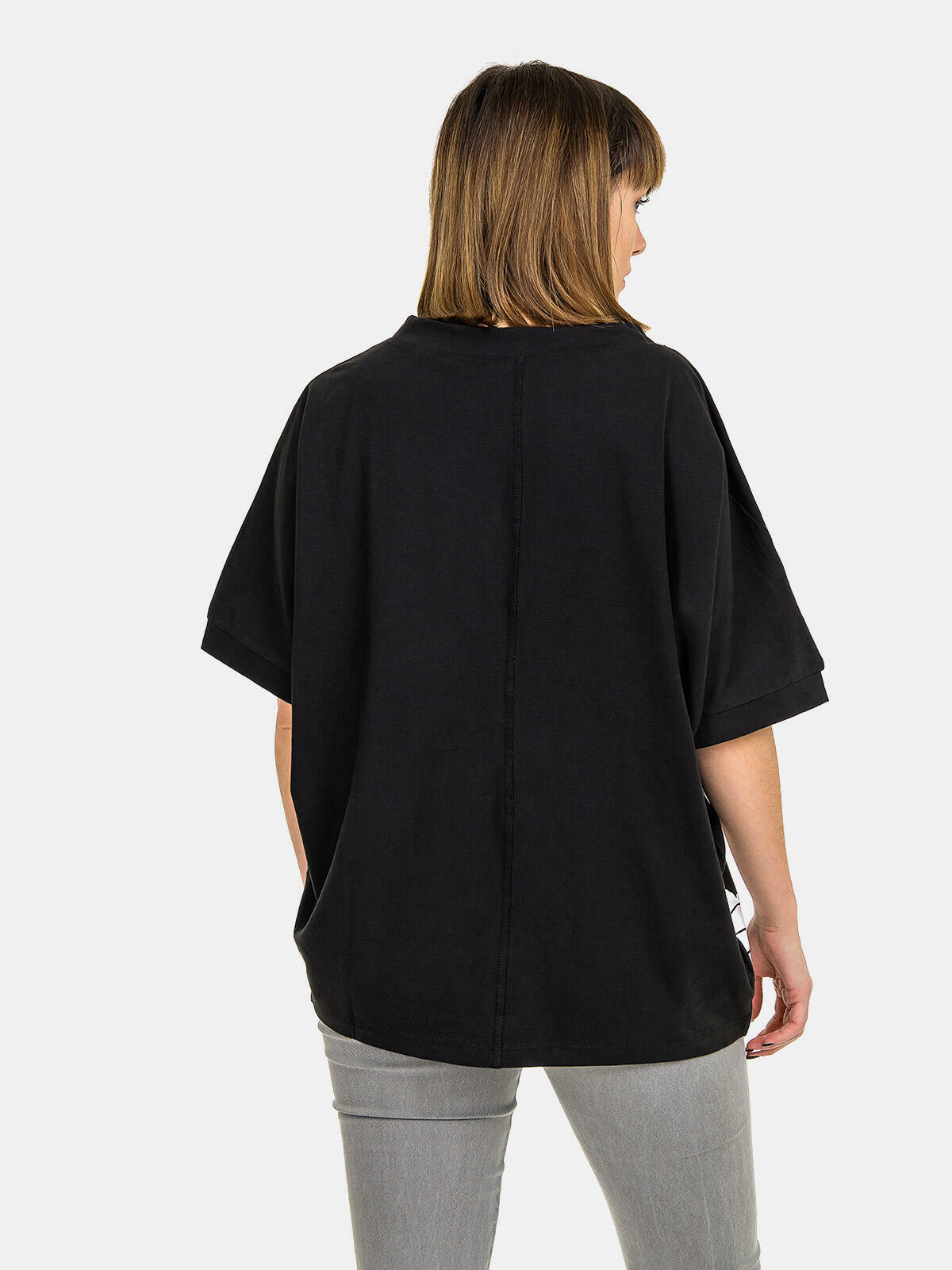 Dekolt w łódkę z eleganckimi troczkami dodaje subtelnego uroku i pozwala na regulację, co zapewnia idealne dopasowanie do sylwetki. 🎀 Krótkie, szerokie rękawy są modne i komfortowe, doskonale pasują do każdej figury, podkreślając luz i swobodę. 💫