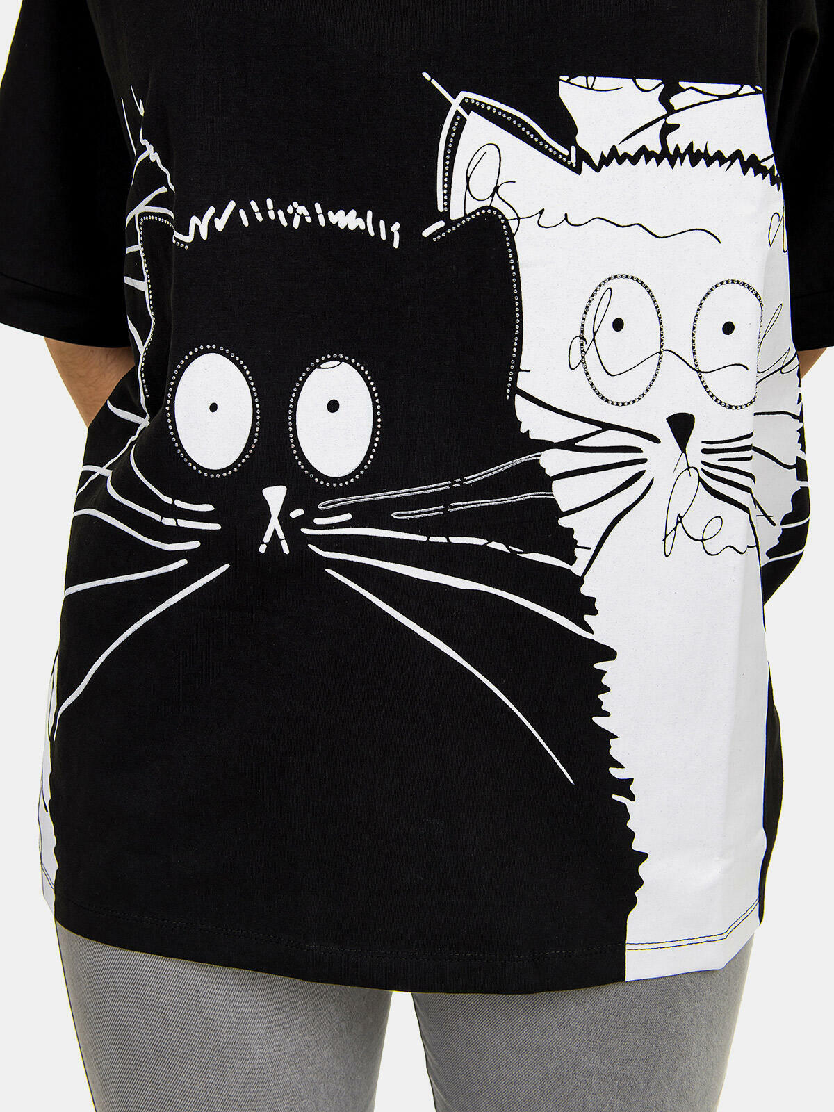 Nadruk z motywem kotów 🐱 to wyjątkowy detal, który nadaje bluzce niepowtarzalnego charakteru. To doskonały wybór dla osób, które cenią oryginalność i chcą wyróżniać się z tłumu.