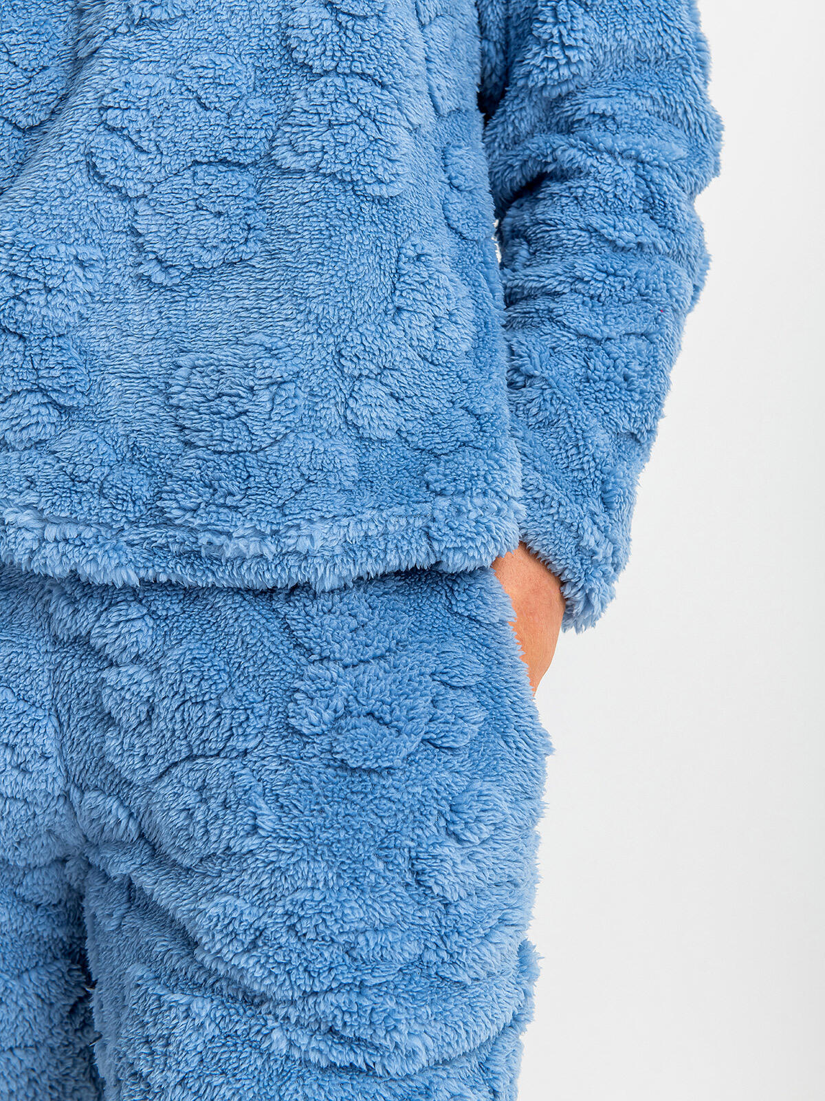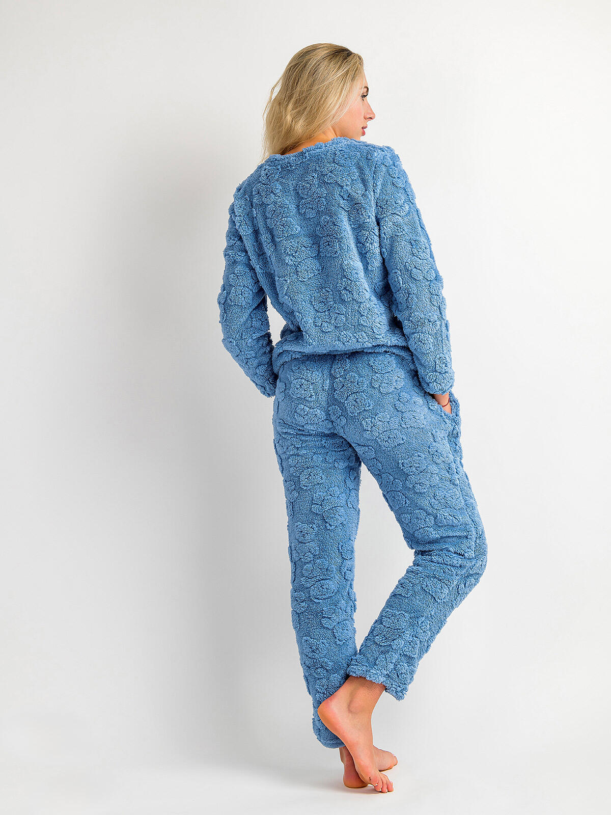 Przygotuj się na najwyższy poziom relaksu w naszej cudownej, dwuczęściowej piżamie! 🌙 Zestaw składający się z długich spodni z elastycznym pasem i bluzki z długim rękawem otuli Cię miękkością i ciepłem, gdy tylko wejdziesz do domu. Wykonana z puszystego materiału z dodatkiem bawełny, zapewnia nie tylko wygodę, ale także styl! 💖 Okrągły dekolt oraz wygodny krój sprawiają, że idealnie dopasowuje się do sylwetki, a tłoczony wzór w misie dodaje mu uroku. W pięknym kolorze niebieskim, ta piżama z pewnością stanie się Twoim ulubionym strojem na zimowe wieczory! ❄️