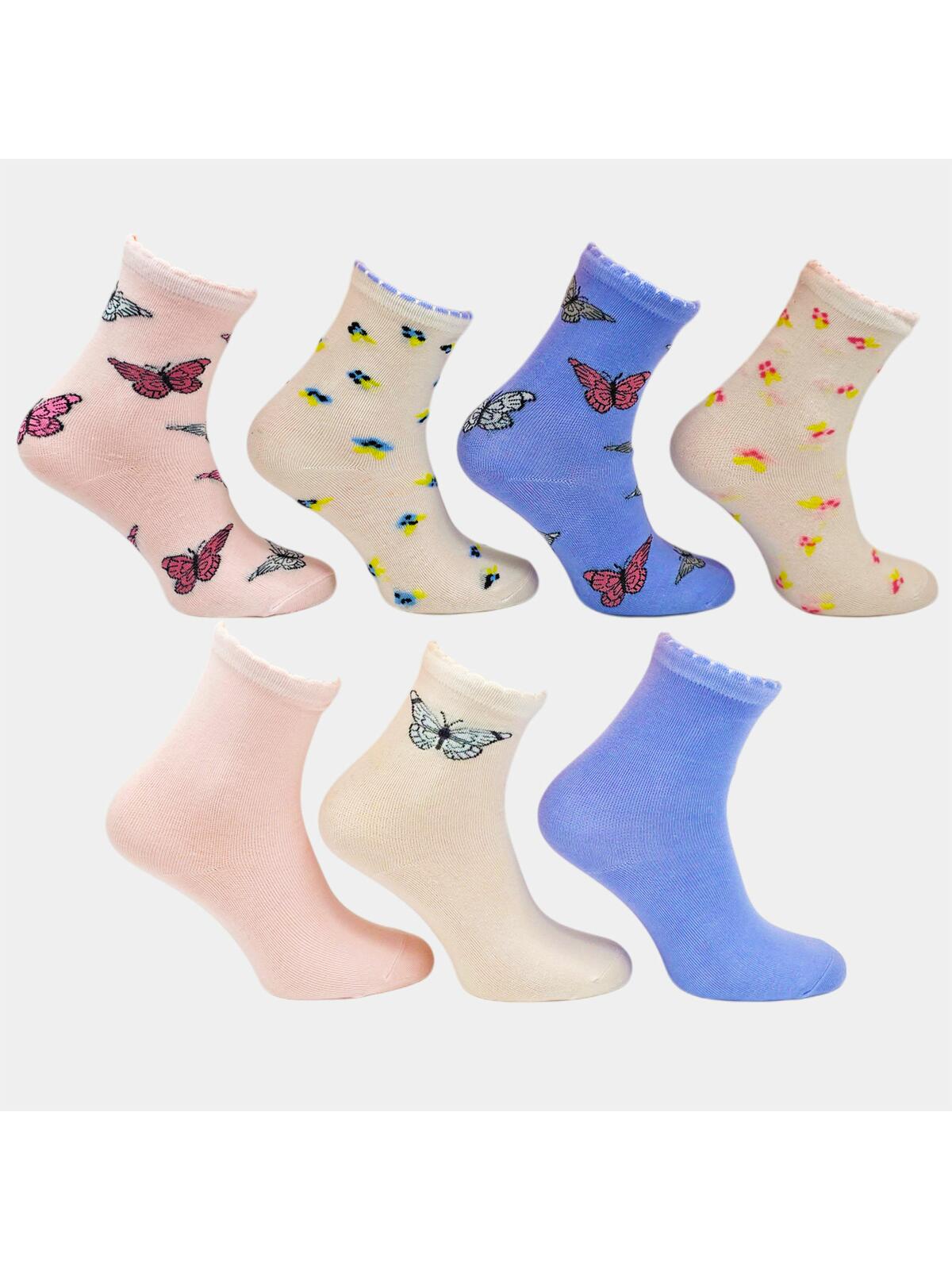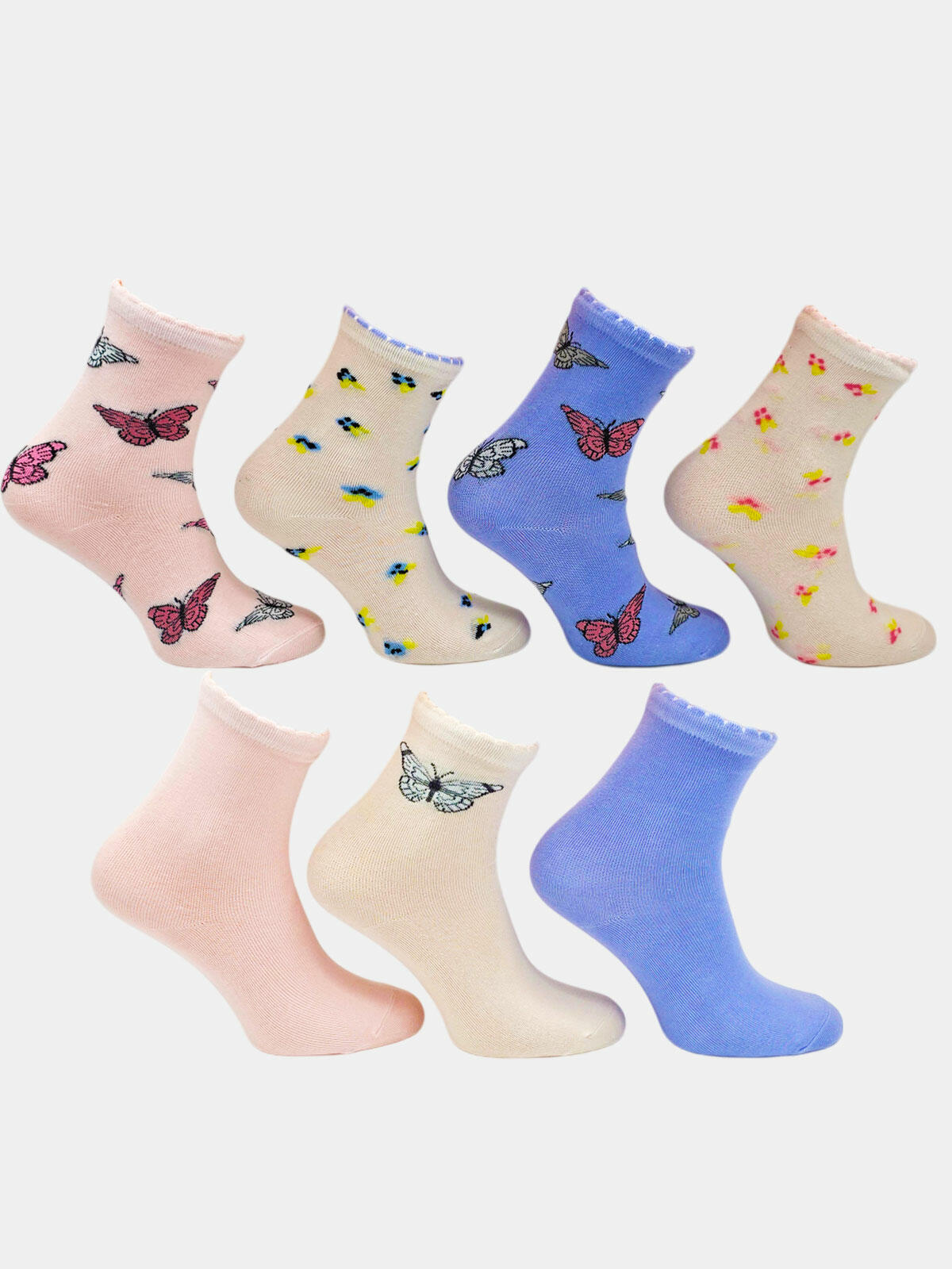 🌟 7-pak dziewczęcych skarpetek z motywami motylków i kwiatów – delikatność i styl każdego dnia! 🦋🌸
