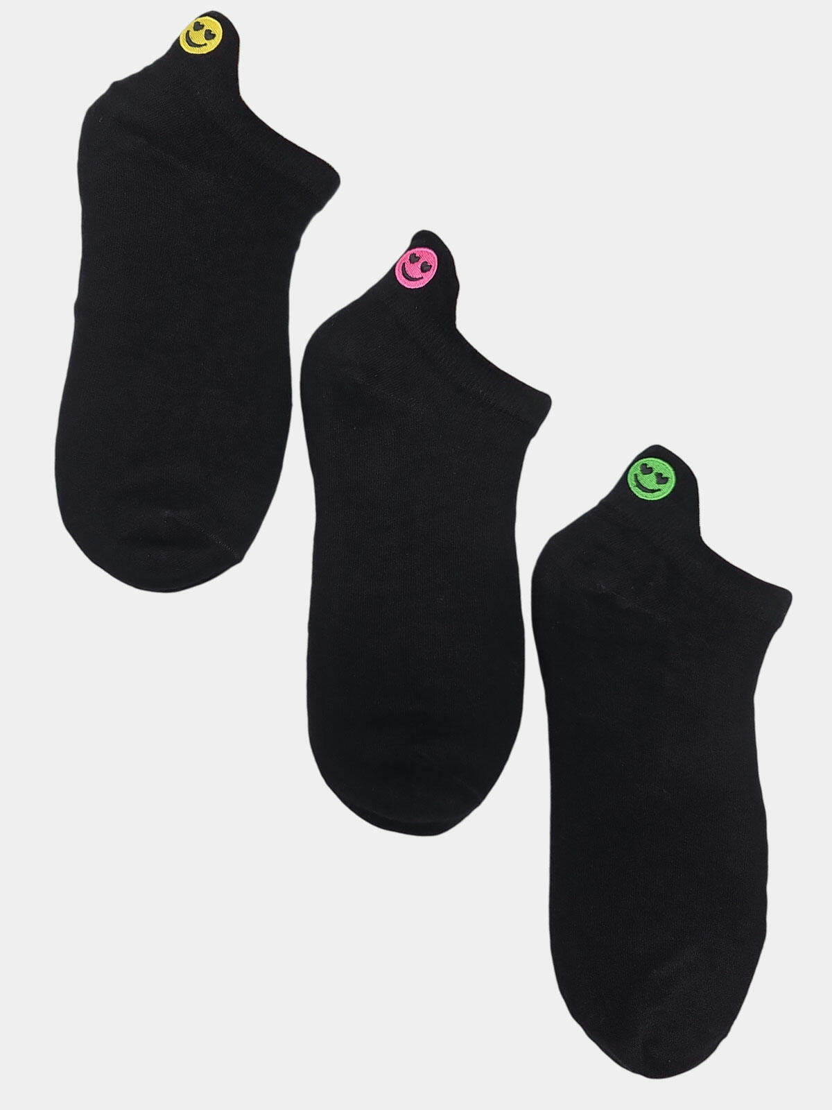 🧦 Kolor: Gładka czerń z neonowymi buźkami
