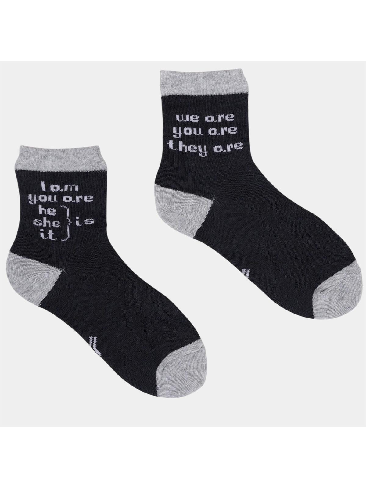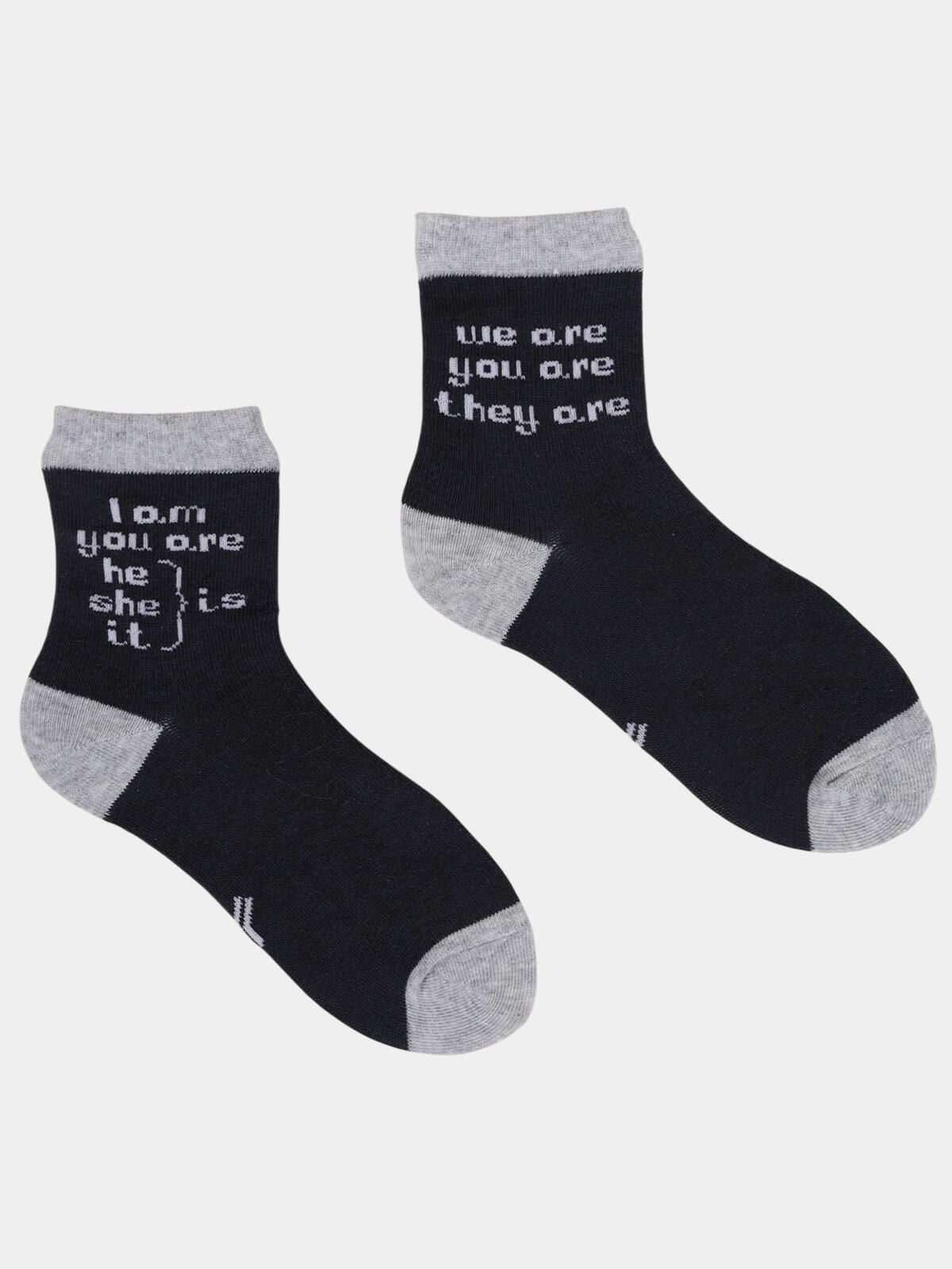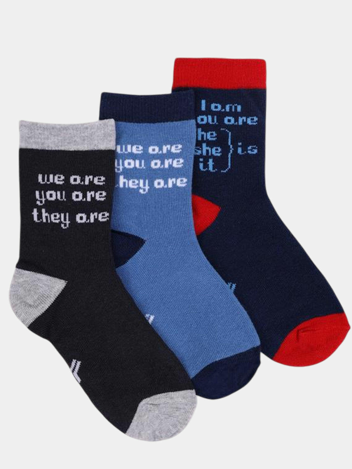 Wprowadź do codziennych przygód swojego dziecka odrobinę radości z naszymi bawełnianymi skarpetami! Te wyjątkowe skarpetki łączą w sobie delikatność bawełny i przyjazność dla skóry, co czyni je idealnym wyborem na każdą porę roku. 😊 Chłopięcy wzór oraz stonowane kolory z motywami językowymi dodają charakteru i stylu każdej stylizacji. Dzięki długiemu fasonowi i elastycznemu ściągaczowi skarpetki świetnie trzymają się stopy, co zapobiega ich zsuwaniu się. Idealne na codzienne noszenie – do szkoły, zabawy i innych aktywności.