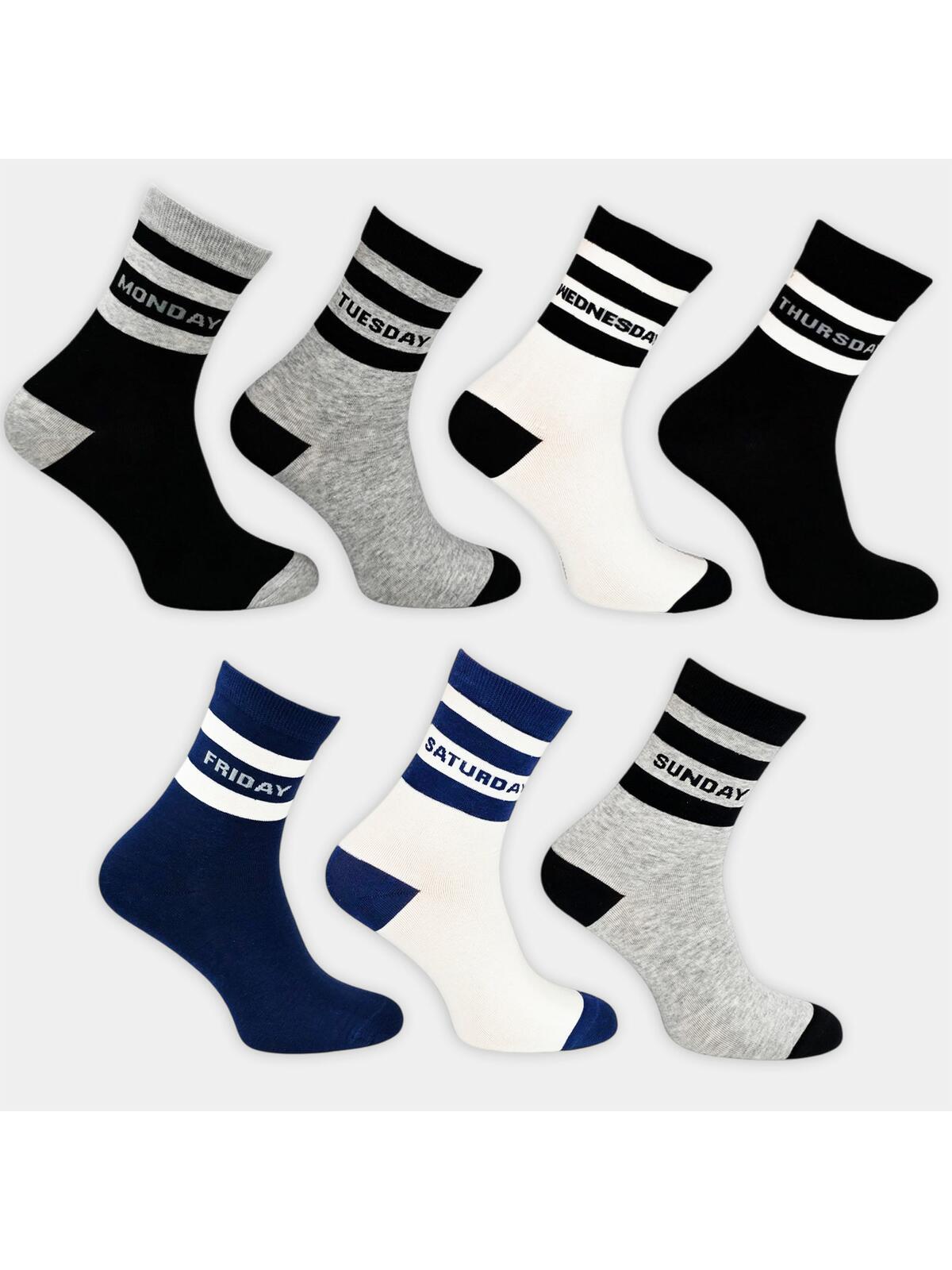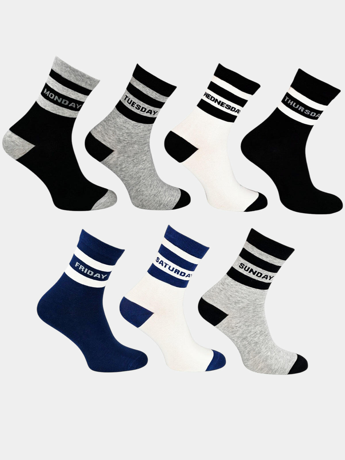 Odkryj nasz praktyczny 7-pak bawełnianych skarpetek chłopięcych, które łączą w sobie komfort i styl! Wysokie, z elastycznymi ściągaczami oraz starannie wyprofilowanym kroju sprawiają, że skarpety doskonale przylegają do stopy, zapewniając wygodę przez cały dzień. ✨ Każda para skarpet jest w innym kolorze i posiada nazwę dnia tygodnia, co nie tylko dodaje uroku, ale także ułatwia codzienne wybory! 🌈 Idealne do szkoły, na podwórko czy rodzinne spotkania – sprawdź, jak wspaniale będą wyglądać na Twoim chłopaku!
