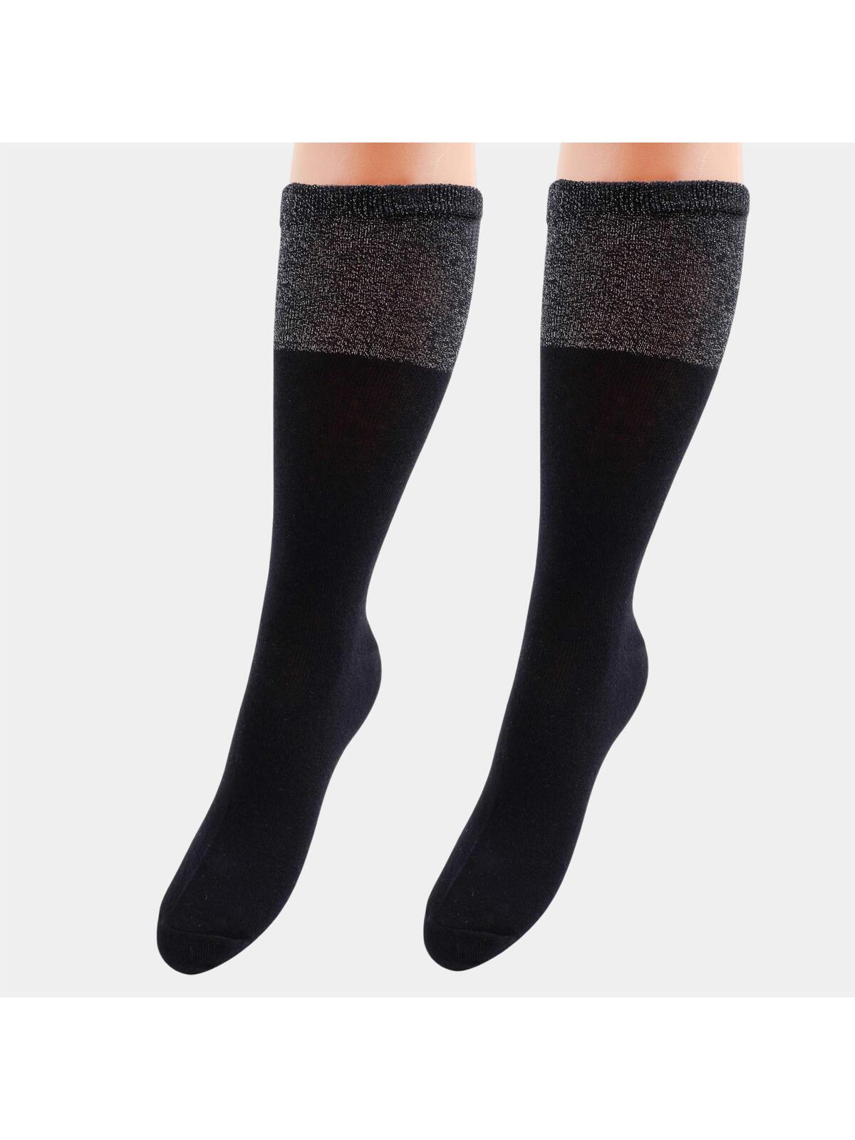 Wprowadź do swojej garderoby odrobinę luksusu! Nasze długie, czarne skarpetki, wykonane z dużą zawartością wysokiej jakości bawełny, to idealny wybór dla każdego, kto pragnie czuć się komfortowo i stylowo. Subtelny połysk lurexu na ściągaczu dodaje im kobiecego uroku- delikatnie błyszczący detal, który podkreśli kobiecy styl. Doskonale dopełnią każdą stylizację, a ich ciepło sprawi, że Twoje stopy będą zawsze w najlepszej formie!
