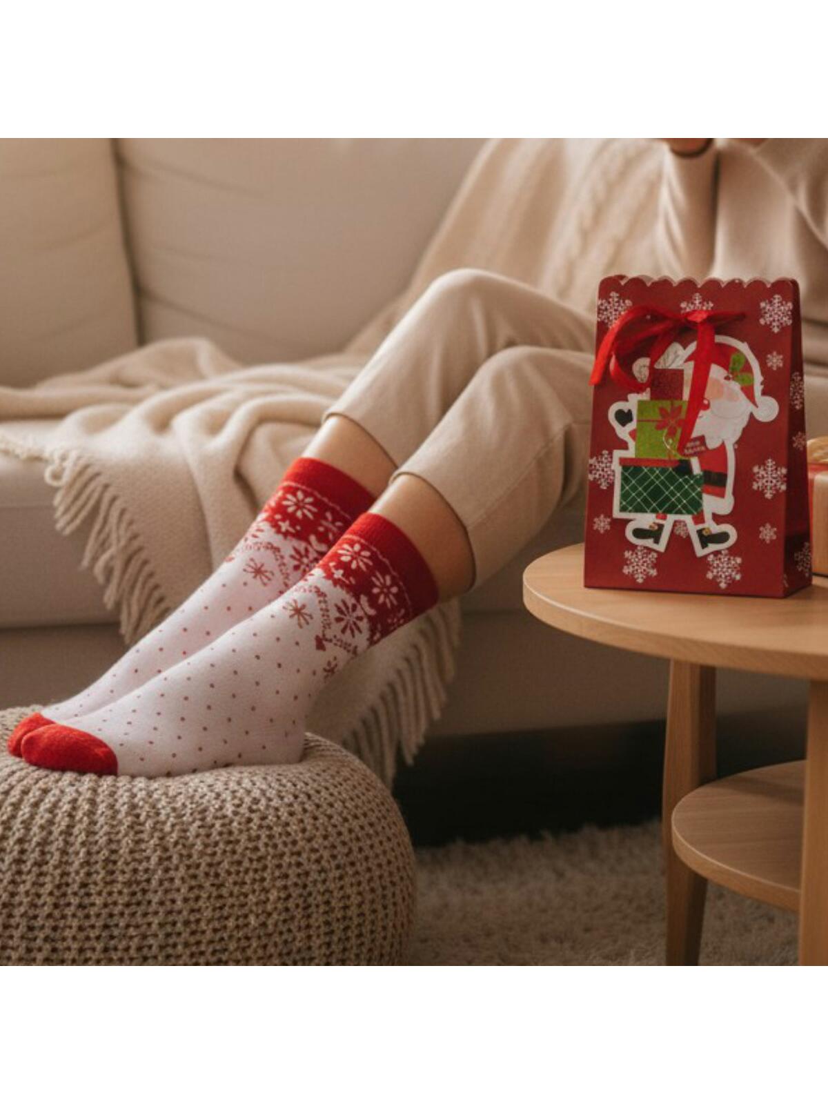 W tym sezonie świątecznym zadbaj o komfort swoich stóp dzięki naszym wyjątkowym świątecznym skarpetkom damskim! 🎁 Wykonane z miękkiej bawełny z dodatkiem elastycznych włókien, idealnie dopasowują się do stóp, zapewniając nie tylko wygodę, ale i ciepło przez cały dzień. ❄️ Wysokie skarpety z nieuciskającym ściągaczem sprawią, że poczujesz się swobodnie, niezależnie od tego, co przyniesie dzień! 🌟 Nasze skarpety w piękny, świąteczno-zimowym wzór, dodadzą magicznego klimatu Twoim dniom spędzonym w domowym cieple. 🎅❤️ Zapakowane w ozdobną torebeczkę, są doskonałym pomysłem na prezent dla bliskich!