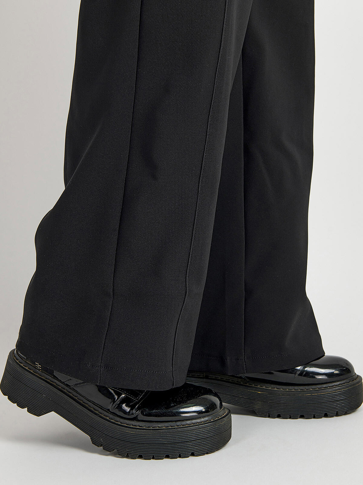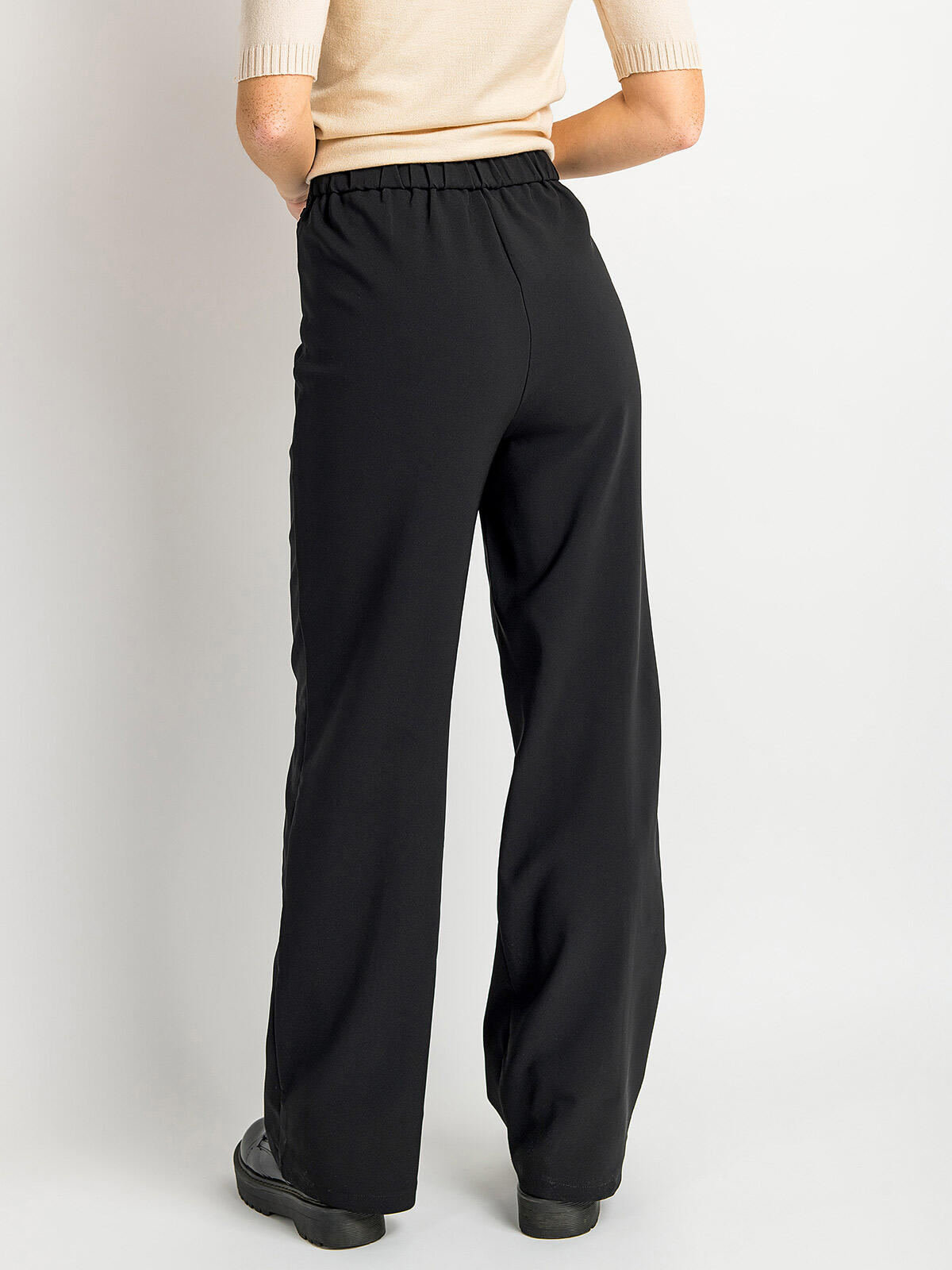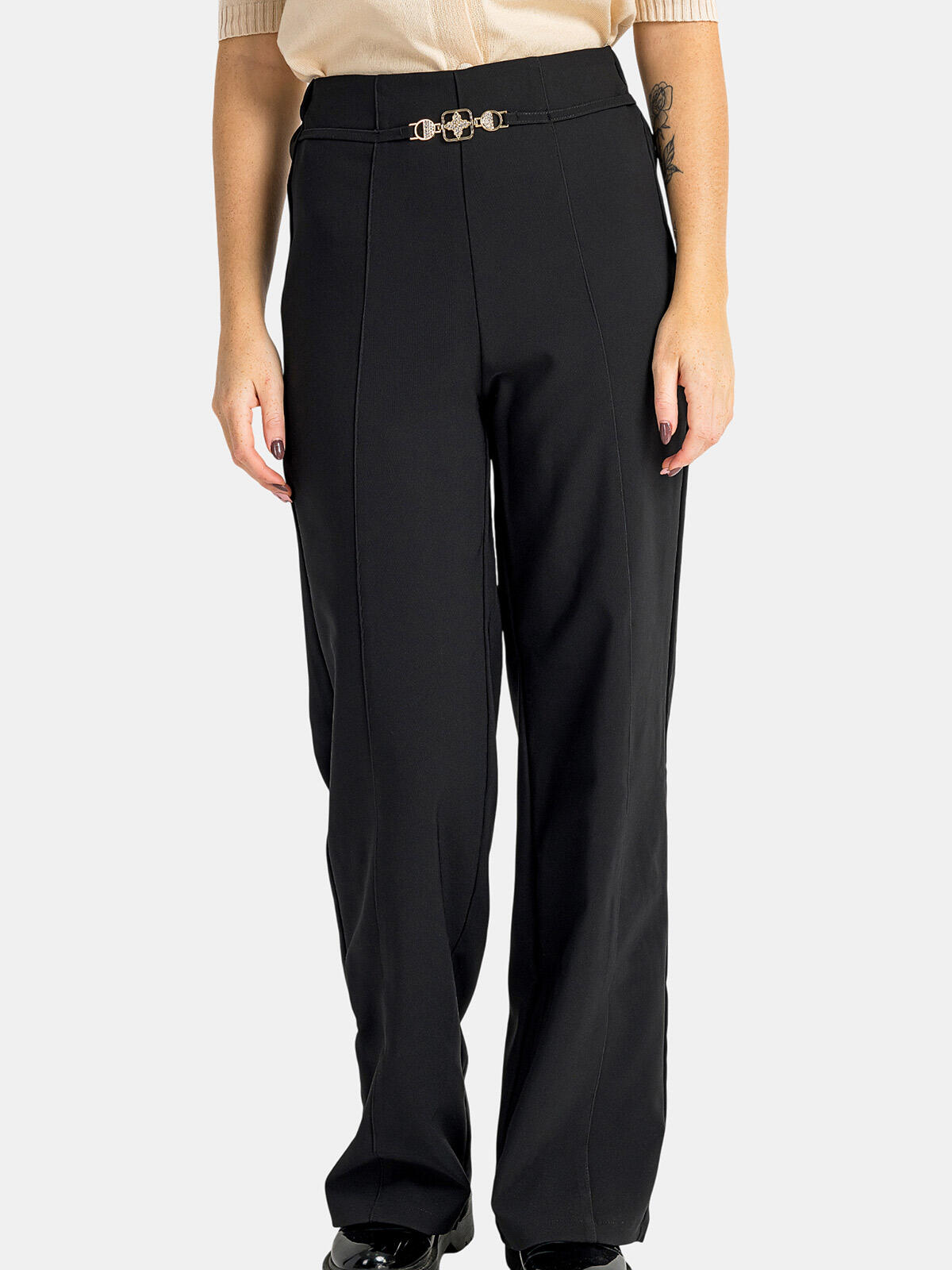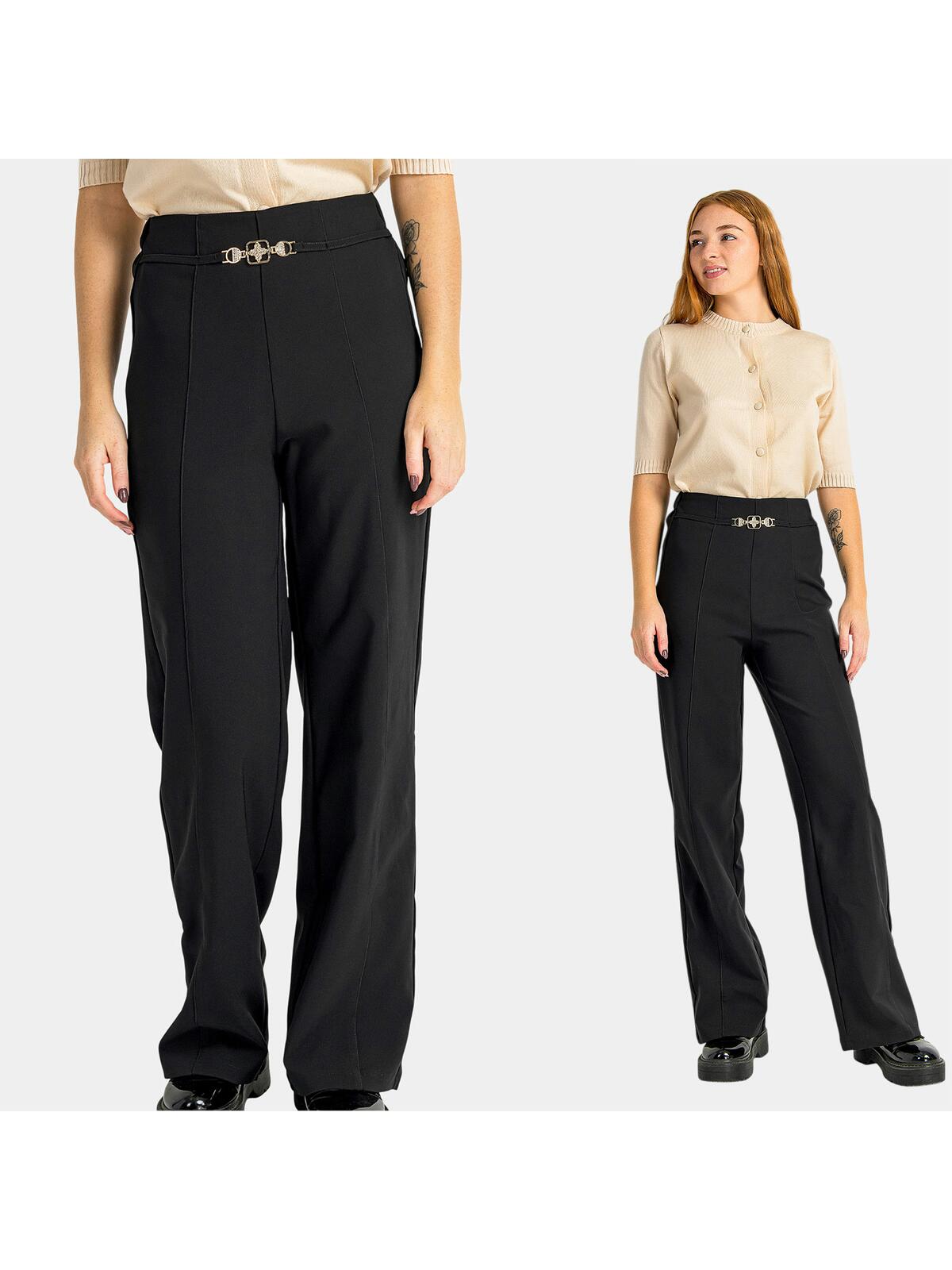 Przedstawiamy nasze wyjątkowe spodnie w kolorze czarnym, które idealnie dopasowują się w talii, podkreślając naturalne walory figury! ✨ Złota ozdoba w pasie nadaje im niezwykle ekskluzywny charakter, dzięki czemu możesz czuć się pewnie i elegancko w każdej sytuacji. Spodnie posiadają marszczoną gumkę z tyłu, co zapewnia niezrównany komfort noszenia. Długie, szerokie nogawki dodają lekkości każdej stylizacji, sprawiając, że są doskonałą bazą do różnorodnych outfitów. 💖