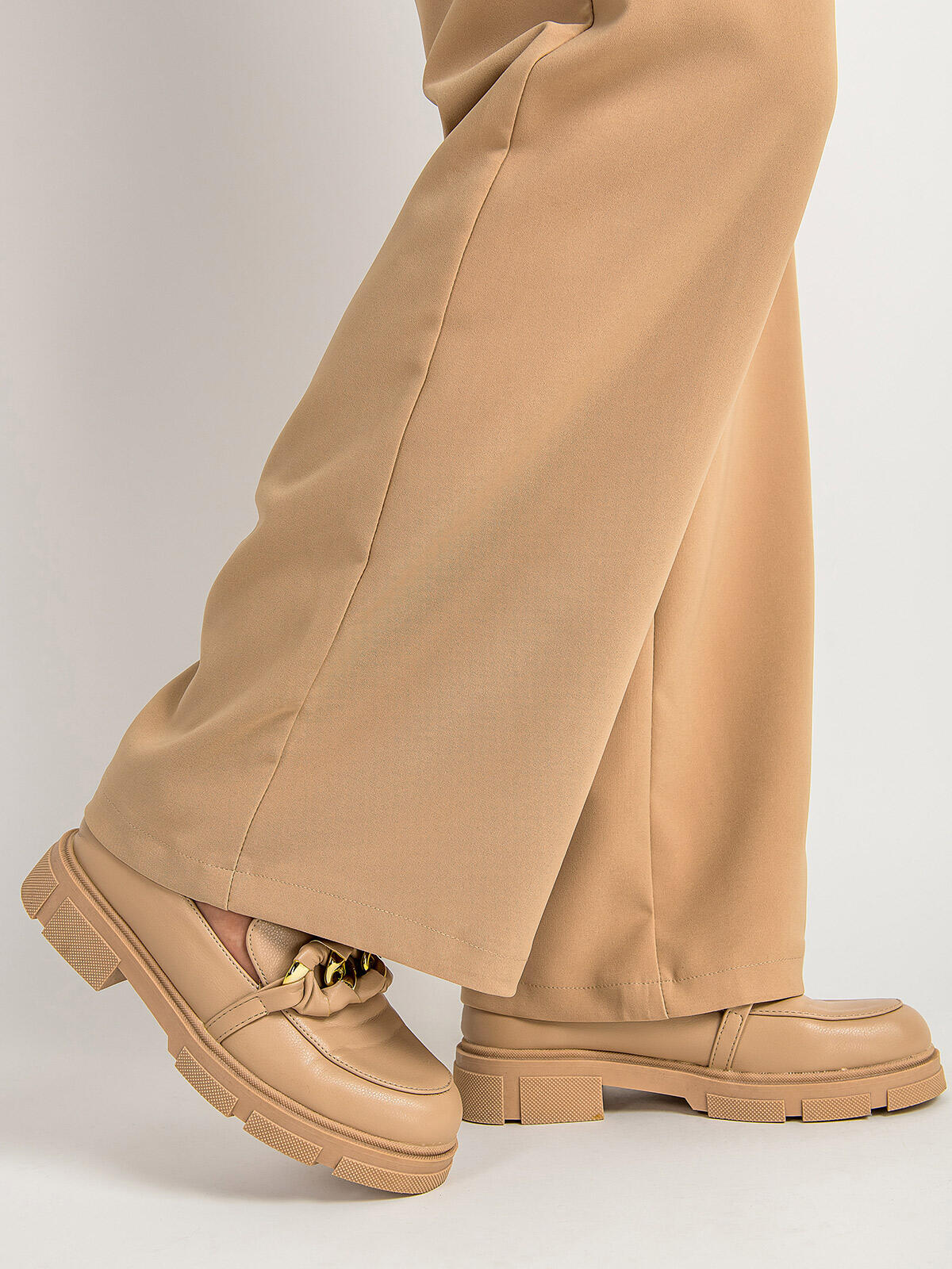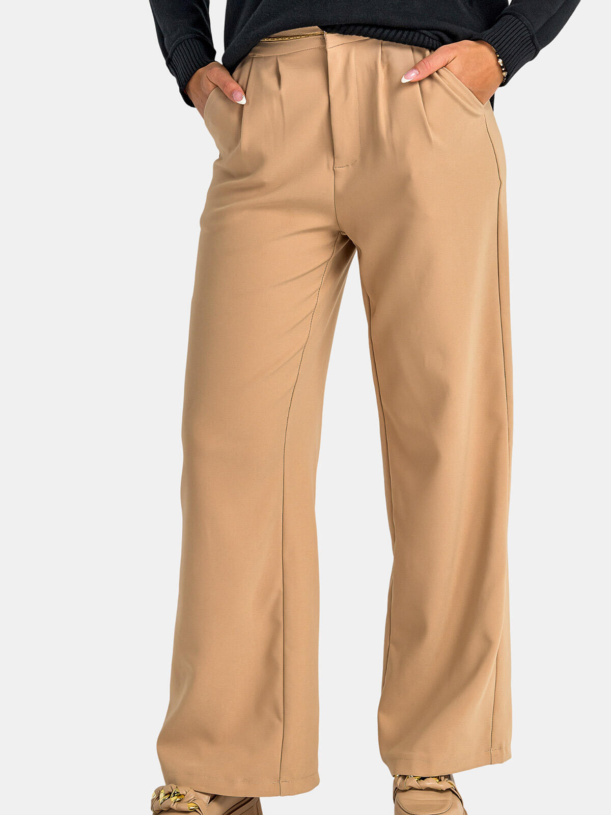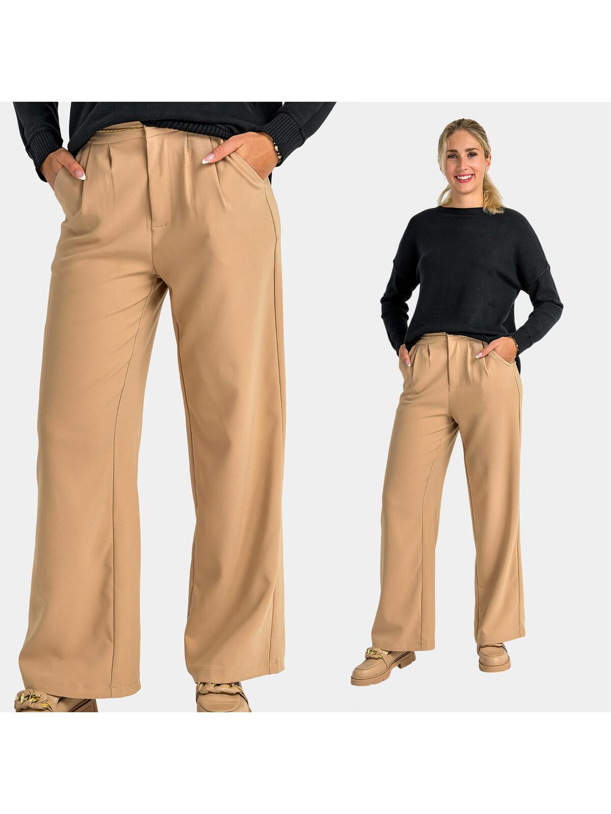 Gładki design w pięknym kolorze beżowym sprawia, że łatwo je zestawisz z różnorodnymi górnymi elementami – od eleganckich bluzek po casualowe t-shirty. 👚 Ozdobne zakładki dodają im charakteru, a subtelnie koronkowy pasek w talii to idealne wykończenie, które przyciągnie wzrok! ✨ Zapinane na zamek i guzik, te spodnie zapewniają nie tylko styl, ale i komfort noszenia przez cały dzień.