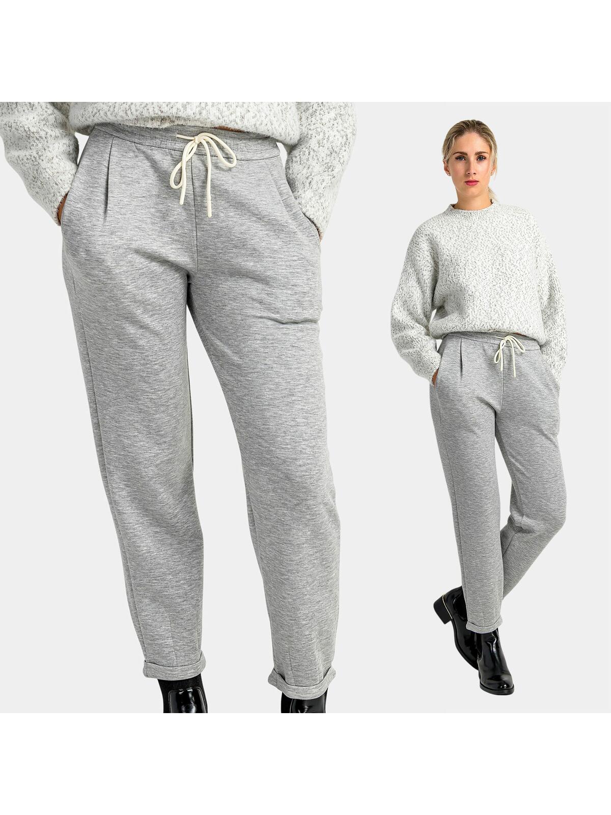 Stylowe i wygodne szare spodnie dresowe to doskonały wybór dla osób, które cenią połączenie komfortu i modnego wyglądu. Wykonane z miękkiej dzianiny z domieszką wiskozy, zapewniają wyjątkową przyjemność noszenia oraz swobodę ruchów przez cały dzień. Elastyczny pas z troczkiem umożliwia idealne dopasowanie do sylwetki, a praktyczne kieszenie po bokach dodają wygody i funkcjonalności. Zwężane nogawki z delikatnie podwiniętym dołem nadają spodniom lekkości i nowoczesnego charakteru. Uniwersalny, jasnoszary kolor sprawia, że z łatwością dopasujesz je do ulubionej bluzy, swetra lub T-shirtu. To idealna propozycja na co dzień – do domu, na spacer czy luźne spotkania ze znajomymi. Postaw na wygodę i styl, które nigdy nie wychodzą z mody!