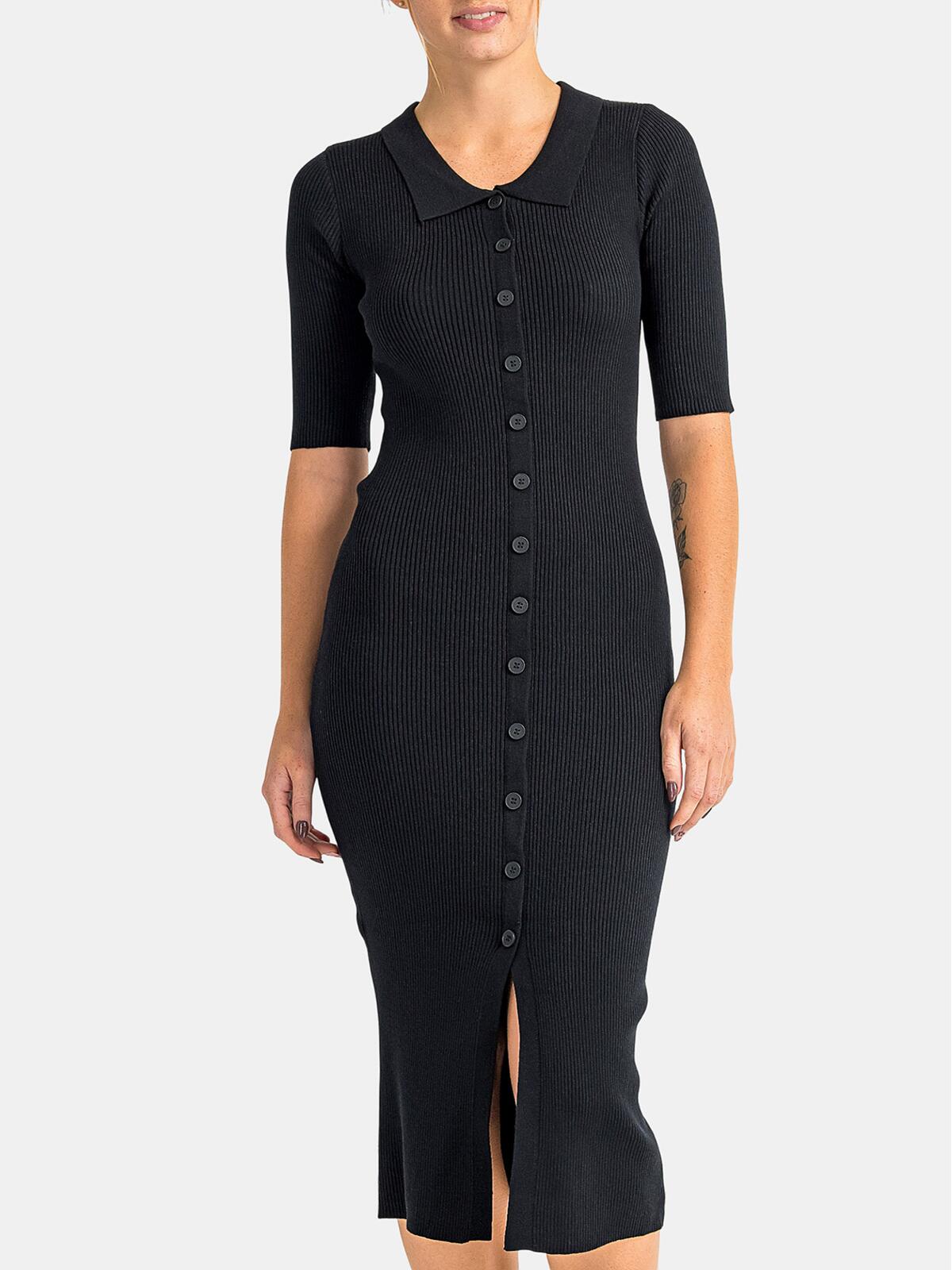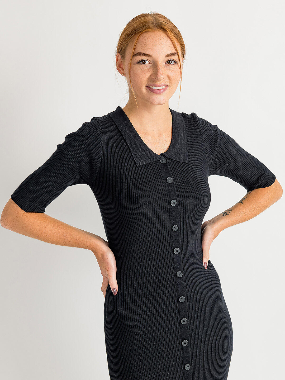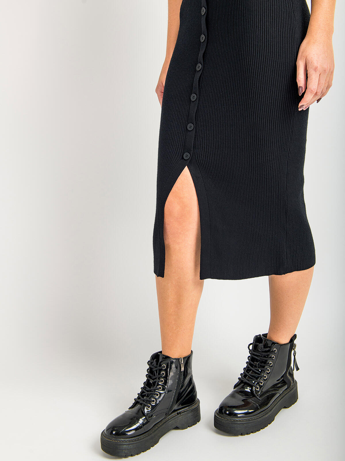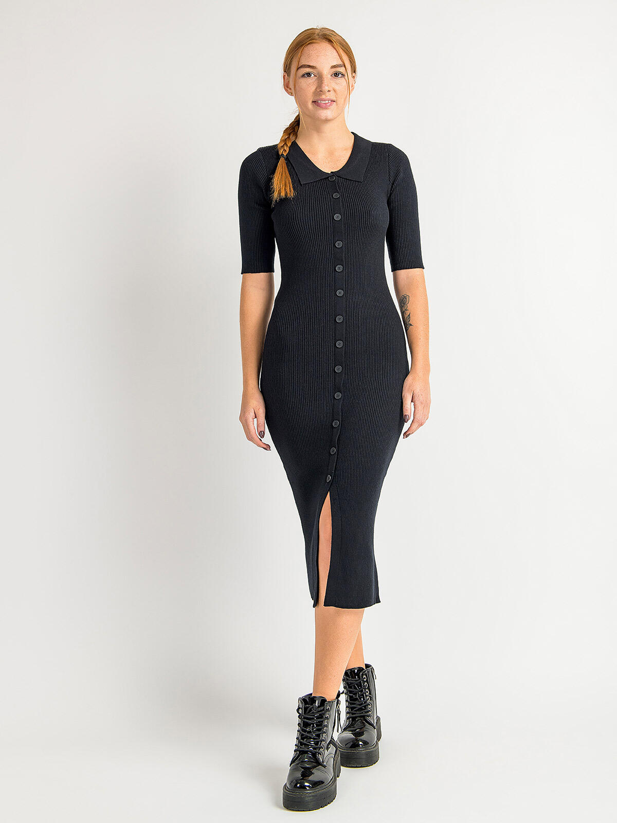 Odkryj naszą niesamowitą sukienkę damską w eleganckim, klasycznym kolorze czarnym! Ta dzianinowa perełka z wiskozą w składzie to połączenie niesamowitej miękkości i wygody, które pokochasz od pierwszego założenia. 😊 Sukienka posiada prążkowaną strukturę oraz dopasowany fason, podkreślający sylwetkę i dodający szyku. Jej długość midi sprawia, że jest idealna na każdą okazję – od codziennych spotkań po wieczorne wyjścia! ✨