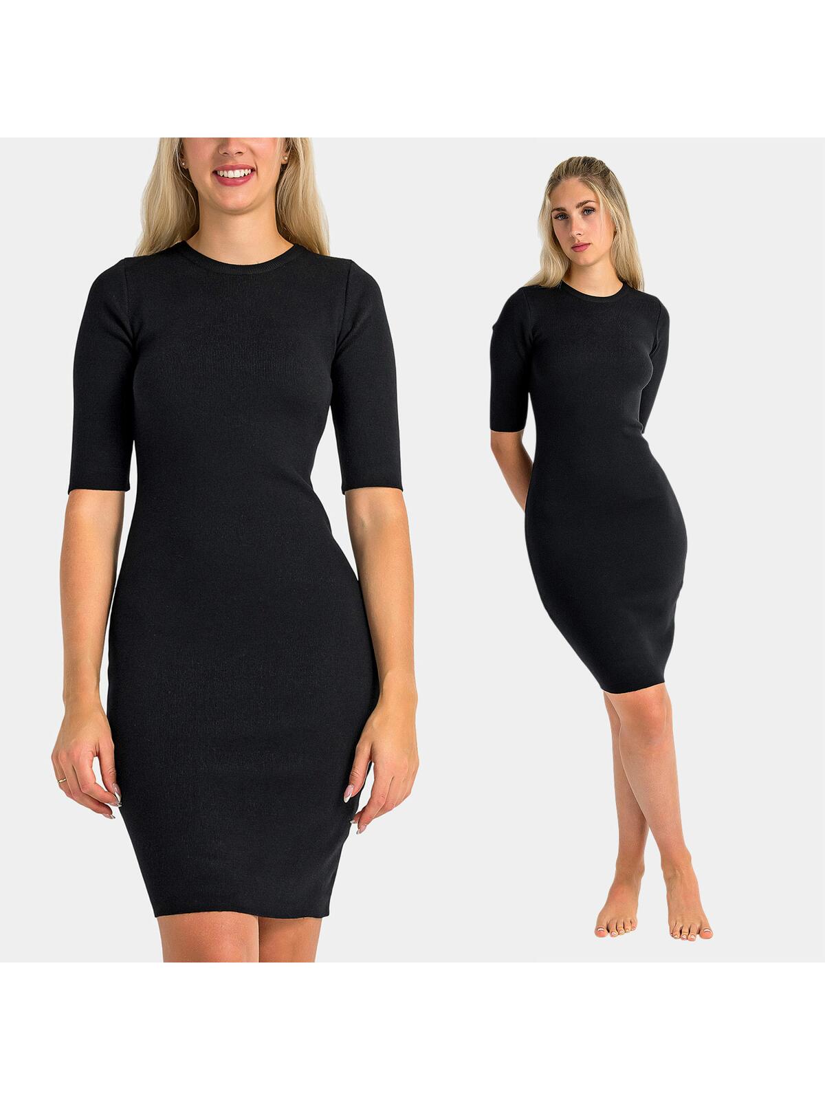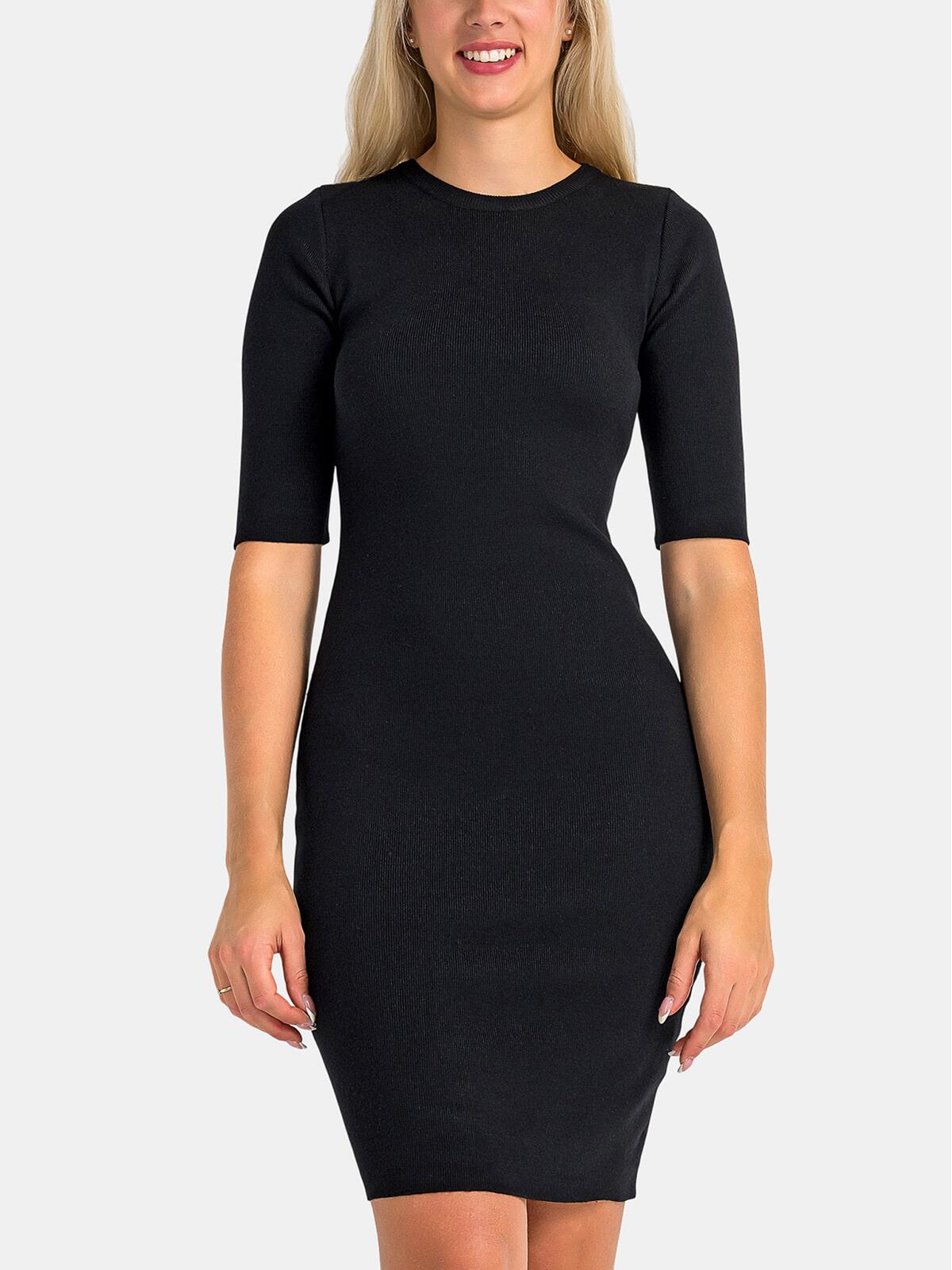 Ta niezwykle stylowa sukienka to doskonałe połączenie komfortu i klasy. Wykonana z wysokiej jakości materiałów z zawartością wiskozy, idealnie opinająca sylwetkę, podkreśla kobiece kształty w najpiękniejszy sposób. Jej długość do kolan oraz rękawy długości do łokci sprawiają, że jest to idealny wybór na każdą okazję – od spotkań biznesowych po wieczorne wyjścia. ✨