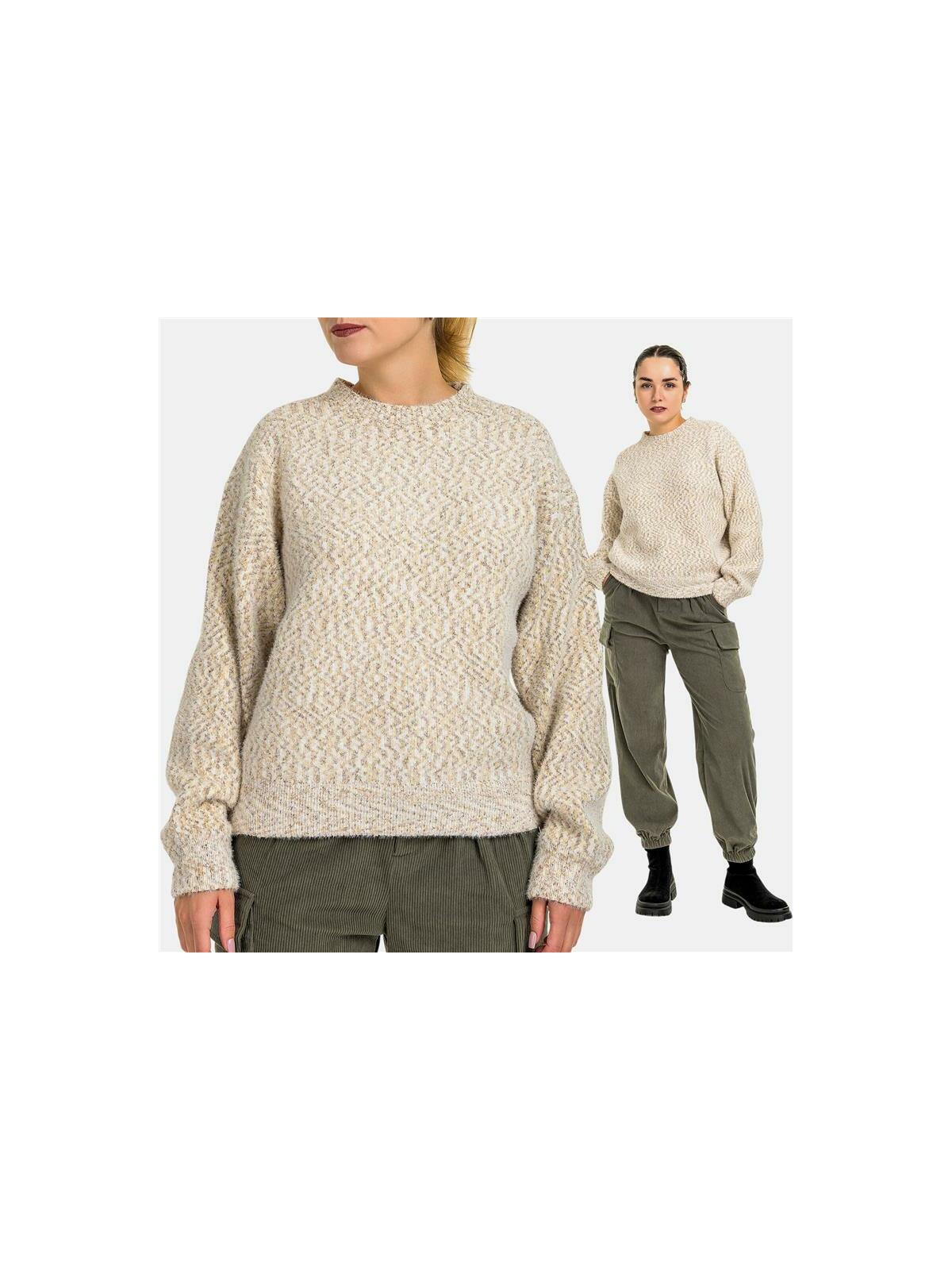 Przygotuj się na zimową elegancję z naszym niezwykłym, kremowym swetrem! 🌟 Z delikatnym, jasnym wzorem, ten sweter to must-have, który doda przytulności każdej stylizacji. Minimalistyczny design sprawia, że jest on wszechstronny - idealnie komponuje się zarówno z jeansami, jak i spódnicami. 👖👗