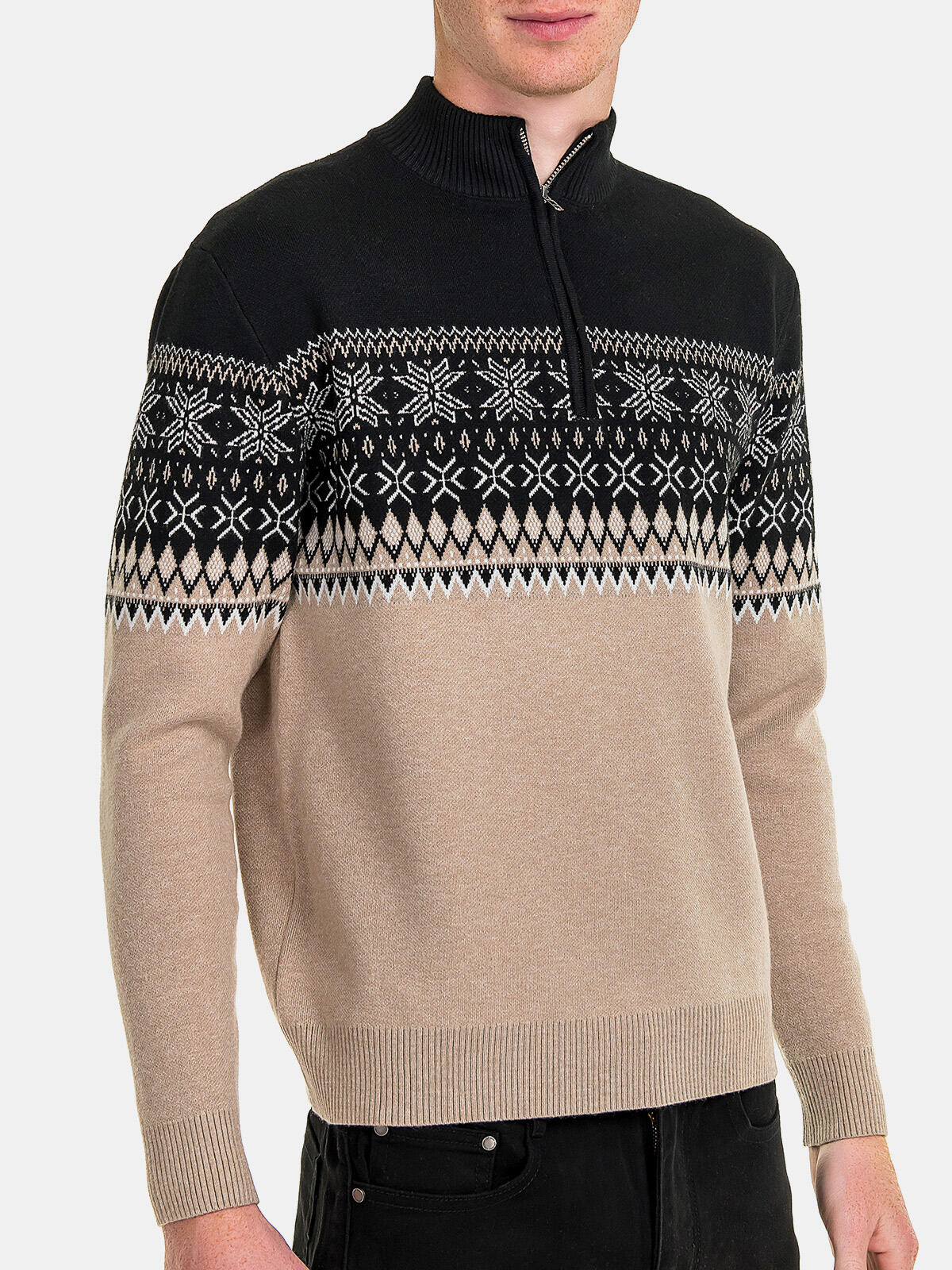 ✨ Styl i komfort – Sweter ma klasyczny krój z elegancką stójką zapinaną na krótki zamek, dzięki czemu jest idealny zarówno na co dzień, jak i na specjalne okazje. Świetnie komponuje się z jeansami oraz spodniami chino, tworząc stylizację, która zawsze wygląda modnie.