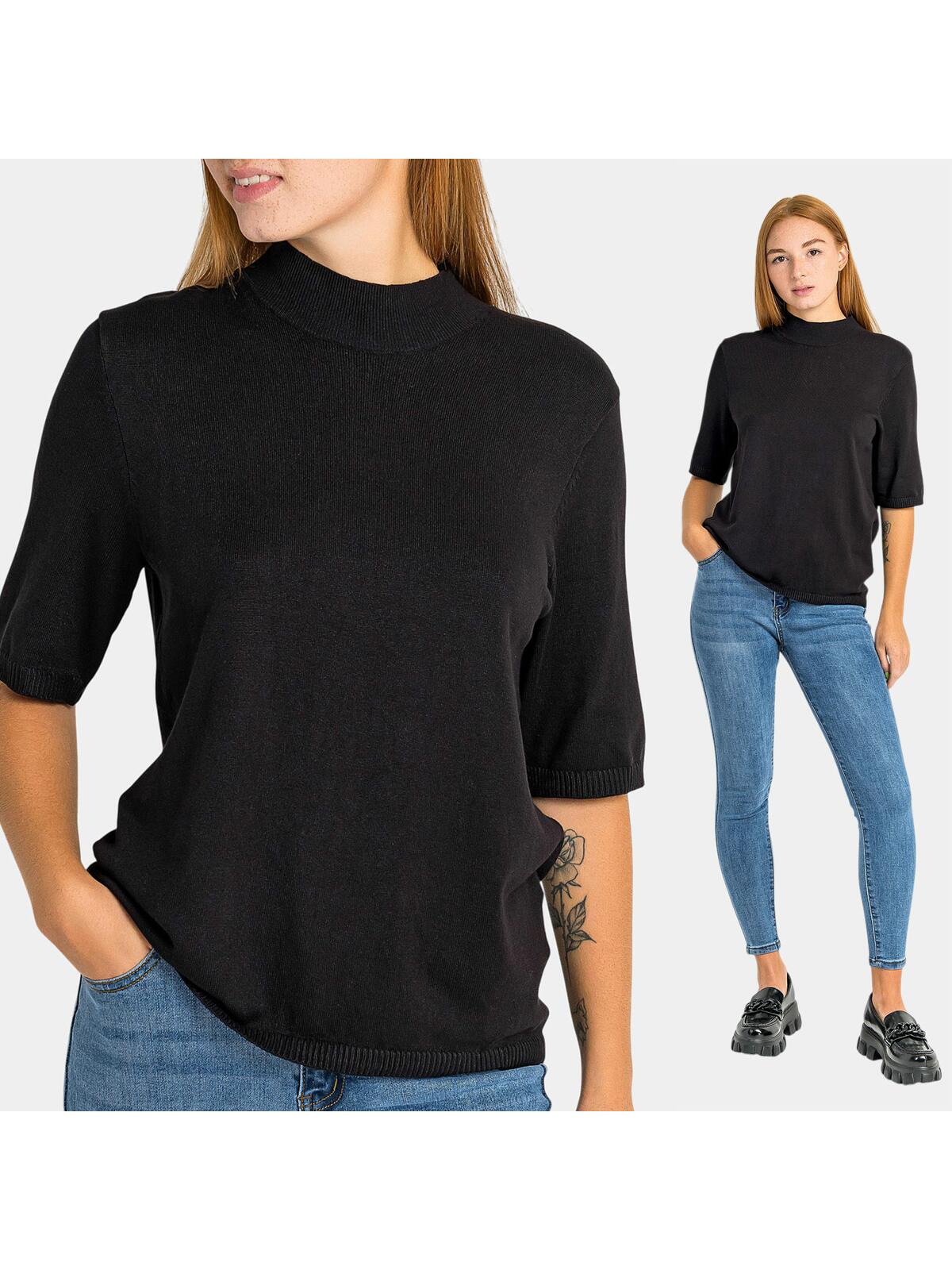 Odkryj wyjątkowy półgolf damski, który łączy w sobie elegancję i wygodę! Wykonany z miękkiej dzianiny o wysokiej zawartości wiskozy, ten gładki półgolf sprawi, że poczujesz się niezwykle komfortowo, niezależnie od okazji. Jego krótkie rękawy sięgające do połowy ramienia oraz prążkowane ściągacze dodają mu szykownego charakteru, a swobodny krój idealnie układa się na sylwetce. W eleganckim czarnym kolorze, jest to must-have w każdej garderobie! ✨