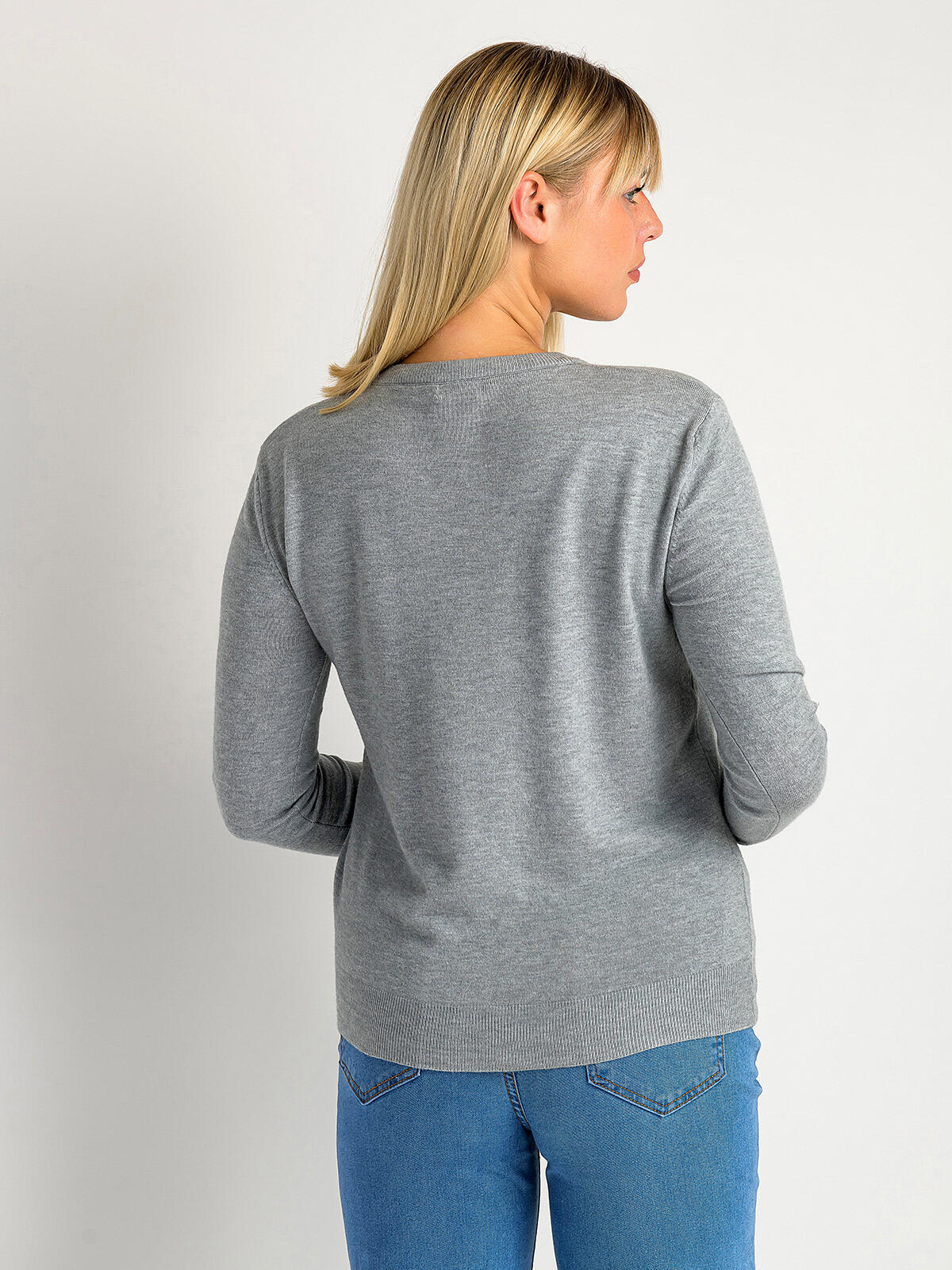 Zapinany Sweter z Wiskozą - Kolor Popielaty